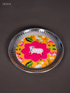 Graceful Pichwai Cow Printed Stainless Steel Plate (9x9 Inches) - KI26119