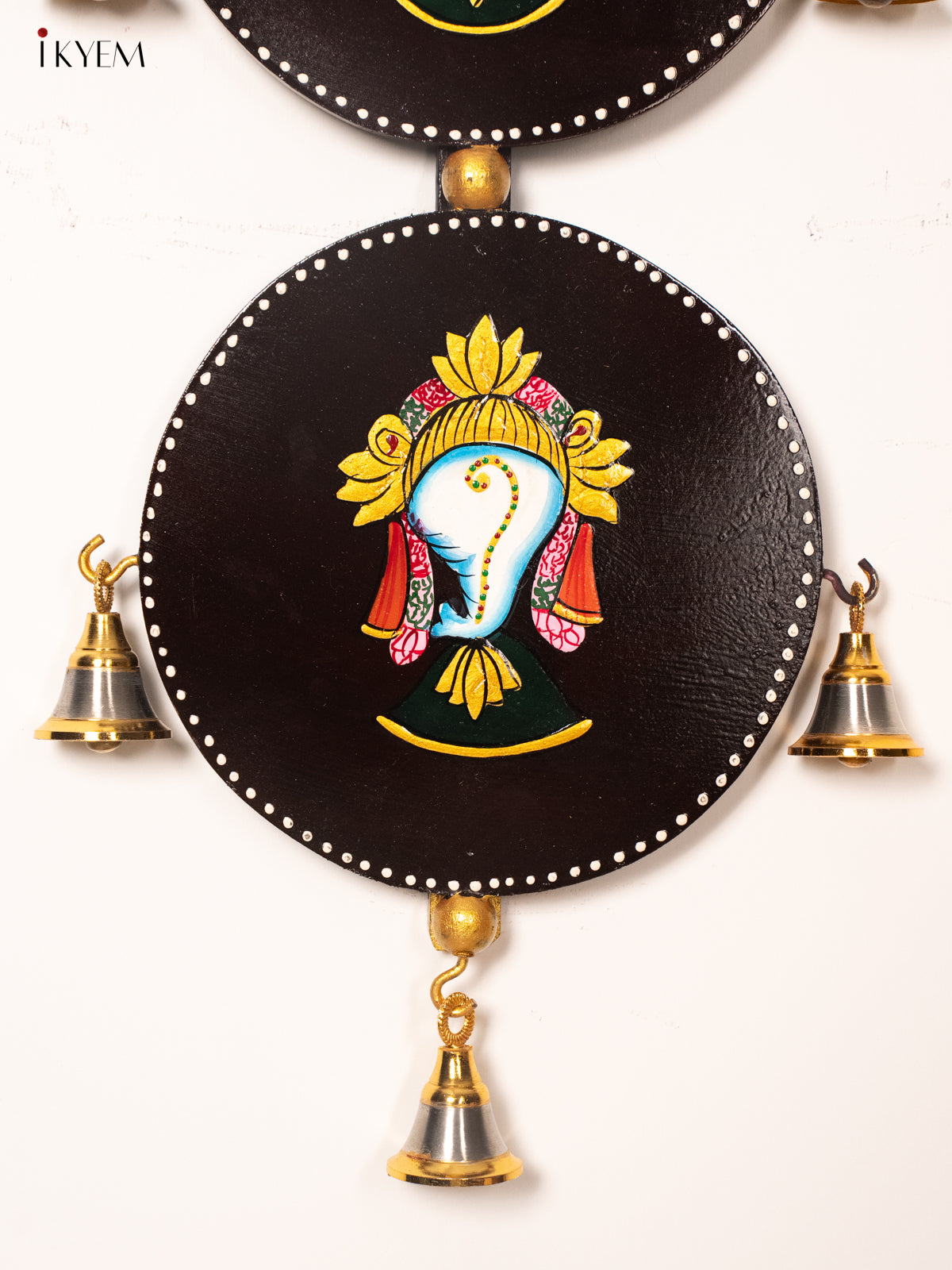 Beautiful hand‑painted brown wooden wall hanging with Sangu Chakram Namam motif ( 24″ × 8.5″ × 1″) — ideal for pooja decor, meditation corners and spiritual spaces. The warm brown tone offers a grounded, natural look, complementing both modern and traditional pooja rooms or living spaces.