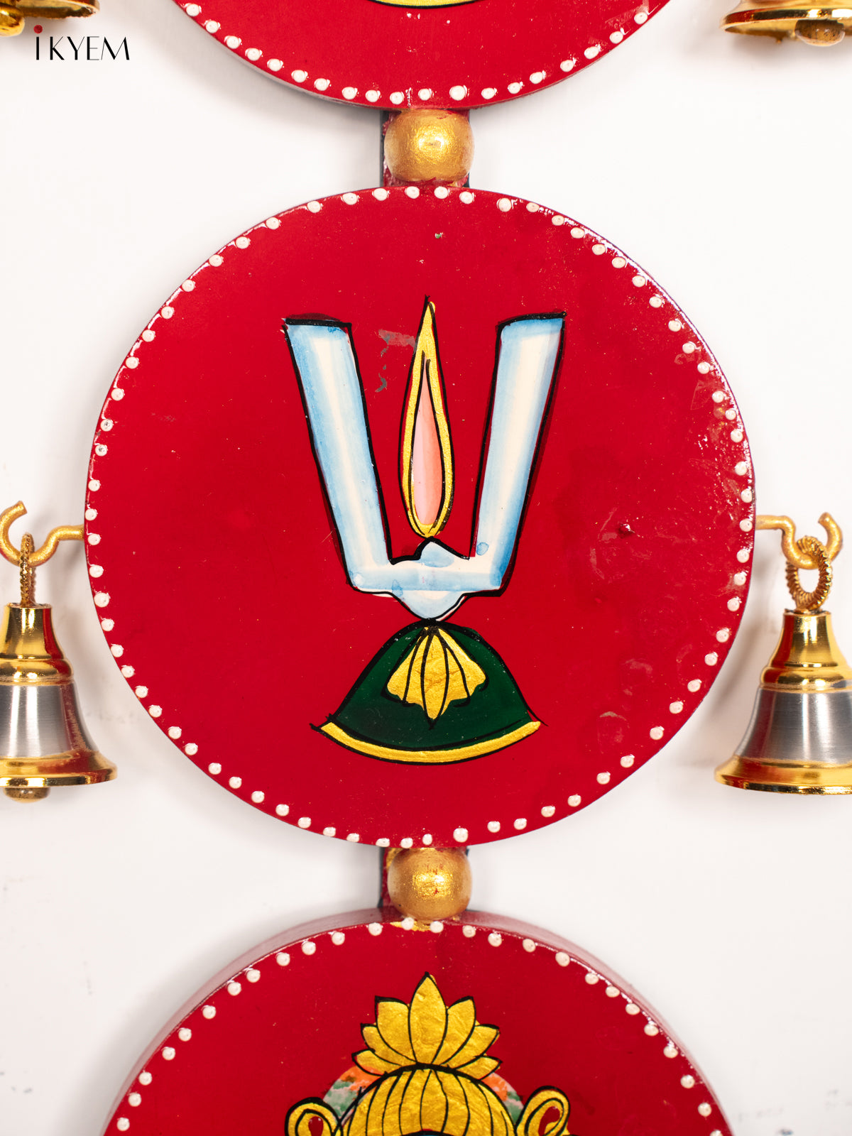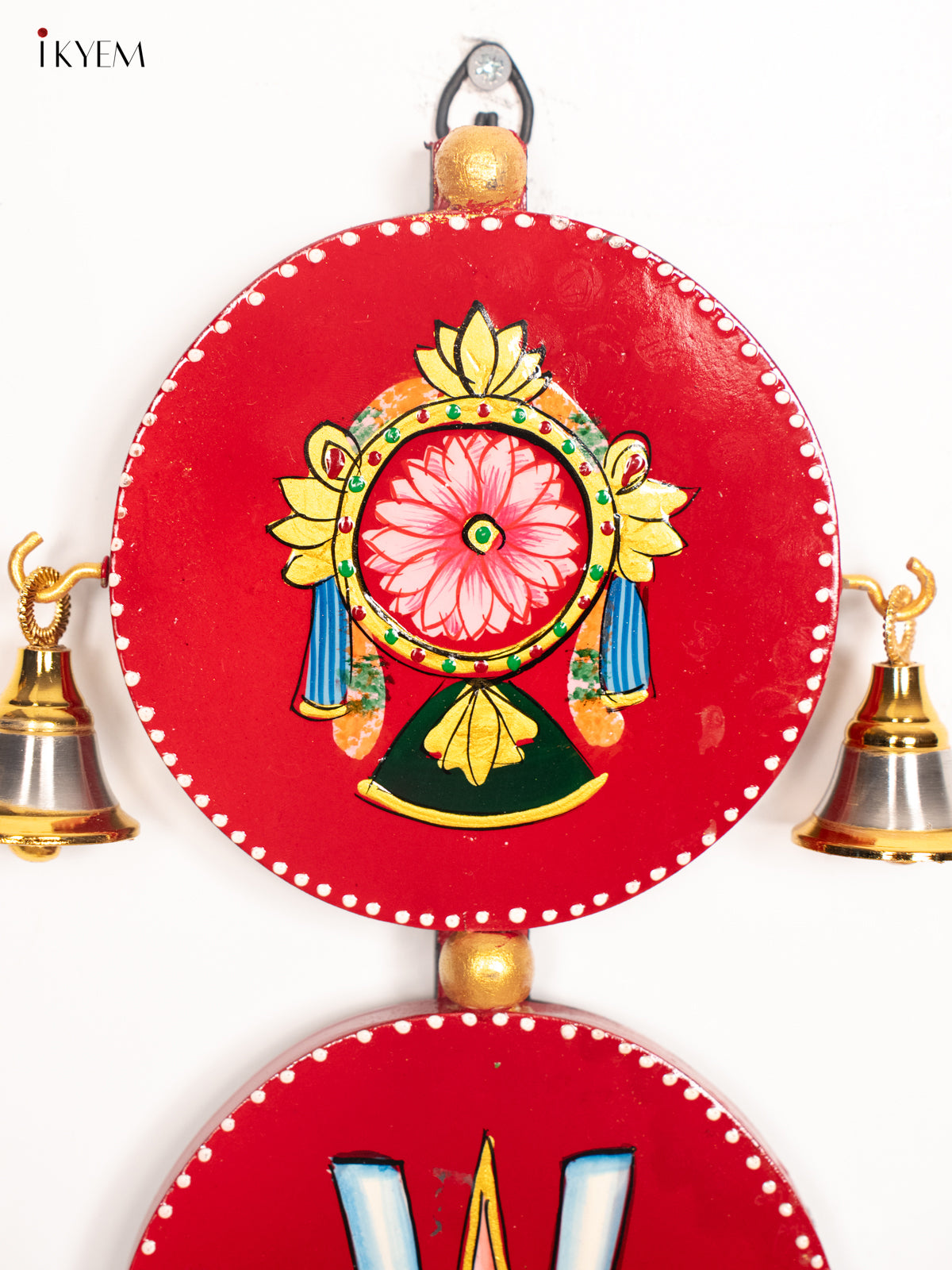 Red Wooden Sangu chakram namam Wall hanging - 18 Inch - KJ30111