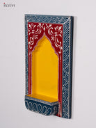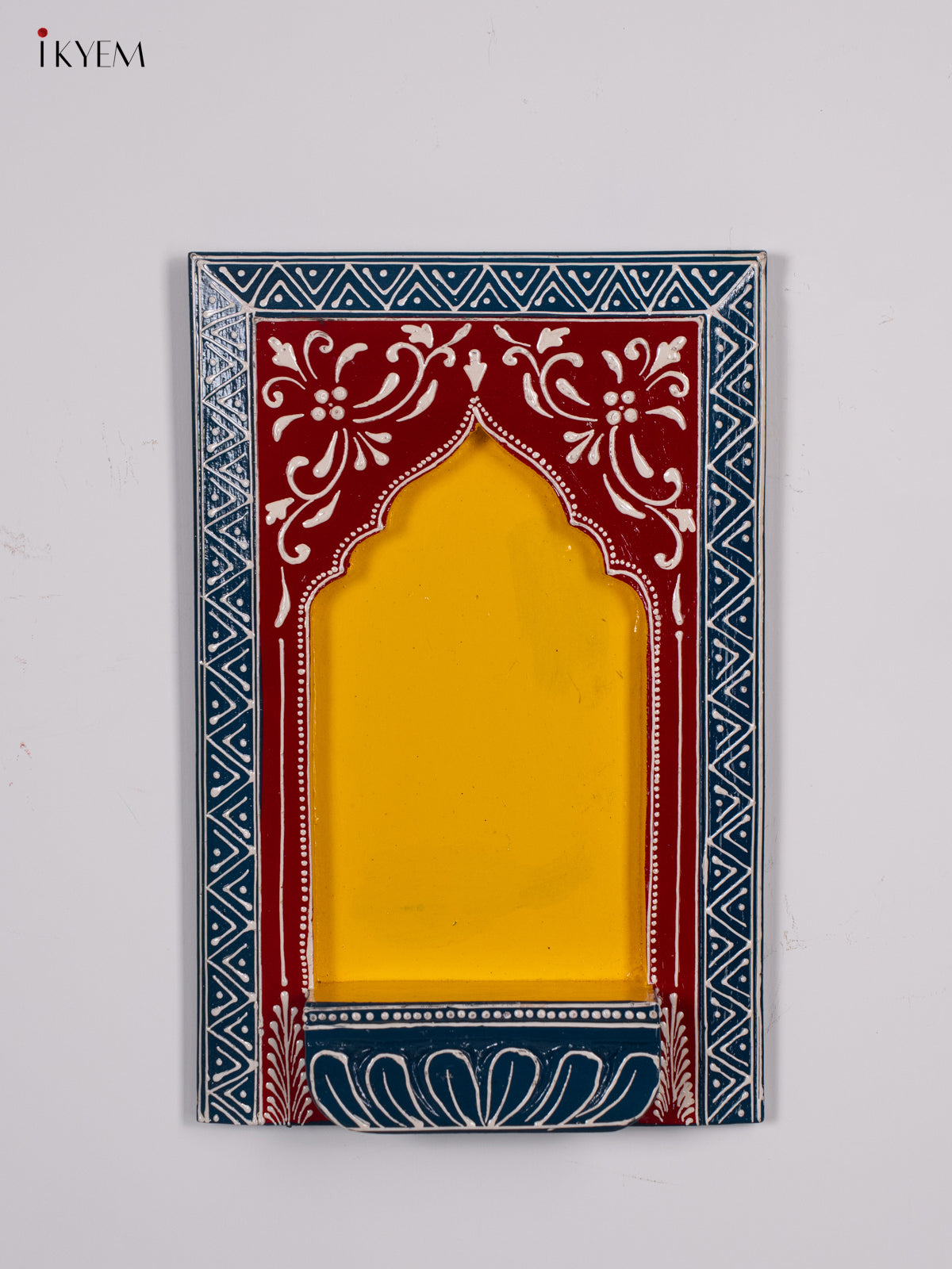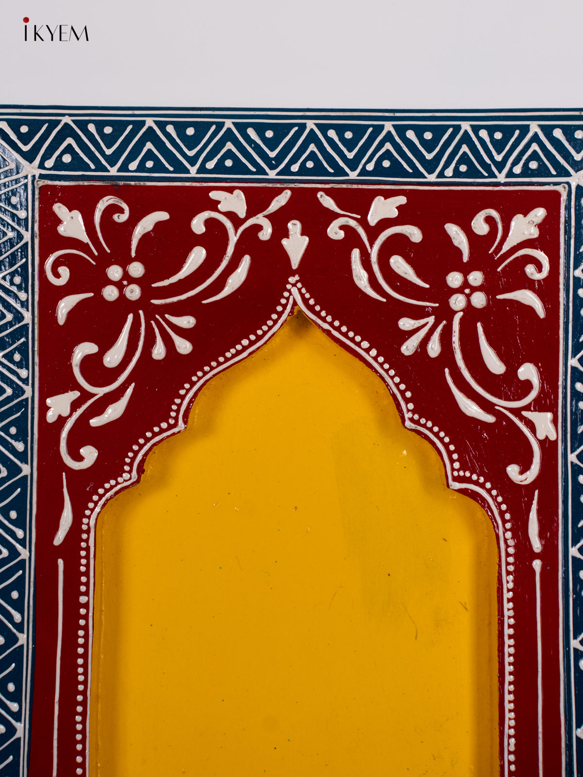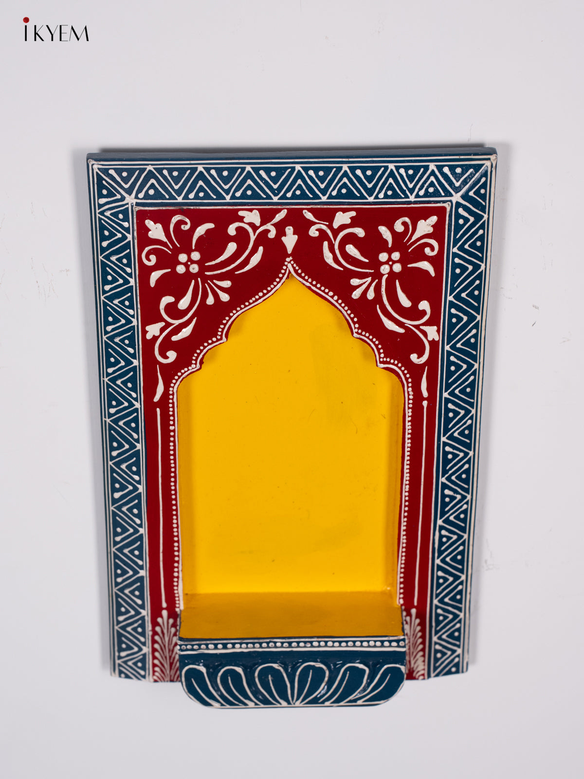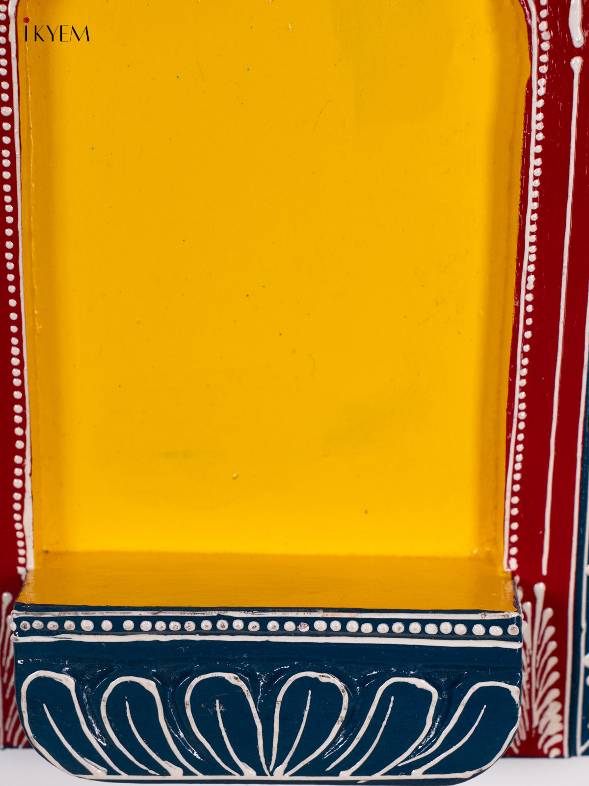 Wooden Hand Painted Wall Frame/Diya stand - Yellow with Blue - 12 Inches - KI24147