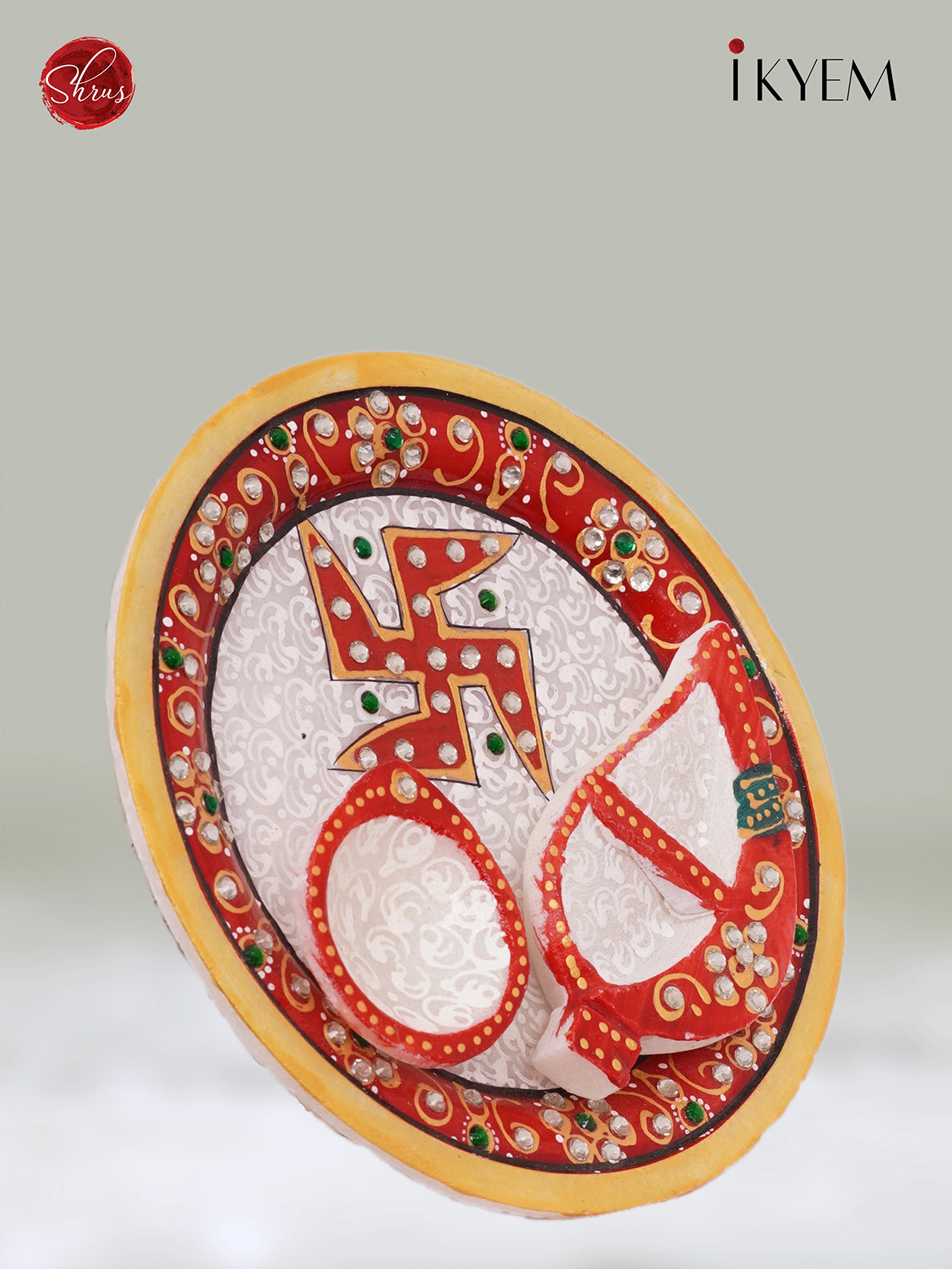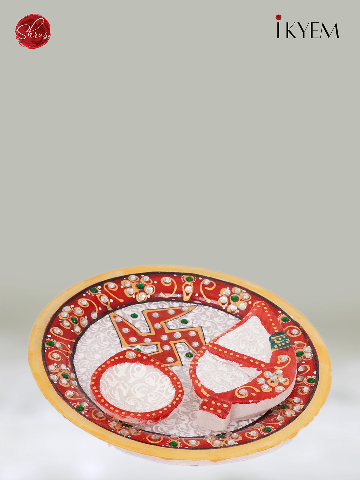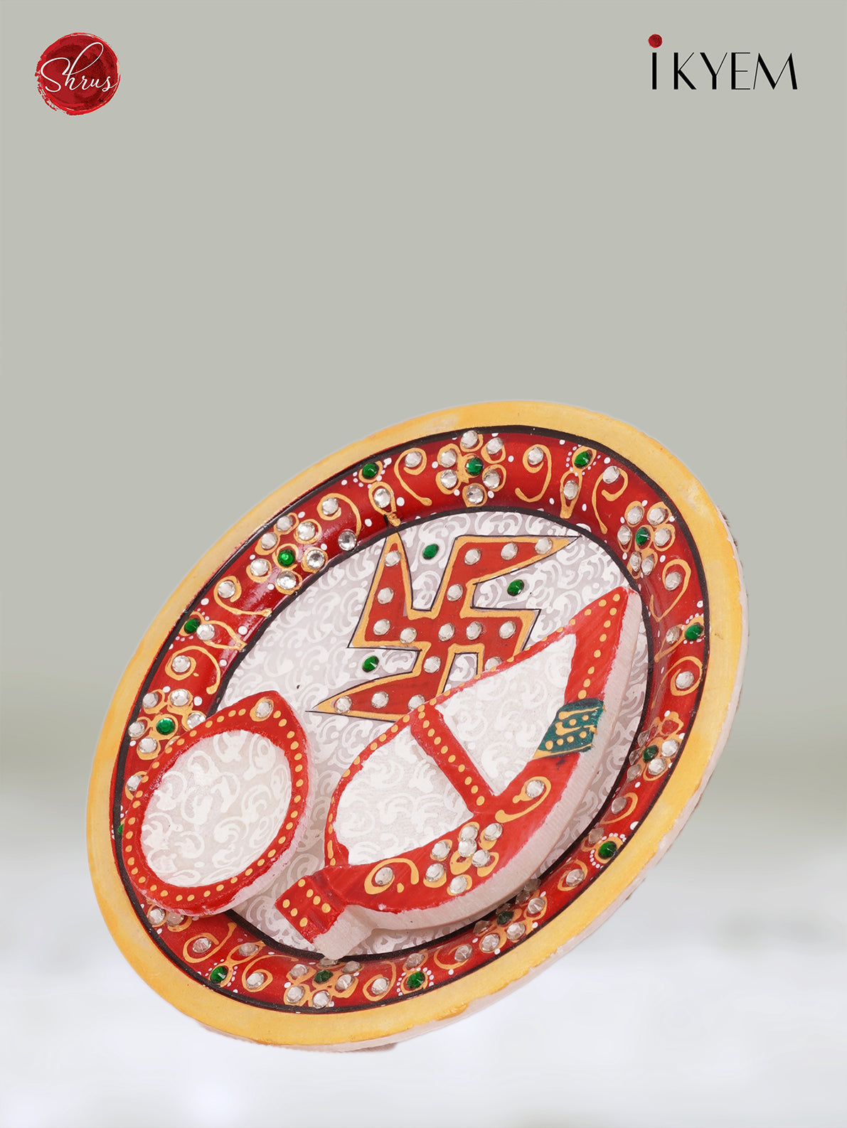Elevate your rituals with our hand-painted Ceramic Kumkum Plate, a masterpiece of artistry. Each plate is meticulously adorned with intricate designs and vibrant colors, adding a touch of elegance to your ceremonies. It features multiple sections to hold kumkum, chawal, and other offerings, making it both beautiful and functional. Own a unique, eye-catching piece that adds a sense of spirituality and aesthetics to your sacred rituals.