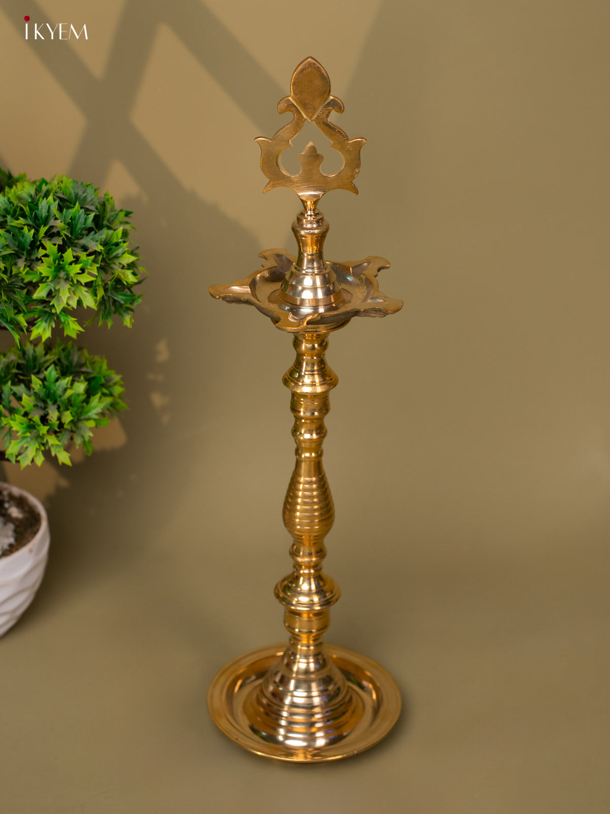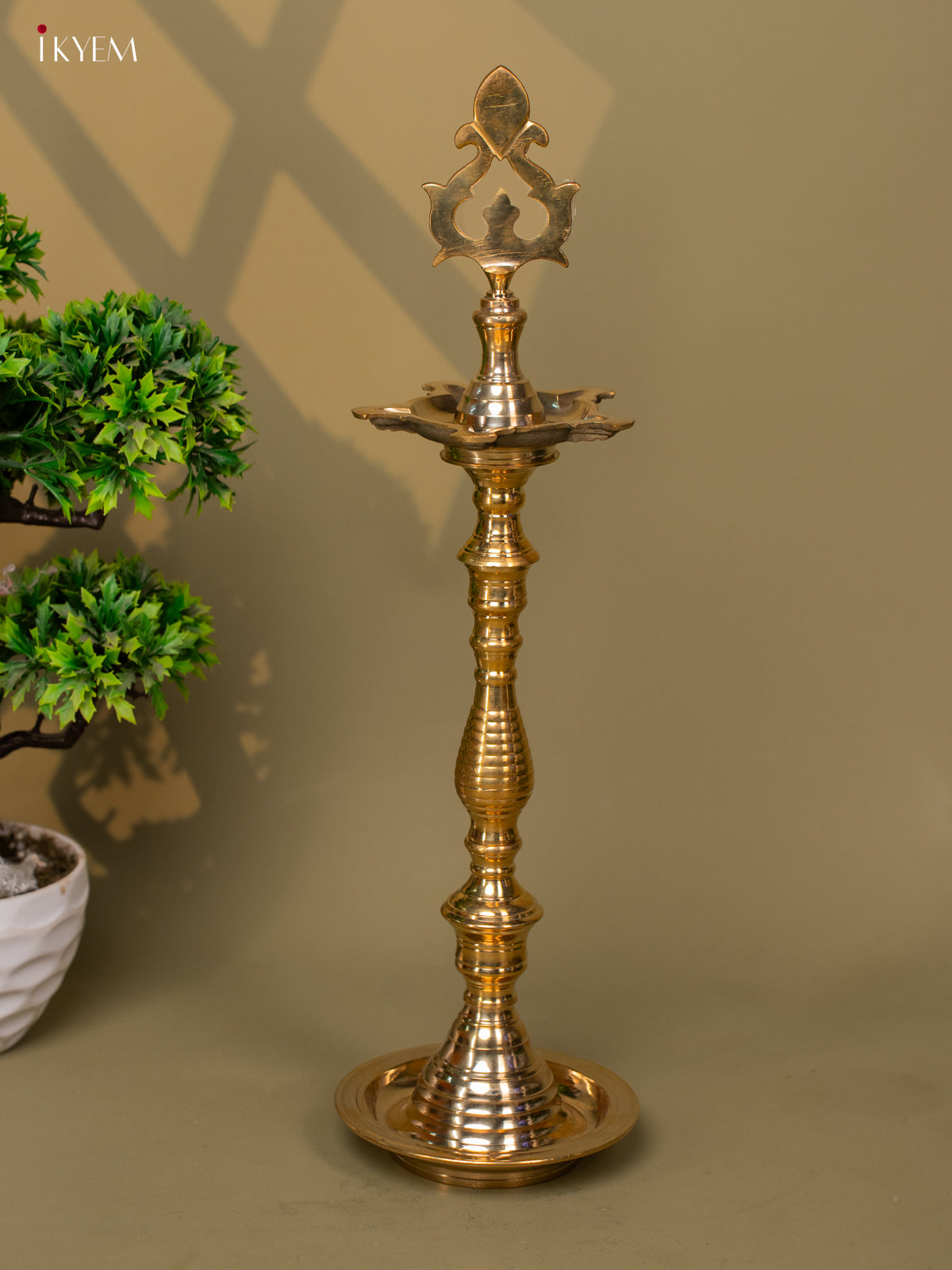 - Made of high-quality brass, Vilakku features 5 beautifully carved faces and is sure to elevate your spiritual experience.