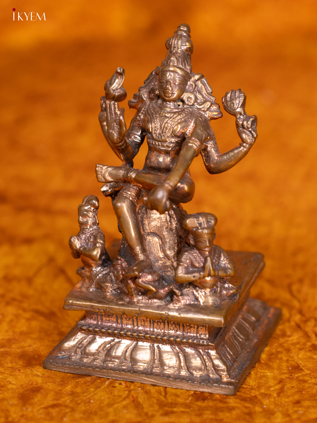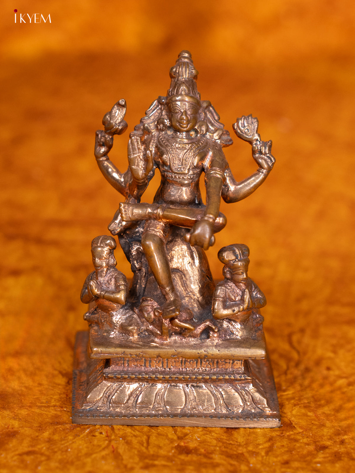 Guru Dhakshinamurthy idol represents Lord Shiva in his form as the divine teacher. Typically depicted in a seated posture, with a calm expression, holding a drum (damaru) and a flame (agni), this idol symbolizes the cosmic wisdom and the importance of the teacher-student relationship. It serves as a spiritual and educational symbol, making it a revered addition to homes and learning spaces.