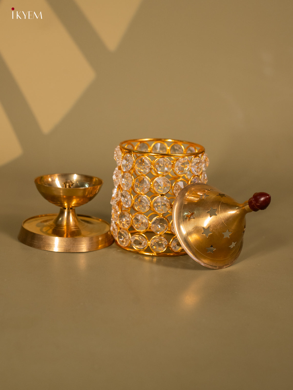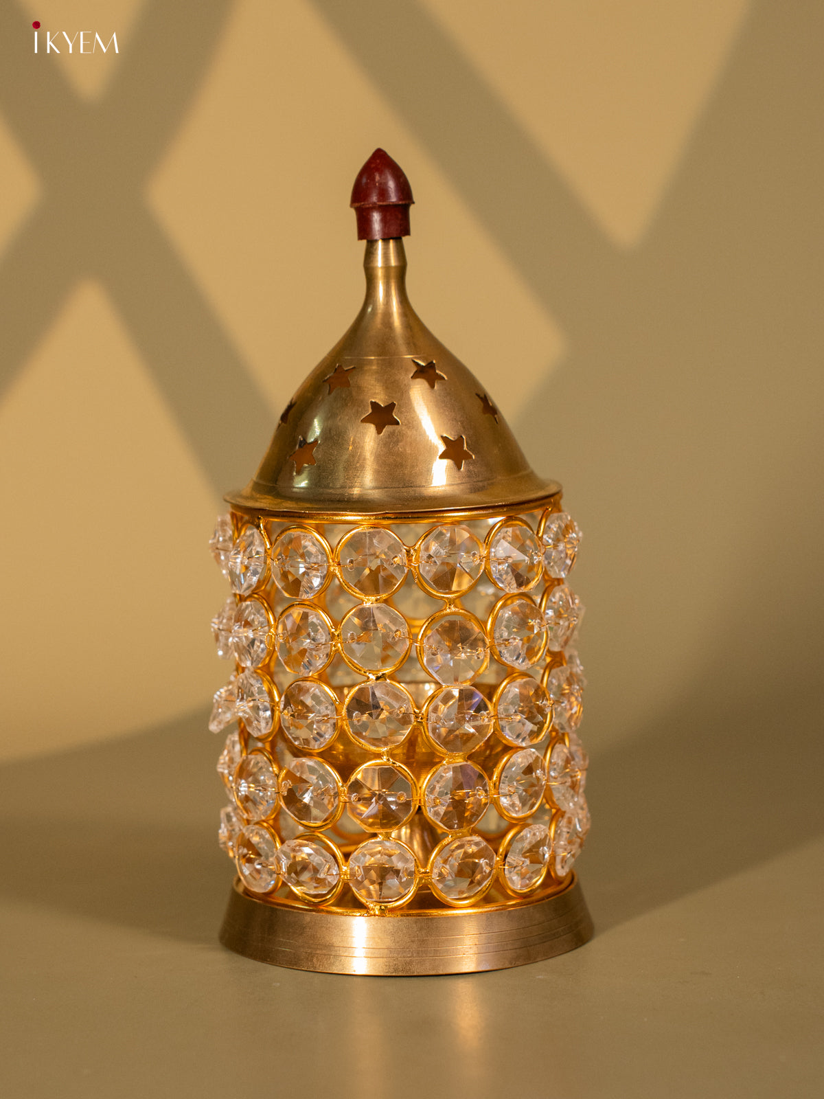 - Made from durable brass and adorned with intricate crystal details, it adds an elegant touch to any devotional space.