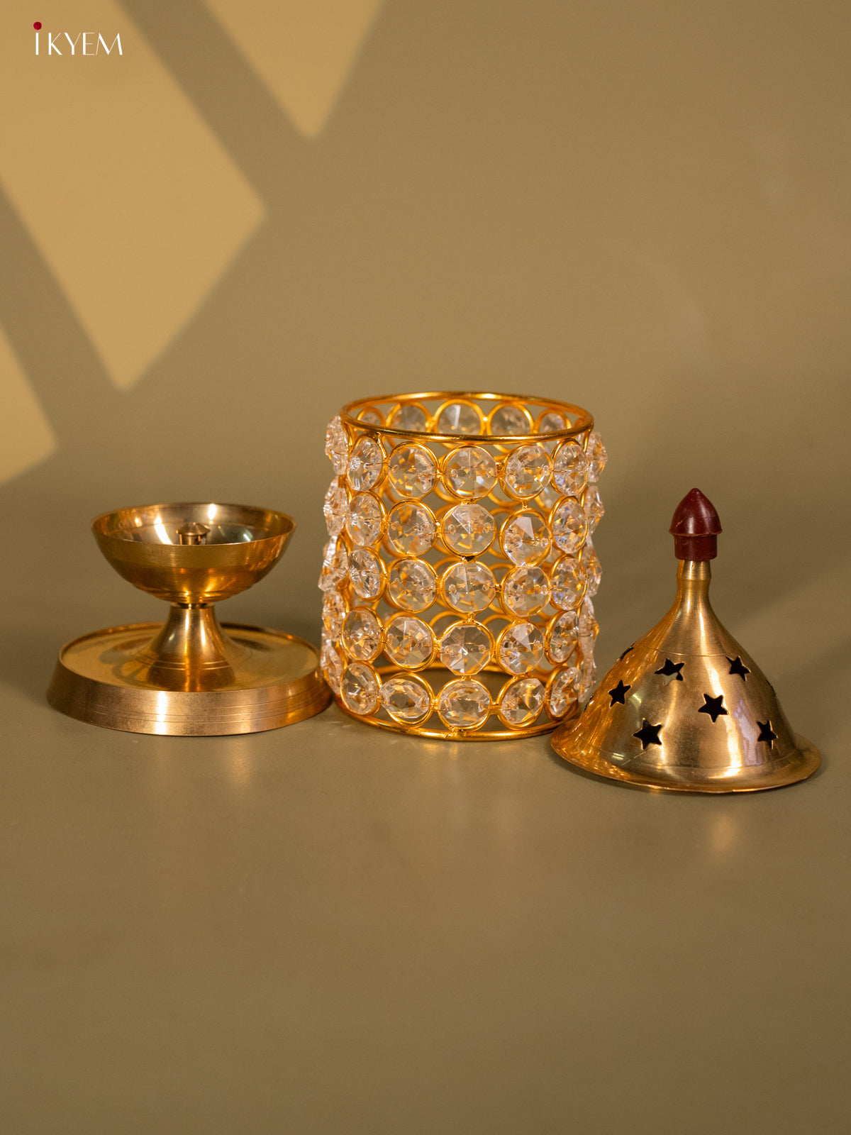 - This Brass Crystal lamp is a beautifully crafted pooja accessory.