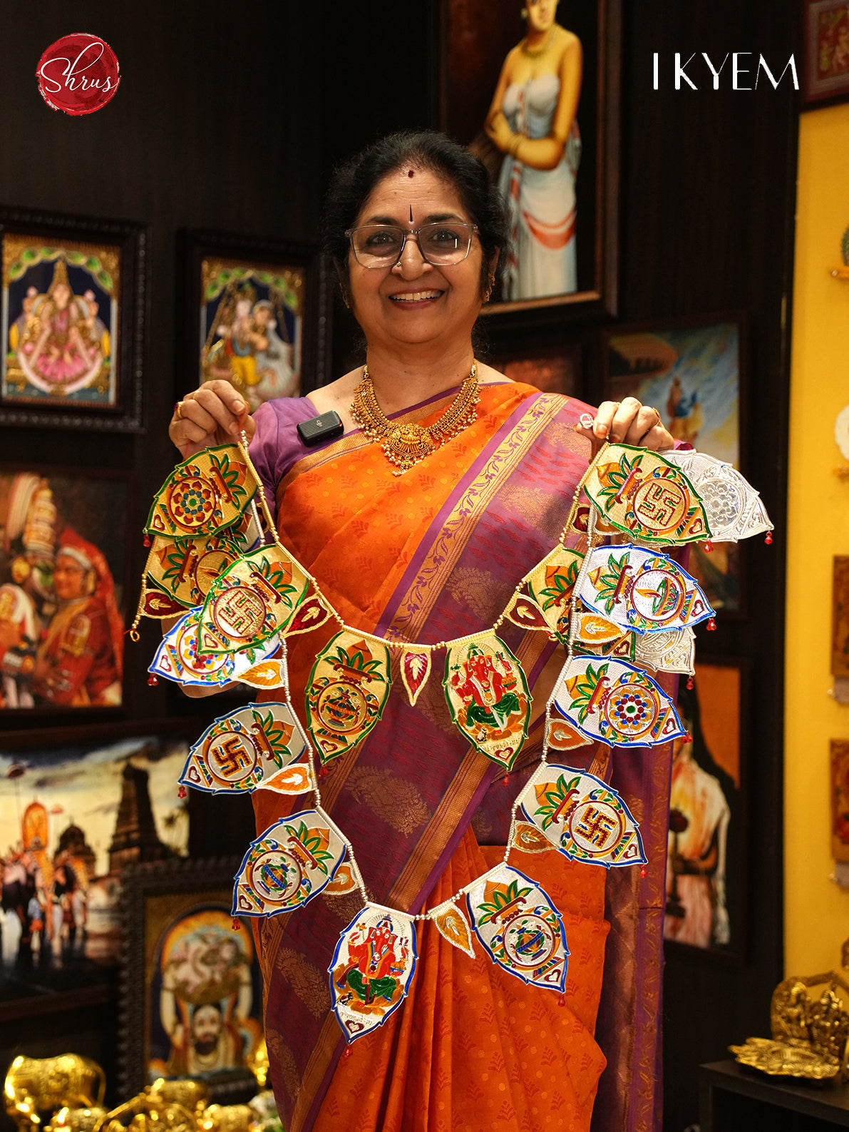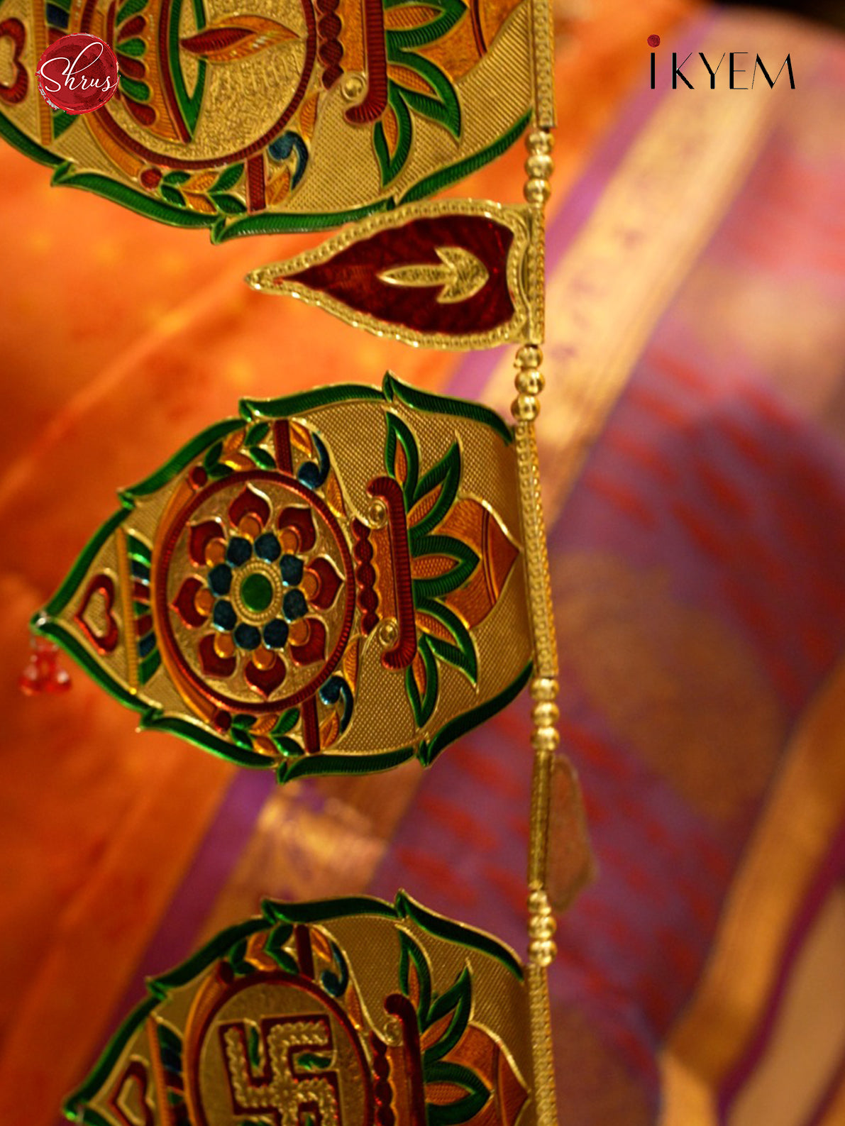 Exquisite Gold Mango Leaf Swastik Thoran, a symbol of prosperity and auspiciousness, designed to grace your home with its divine presence. Each leaf in this elegant thoran is meticulously crafted from premium gold-tone metal, reflecting a lustrous sheen that captures the essence of traditional festivities. The centerpiece features a beautifully detailed Swastik, known for bringing good fortune and peace, making it a perfect adornment for entrances, pooja rooms, or any sacred space. Its timeless design blends seamlessly with both contemporary and traditional decor, adding a touch of luxury and cultural heritage. Elevate your celebrations and daily rituals with this magnificent piece, a testament to craftsmanship and sacred symbolism