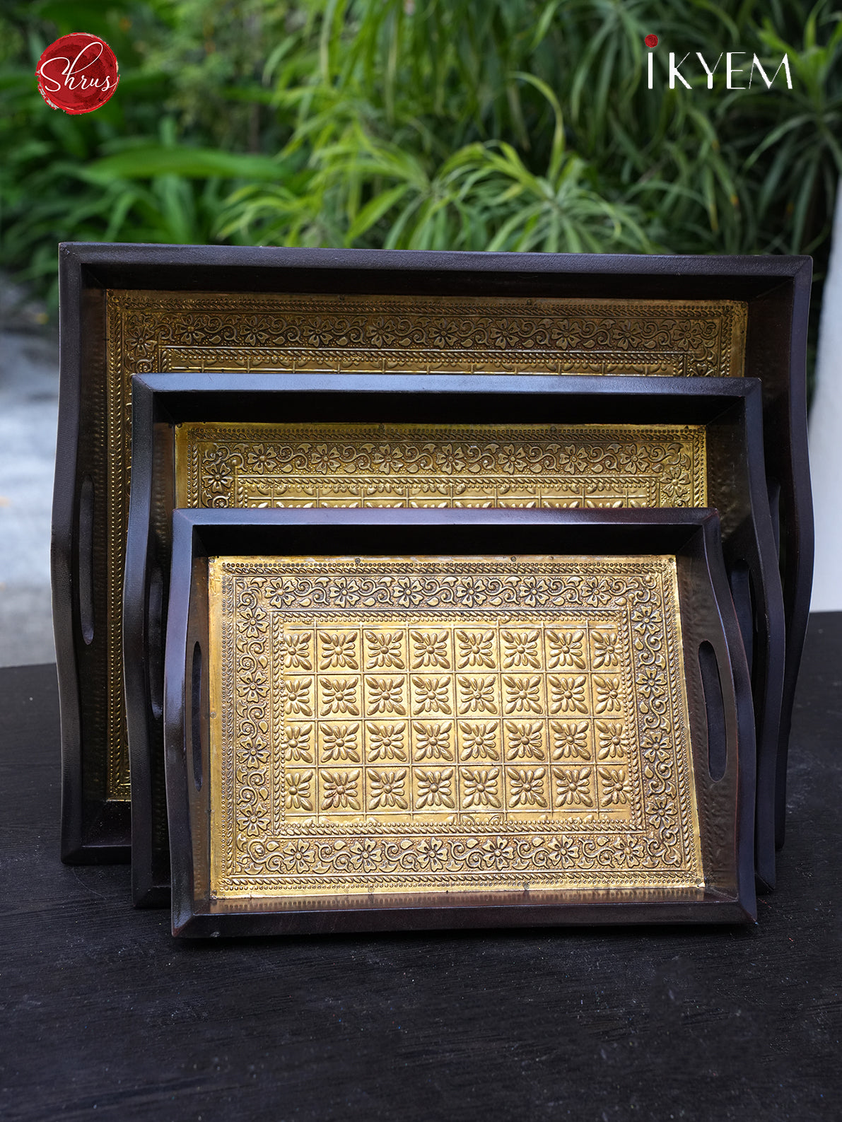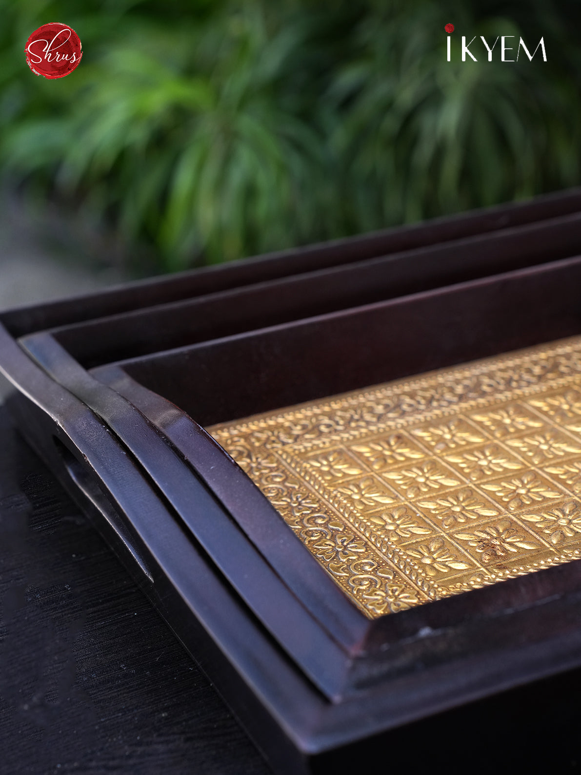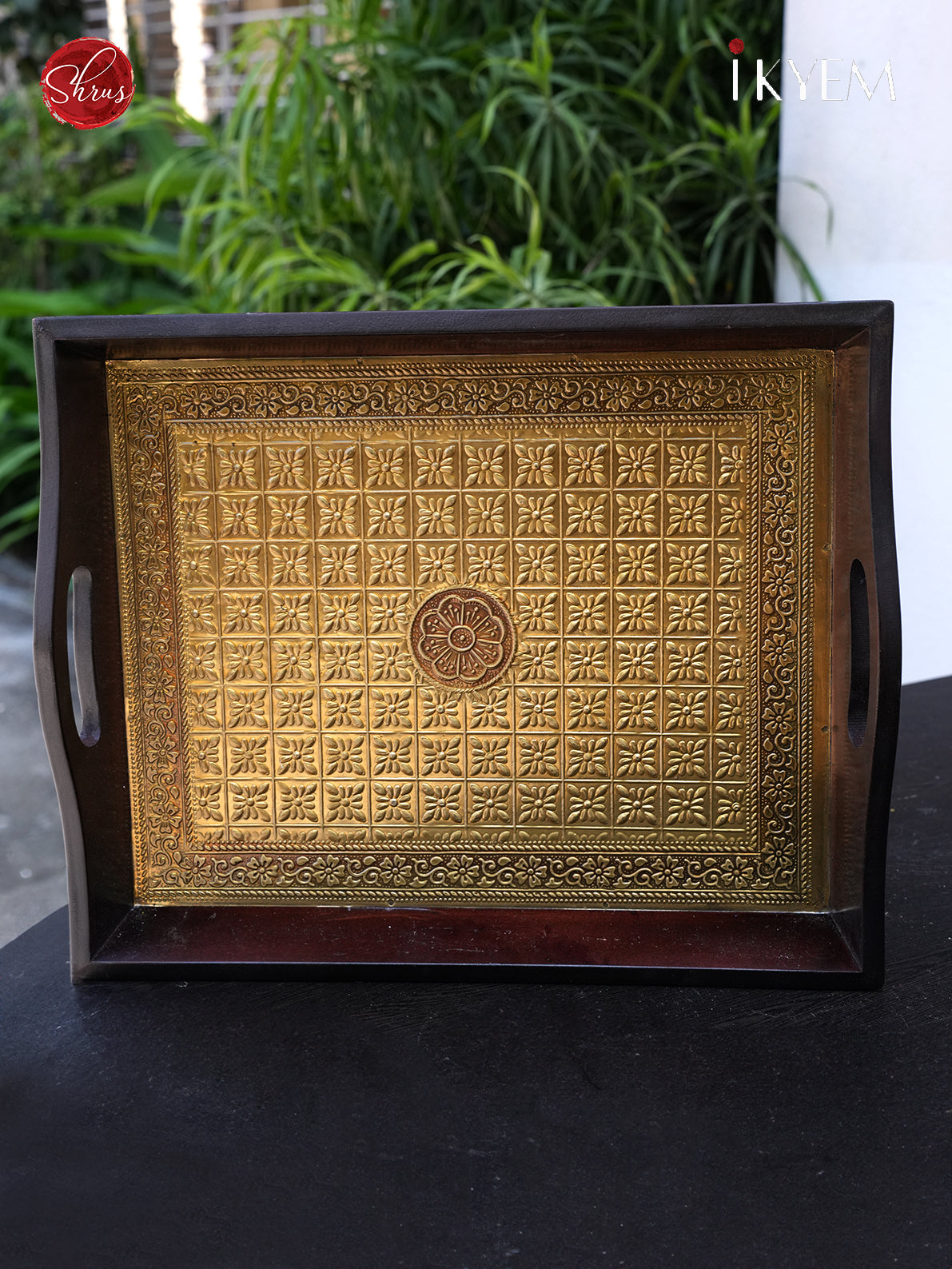 Wooden Tray with Brass Finish