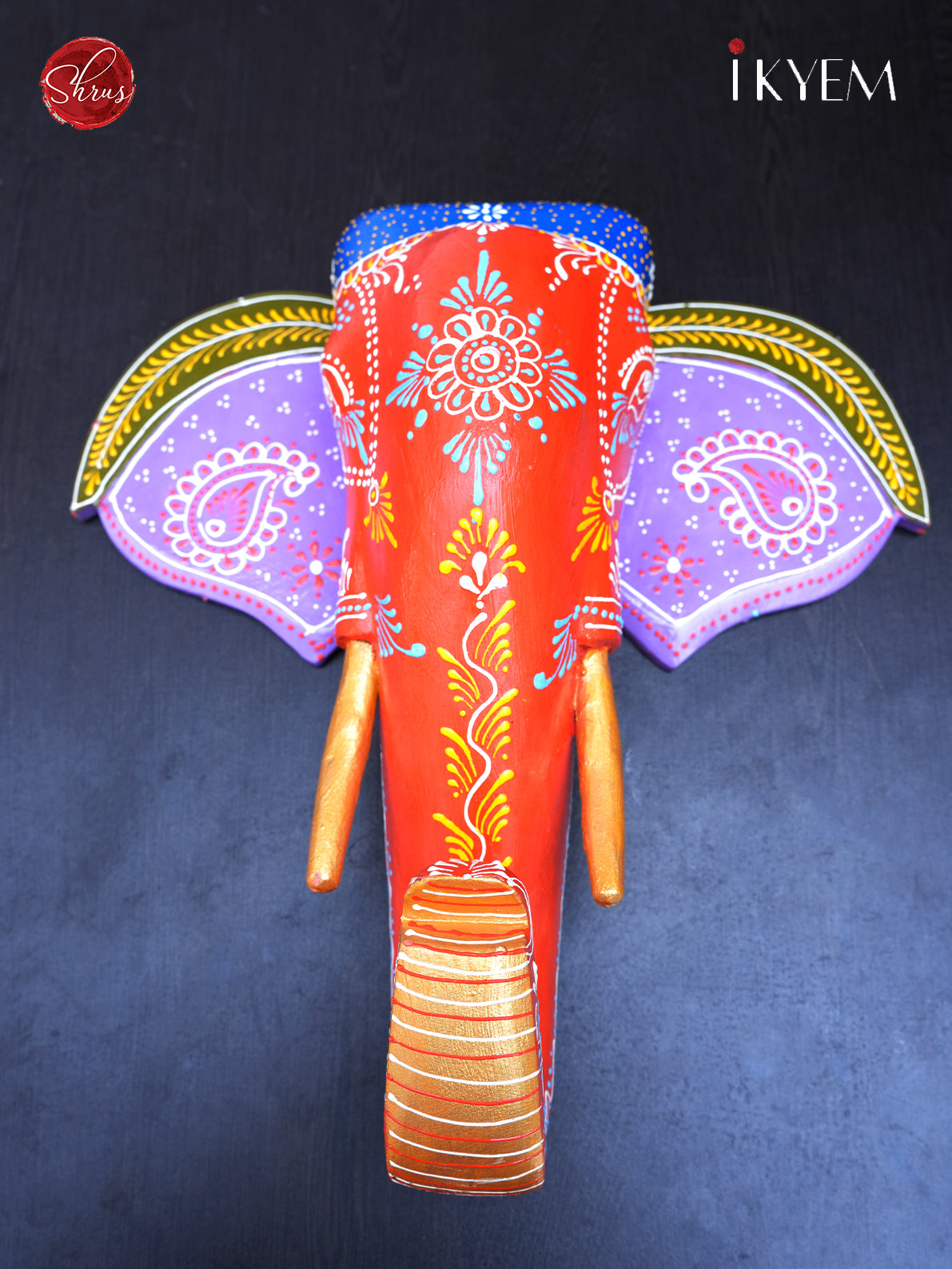 Hand painted wooden elephant Wall hanging