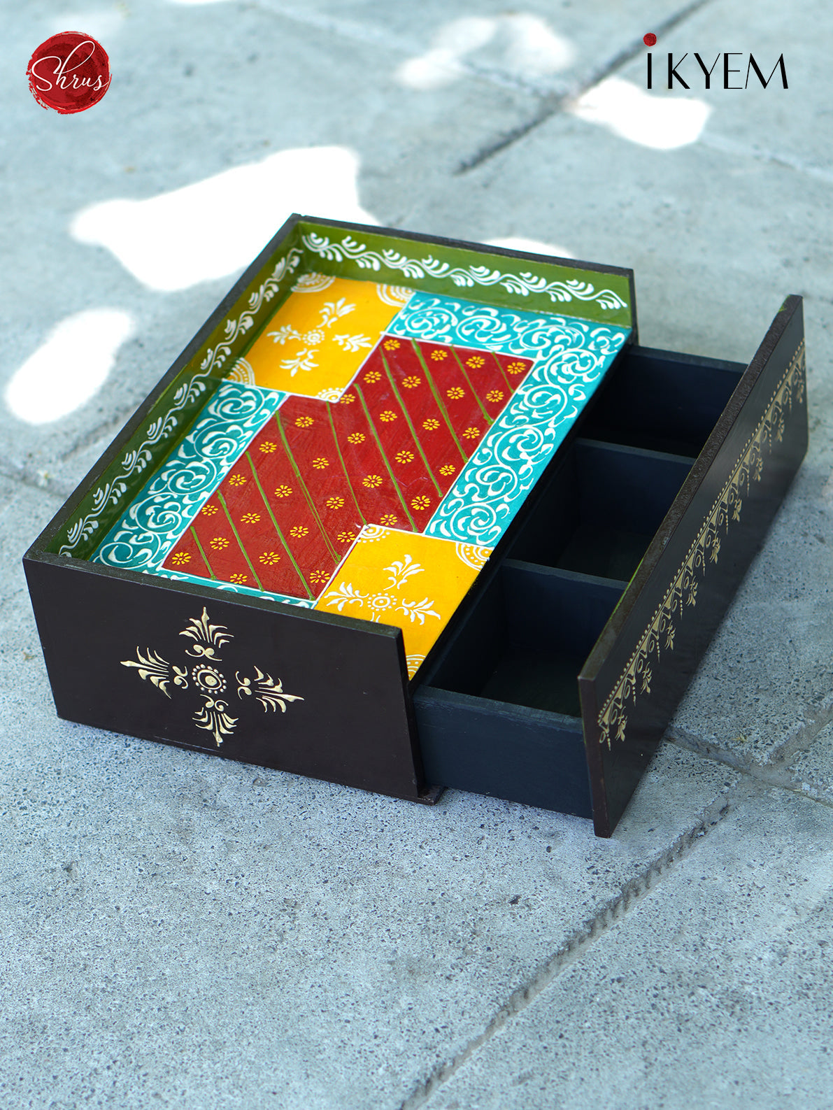 Handpainted Multipurpose Wooden Storage Box, a perfect blend of function and beauty for your home or as a thoughtful return gift. Adorned with intricate designs, each box is a unique masterpiece that adds a splash of color and creativity to any space. Ideal for organizing treasures or embellishing decor, it's a charming solution that marries art with utility