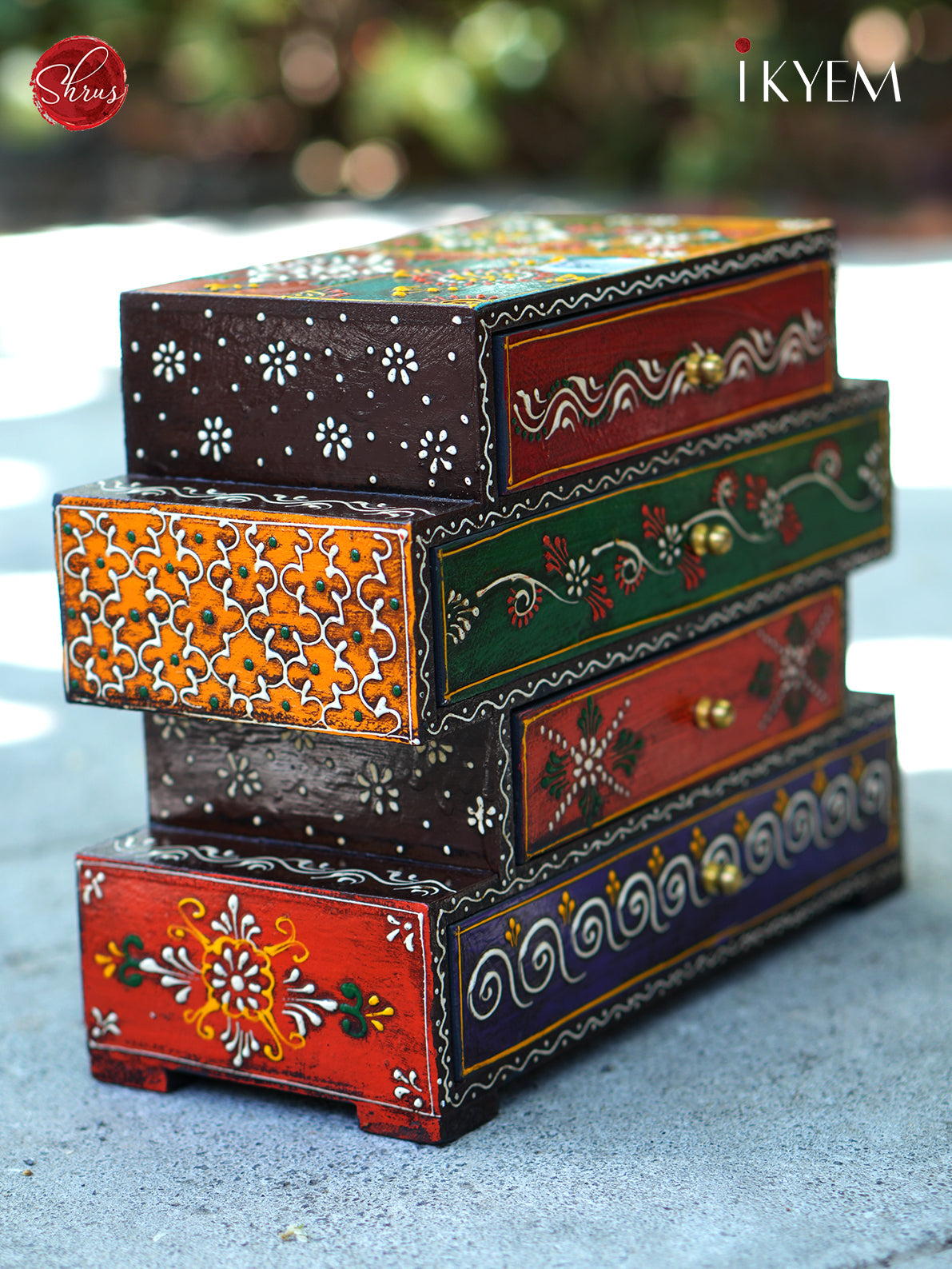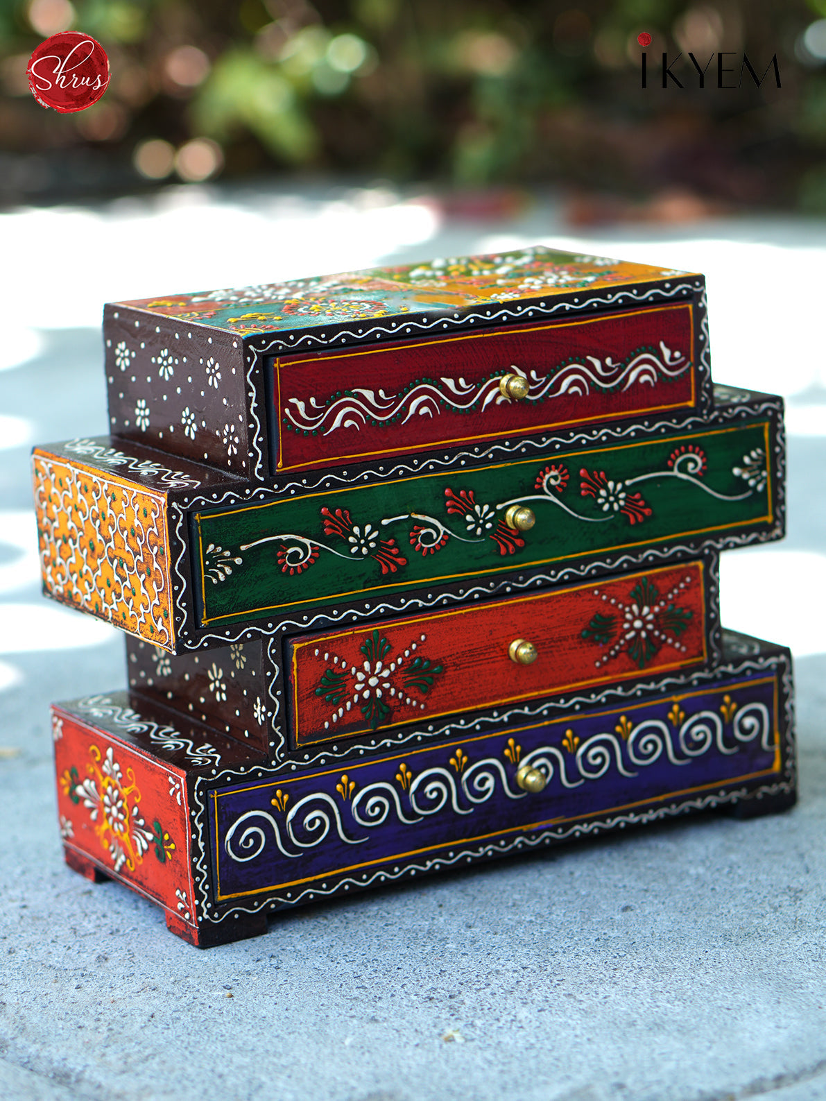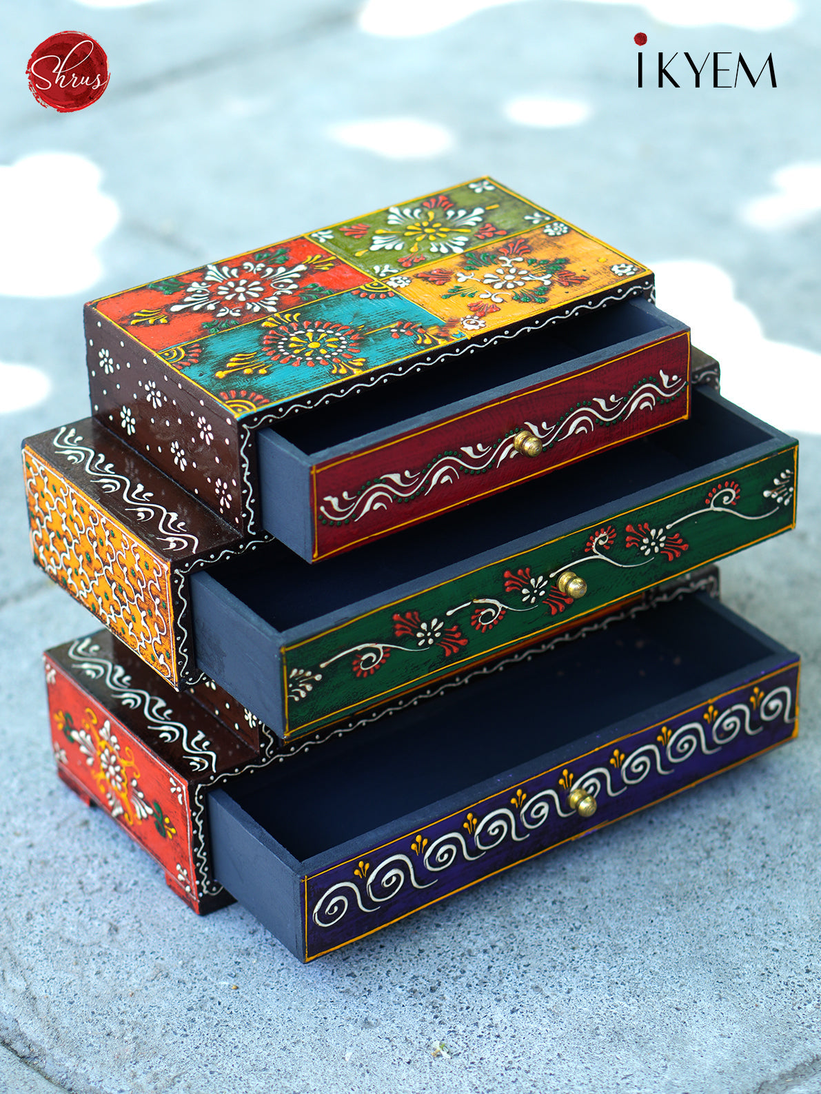 Handpainted Multipurpose Wooden Storage Box, a perfect blend of function and beauty for your home or as a thoughtful return gift. Adorned with intricate designs, each box is a unique masterpiece that adds a splash of color and creativity to any space. Ideal for organizing treasures or embellishing decor, it's a charming solution that marries art with utility
