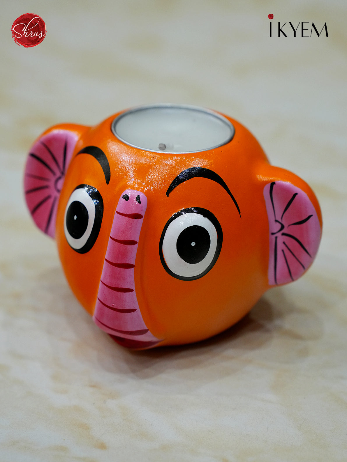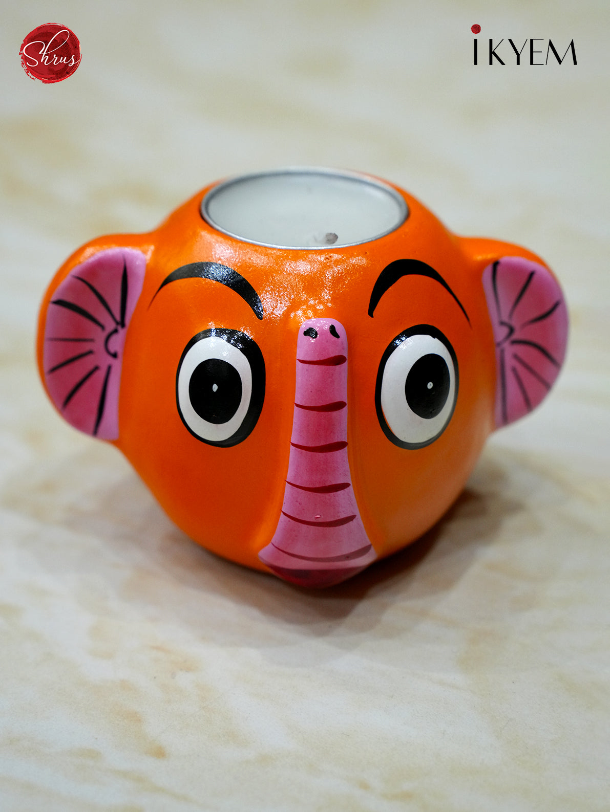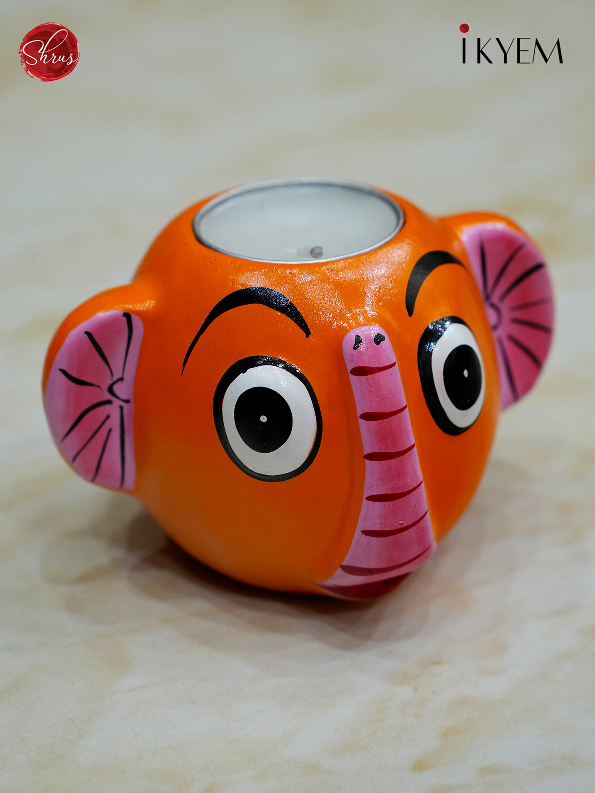 Handpainted Clay Elephant Candle Holder