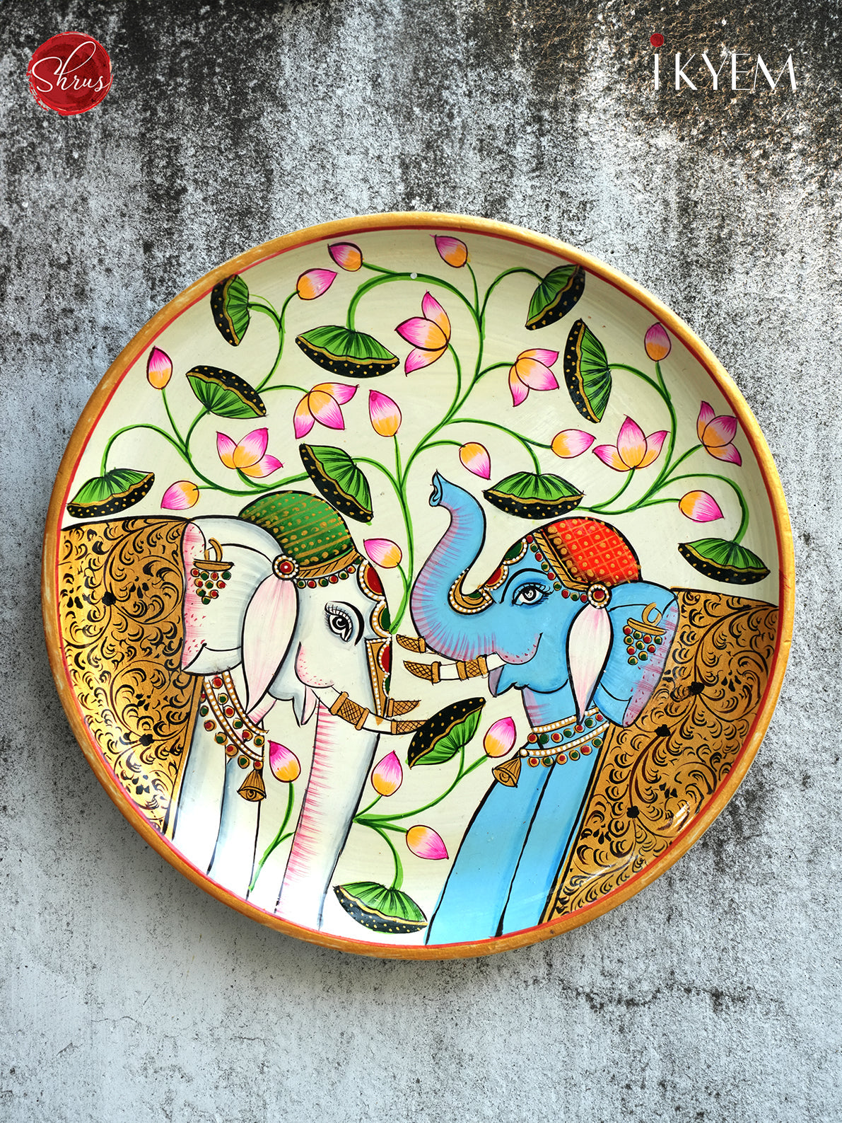 Hand painted Elephant pichwai Hand plate