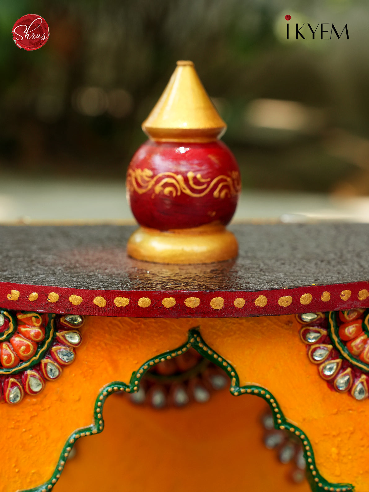 Elevate your spiritual space with our Hand Painted Pooja Mantap, a meticulously crafted sanctum that brings both beauty and serenity to your rituals. Each mantap is adorned with traditional motifs and vibrant colors, reflecting the sacred art and devotion embedded in its design. This exquisite piece serves as a focal point for daily worship, harmoniously blending spirituality with artisanal craftsmanship, making it a treasured addition to any home.