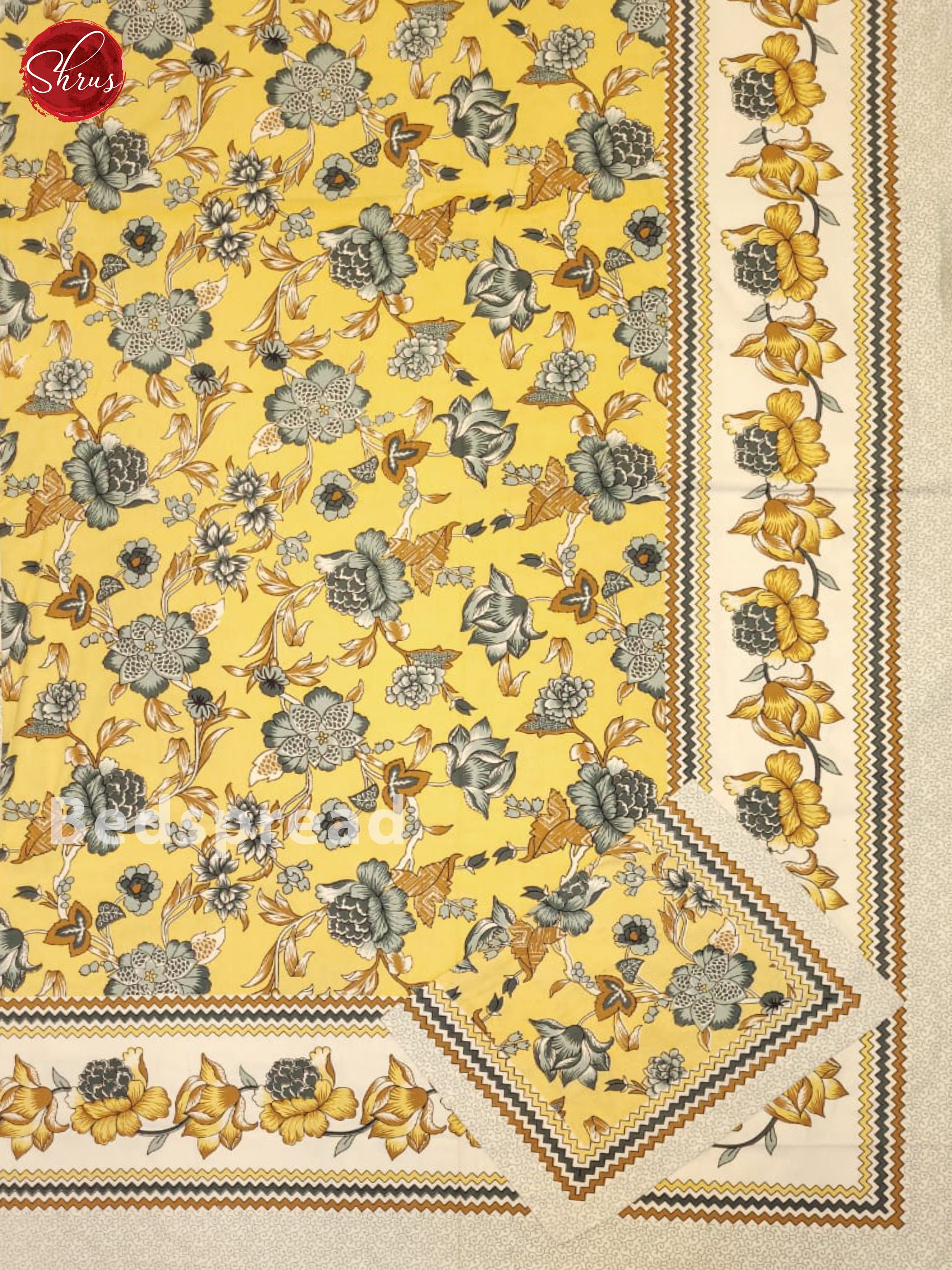 Yellow & Cream- Jaipuri printed Double Bed Spread