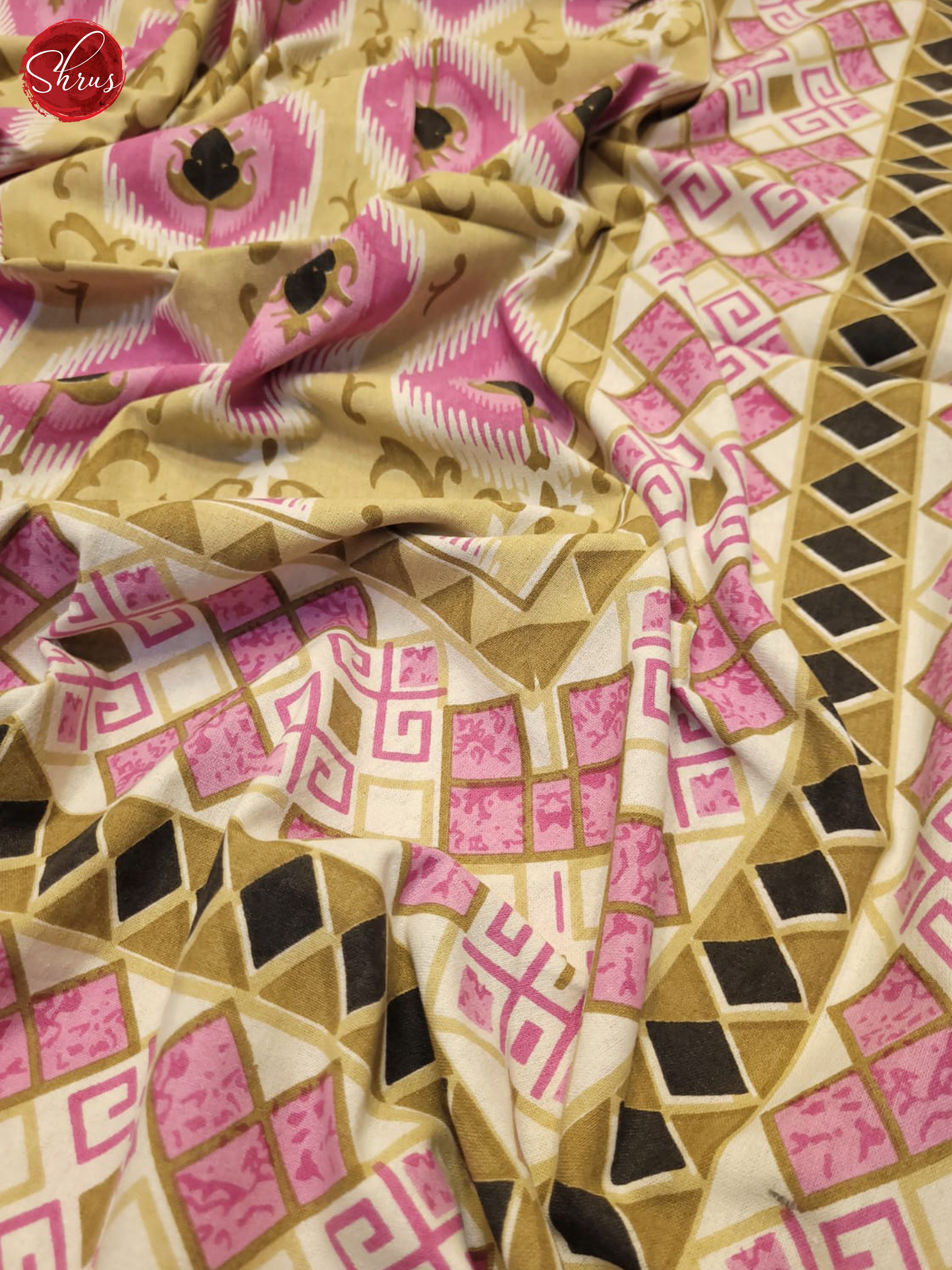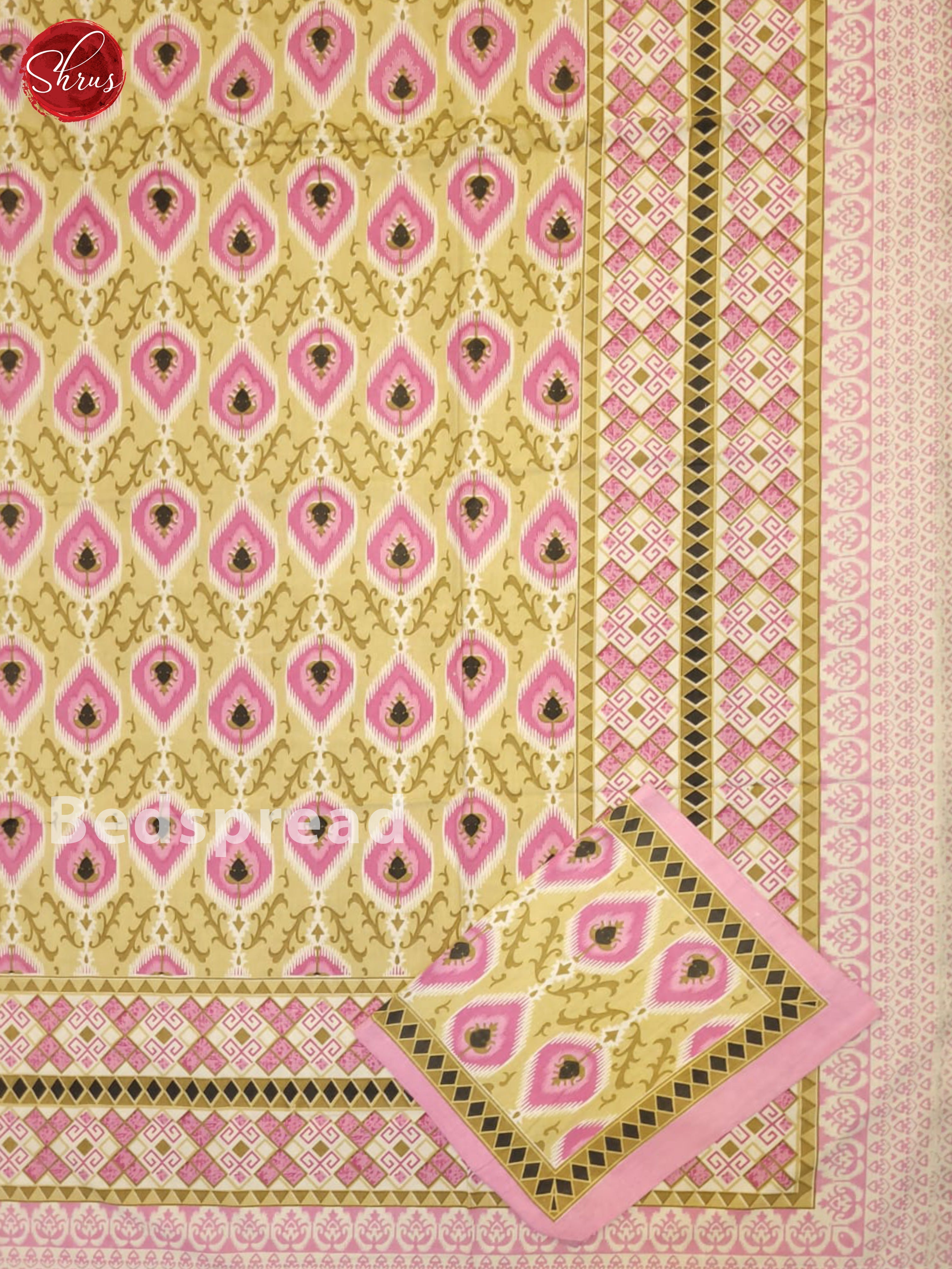 Beige & Pink- Jaipuri Printed Double Bed Spread
