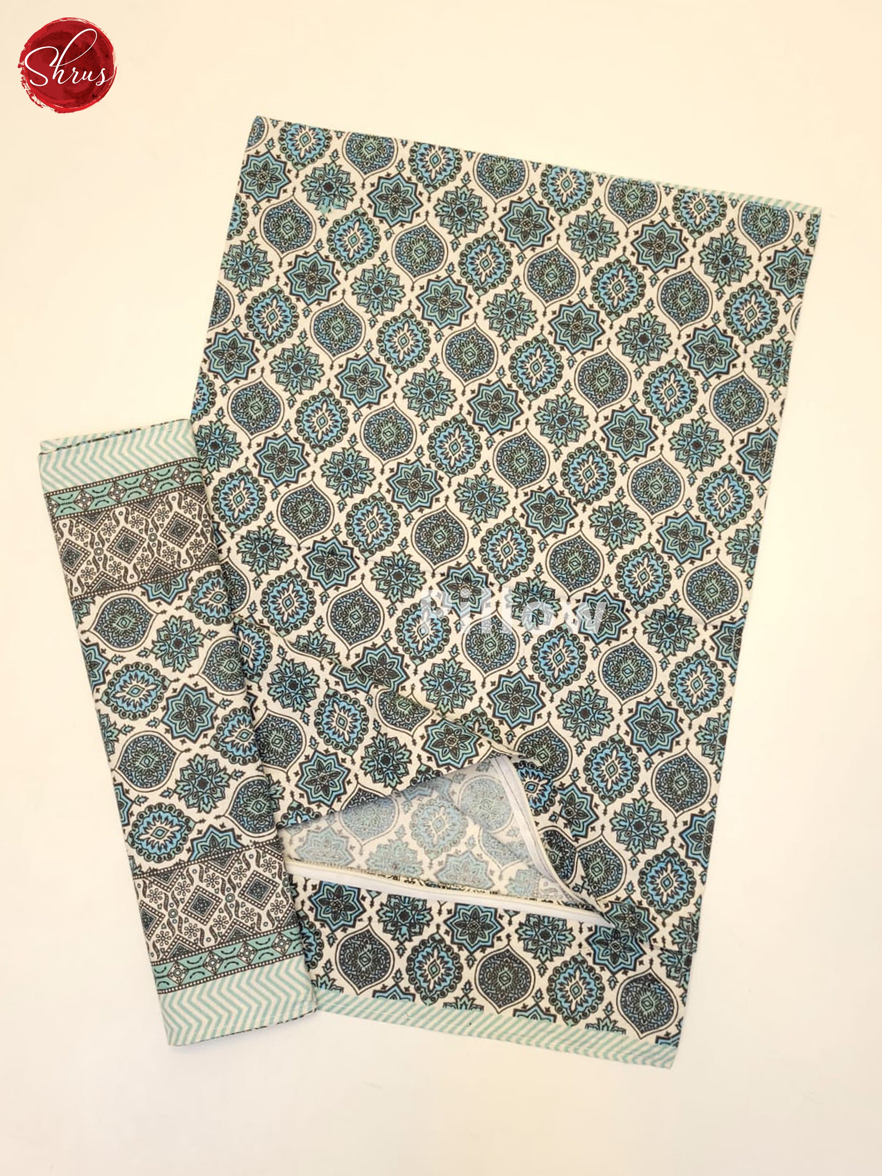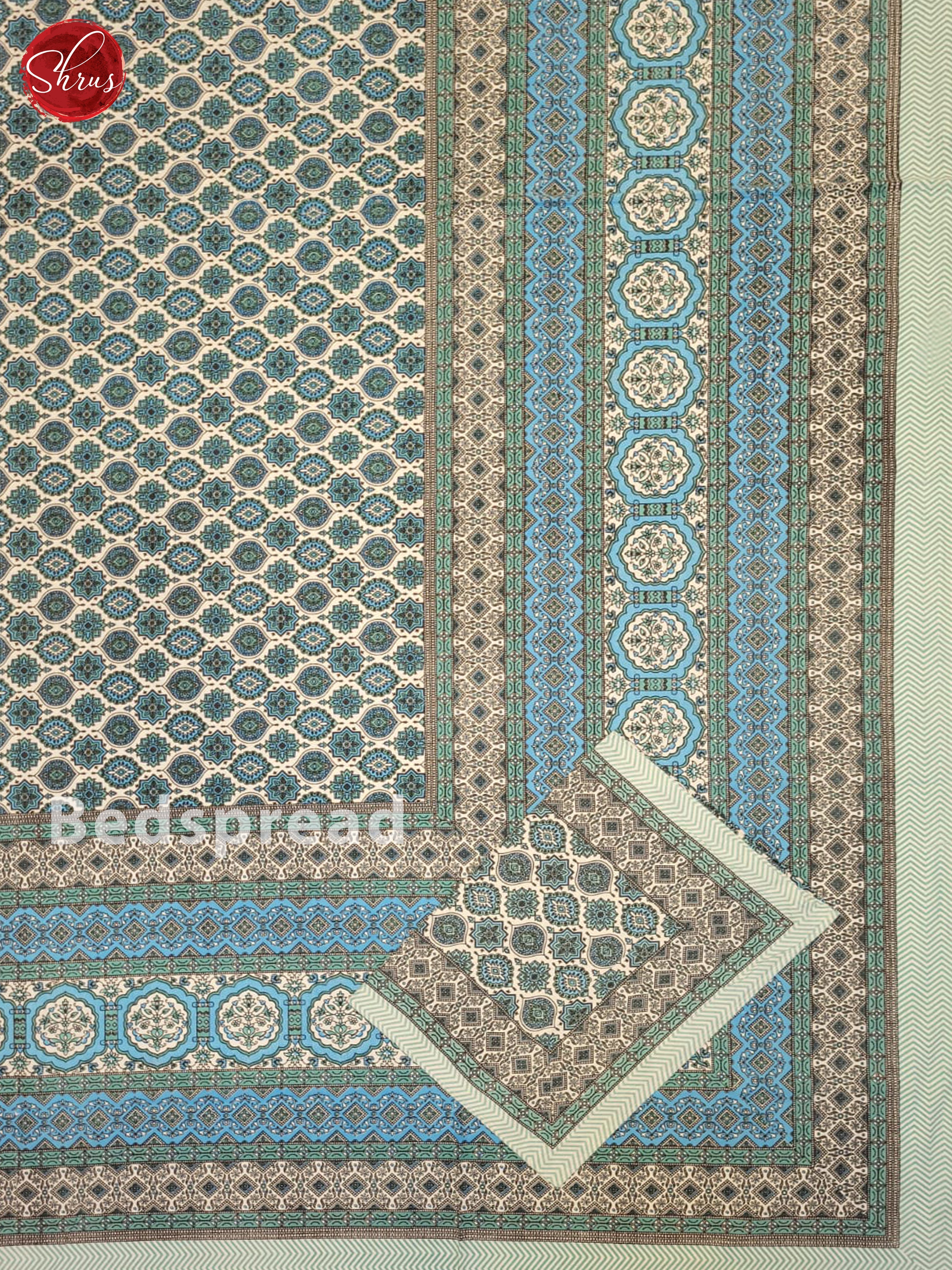 Cream & Blue - Jaipuri Printed Double Bed Spread