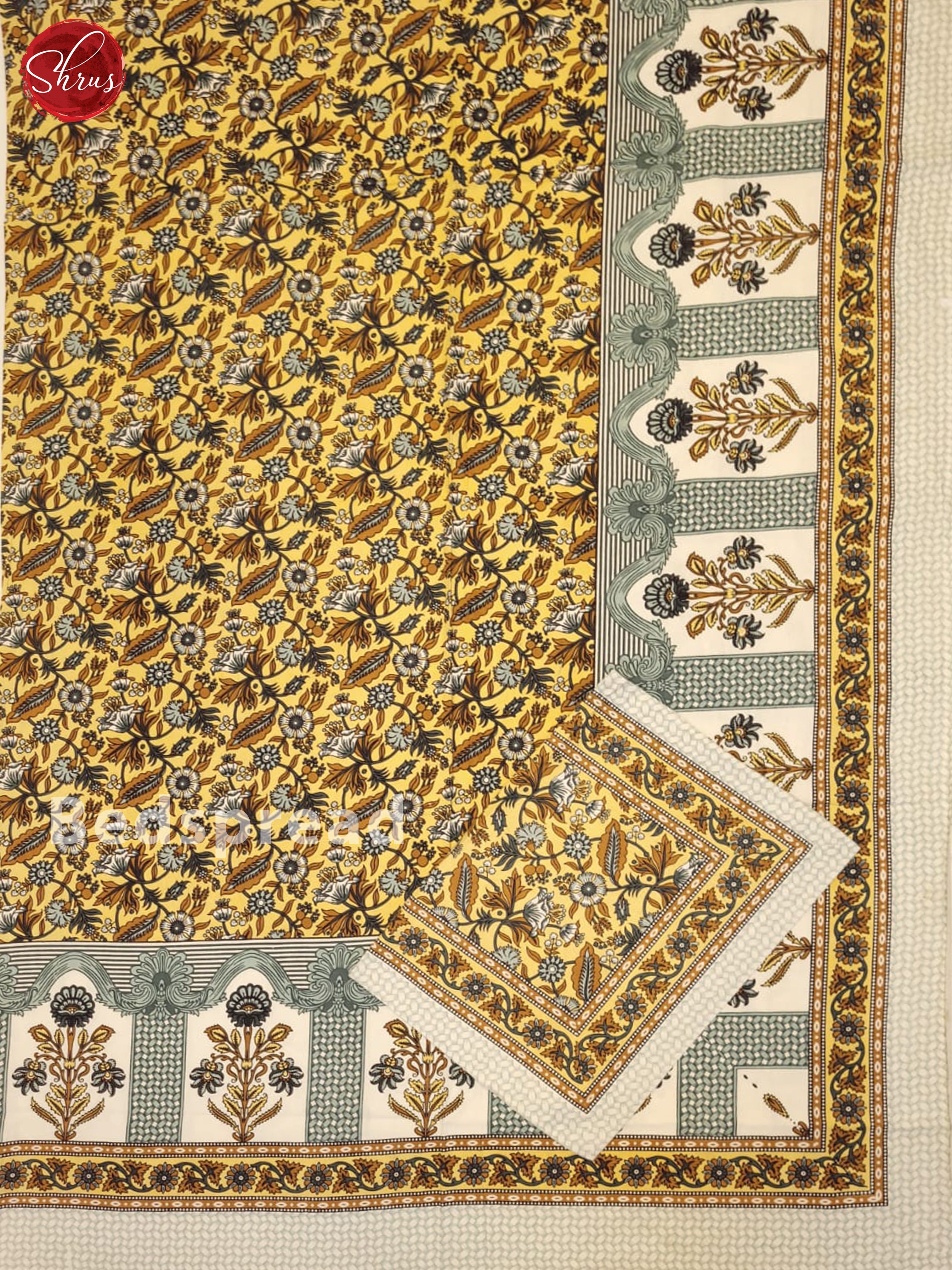 Yellow & Cream-Jaipuri Printed Double Bed Spread