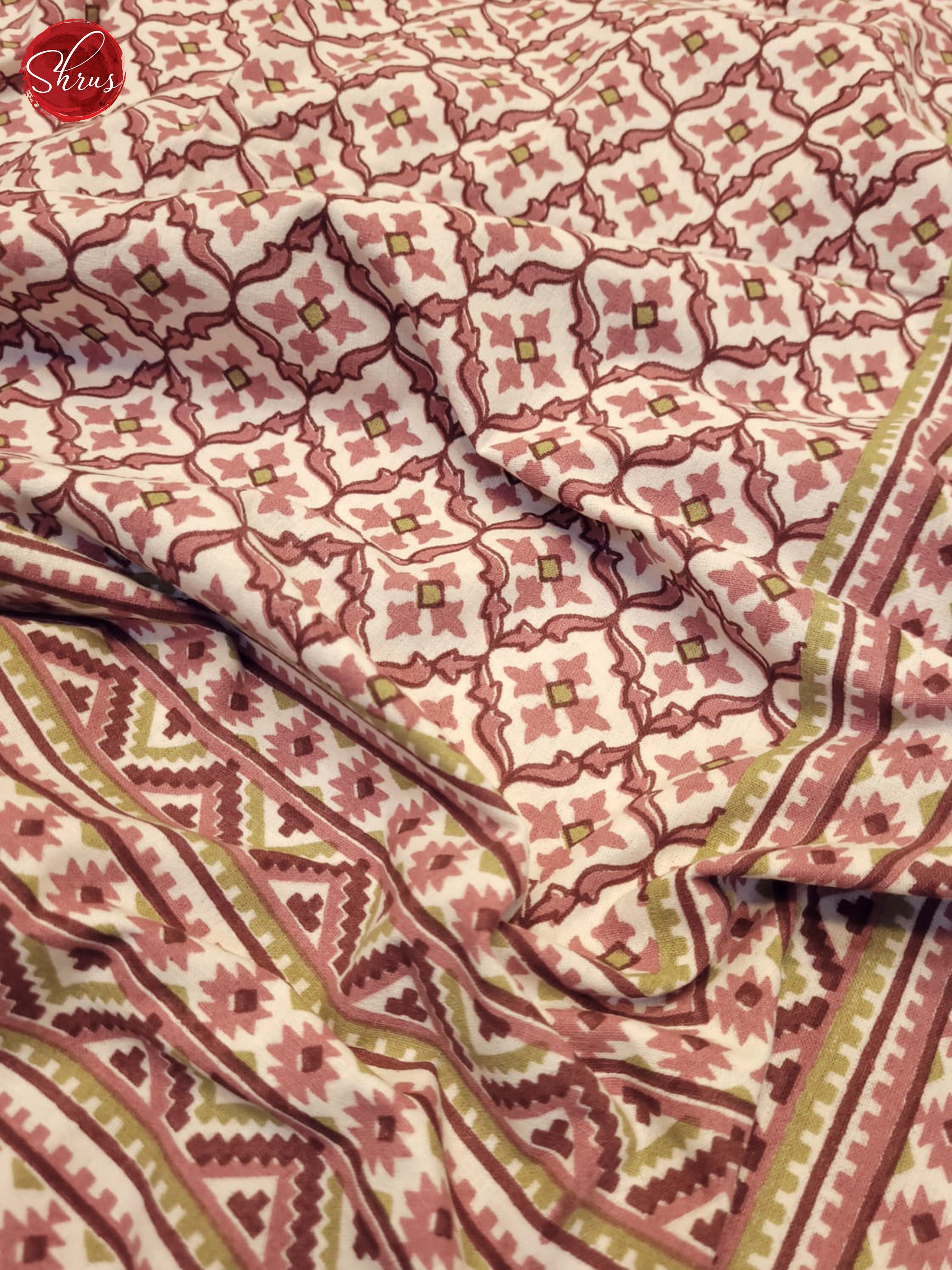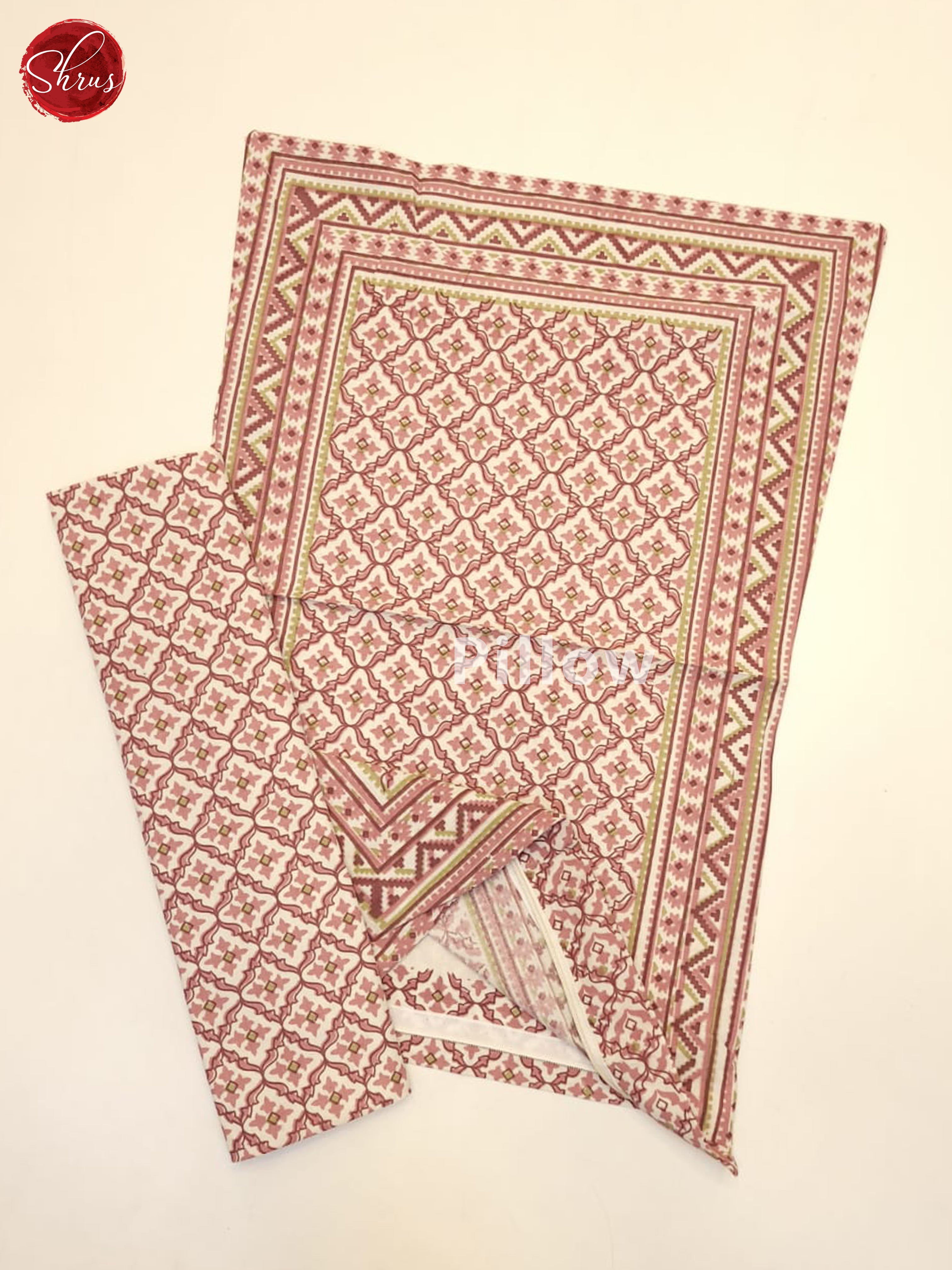 Cream & Pink- Jaipuri printed Double Bed Spread