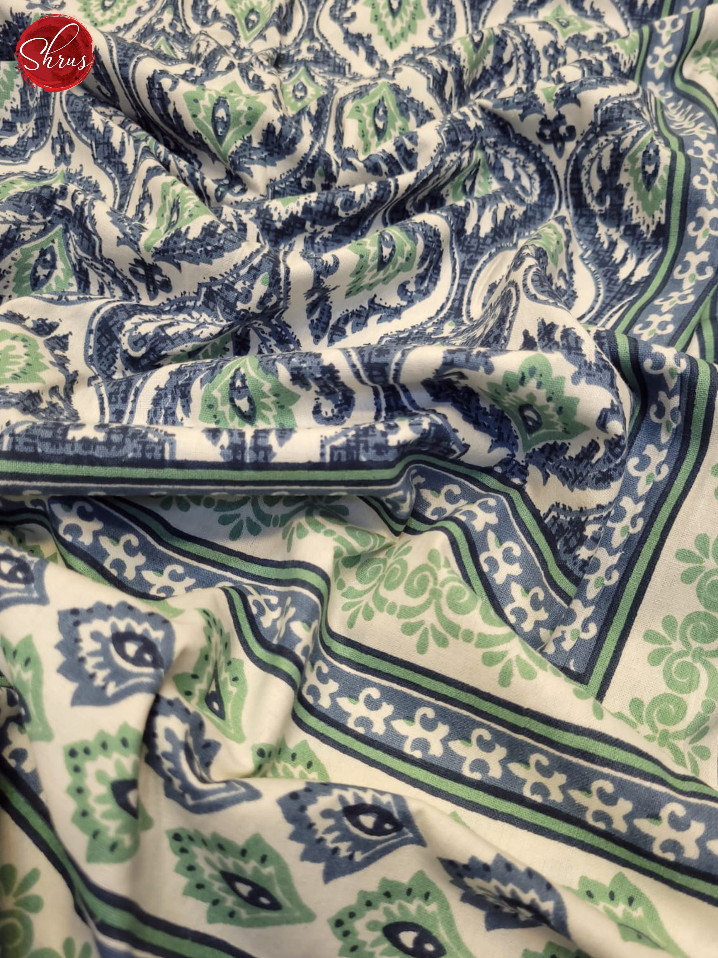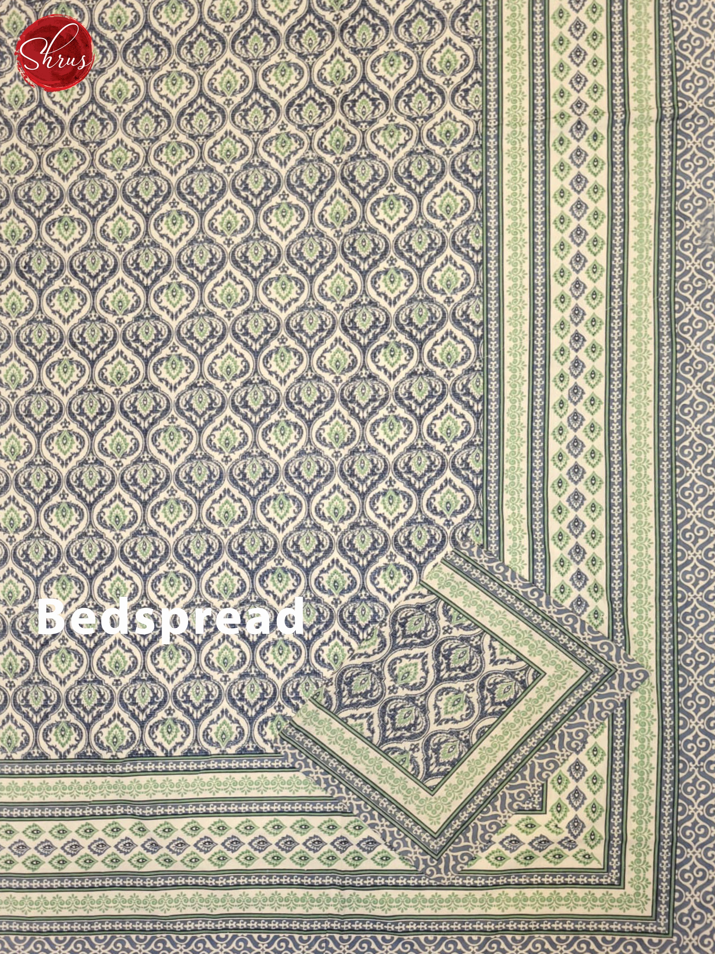 Cream & Blue - Jaipuri Printed Double Bed Spread