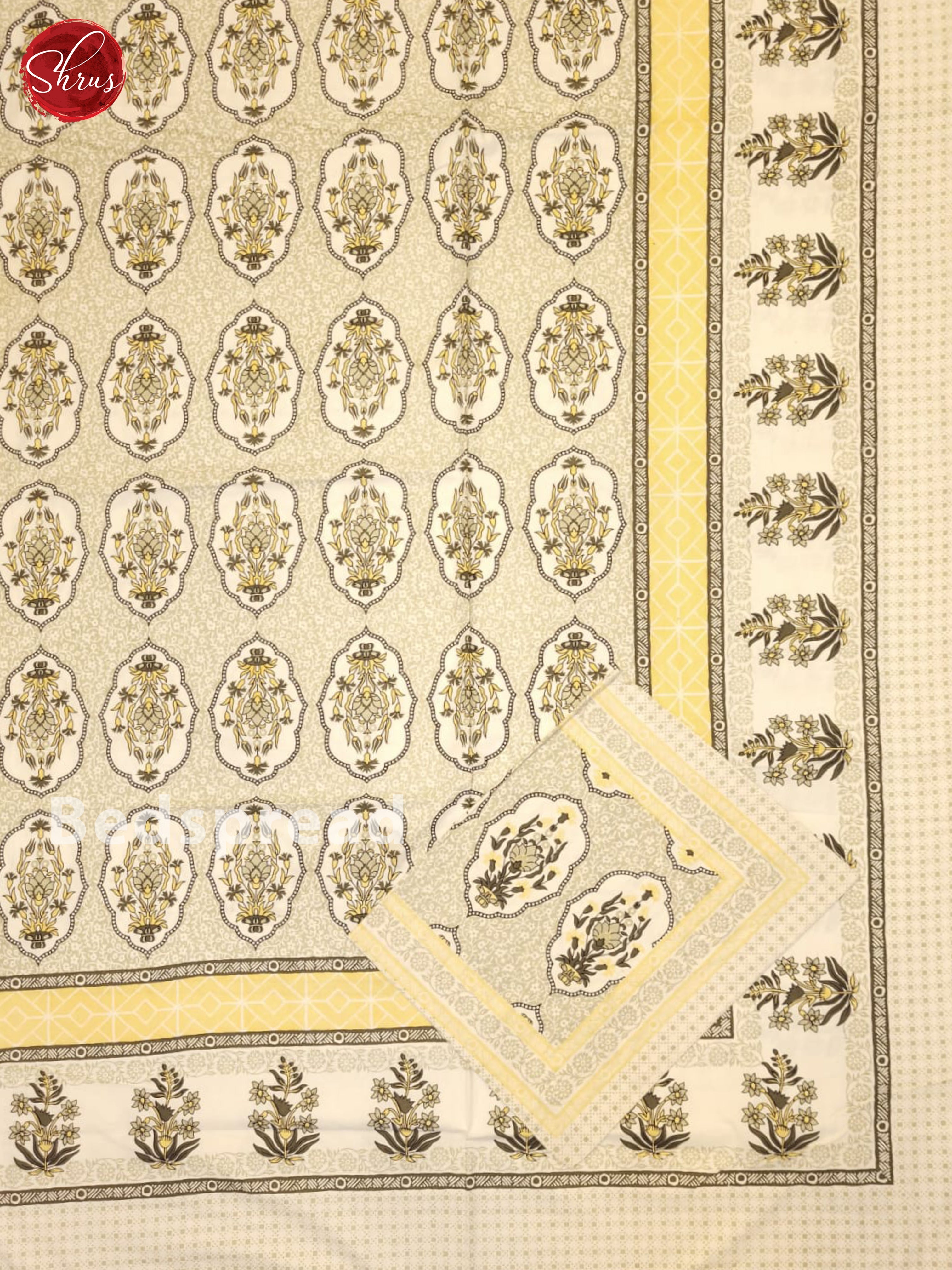 Cream & Grey - Jaipuri Printed Double Bed Spread