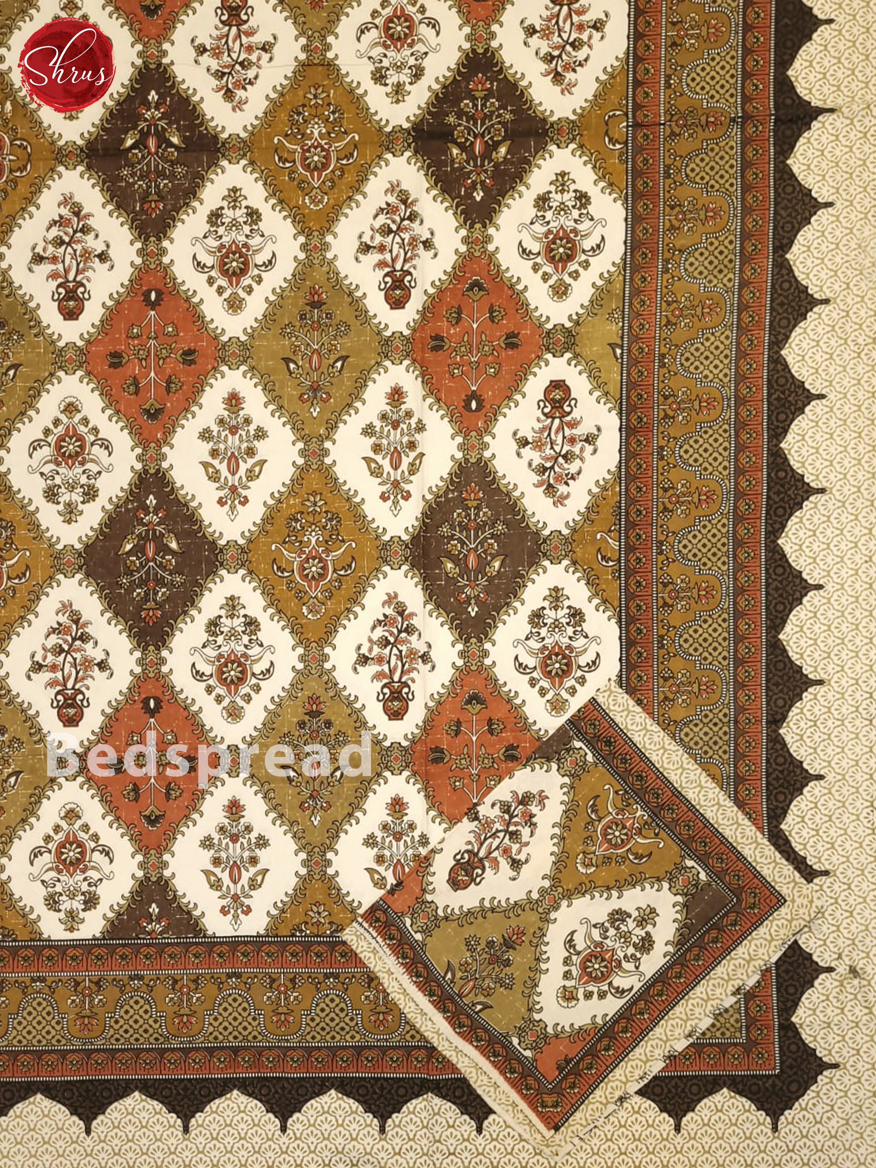Cream & Brown - Jaipuri Printed Double Bed Spread