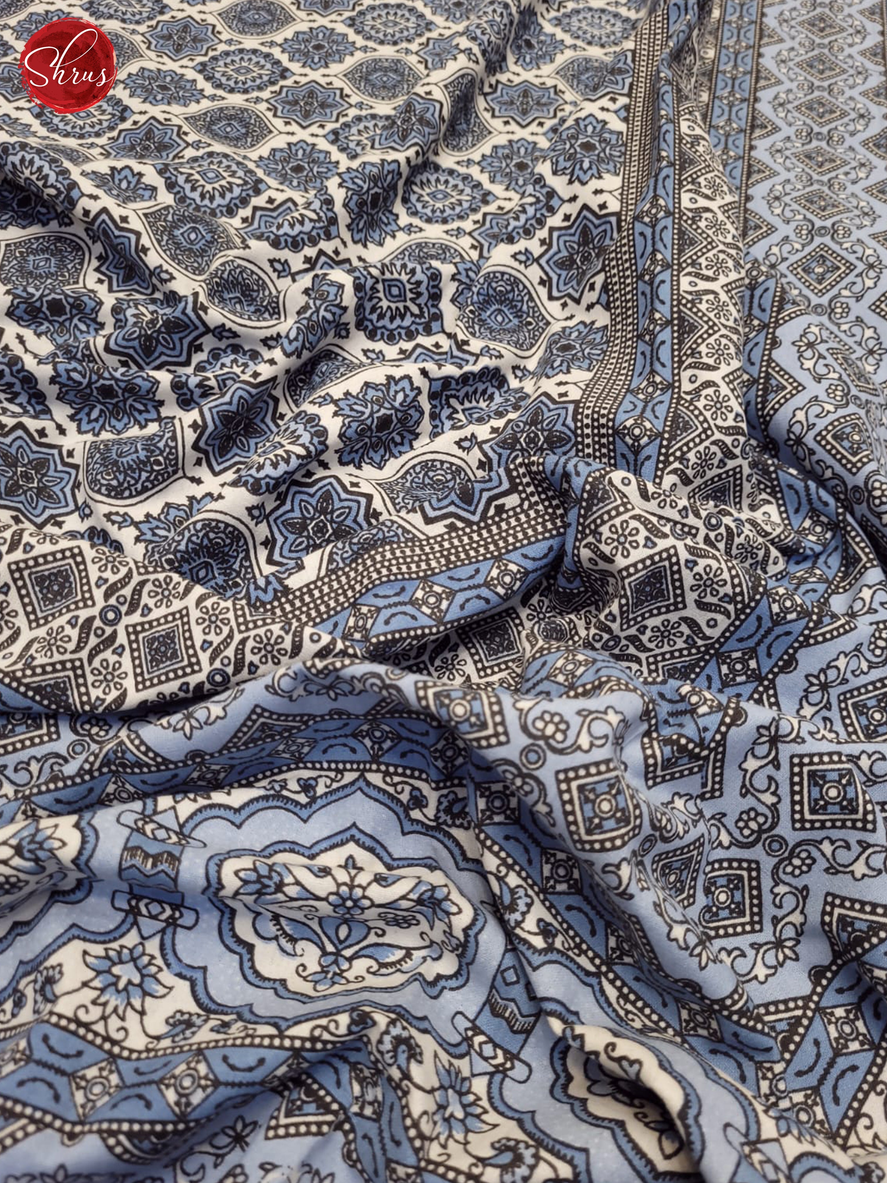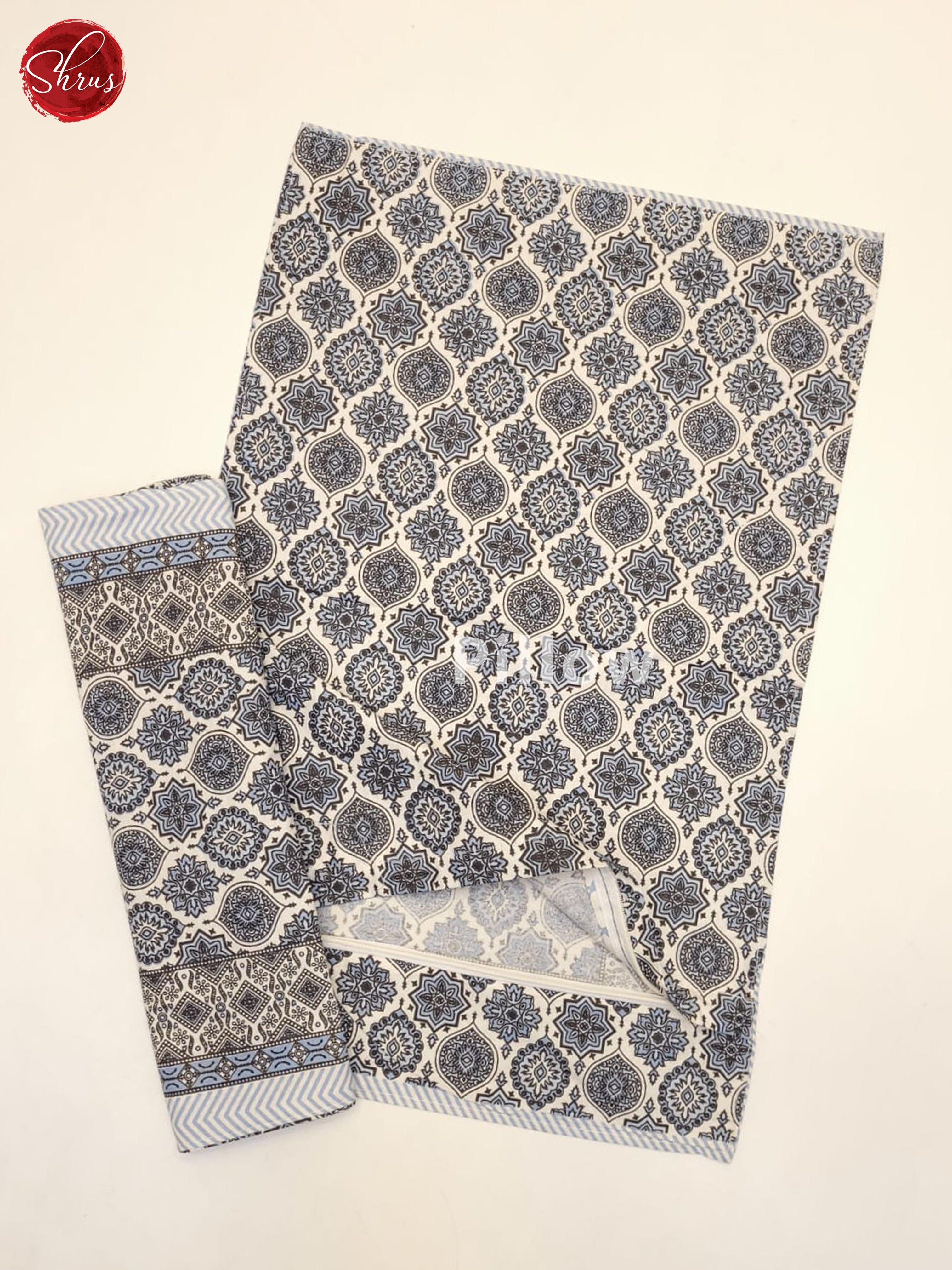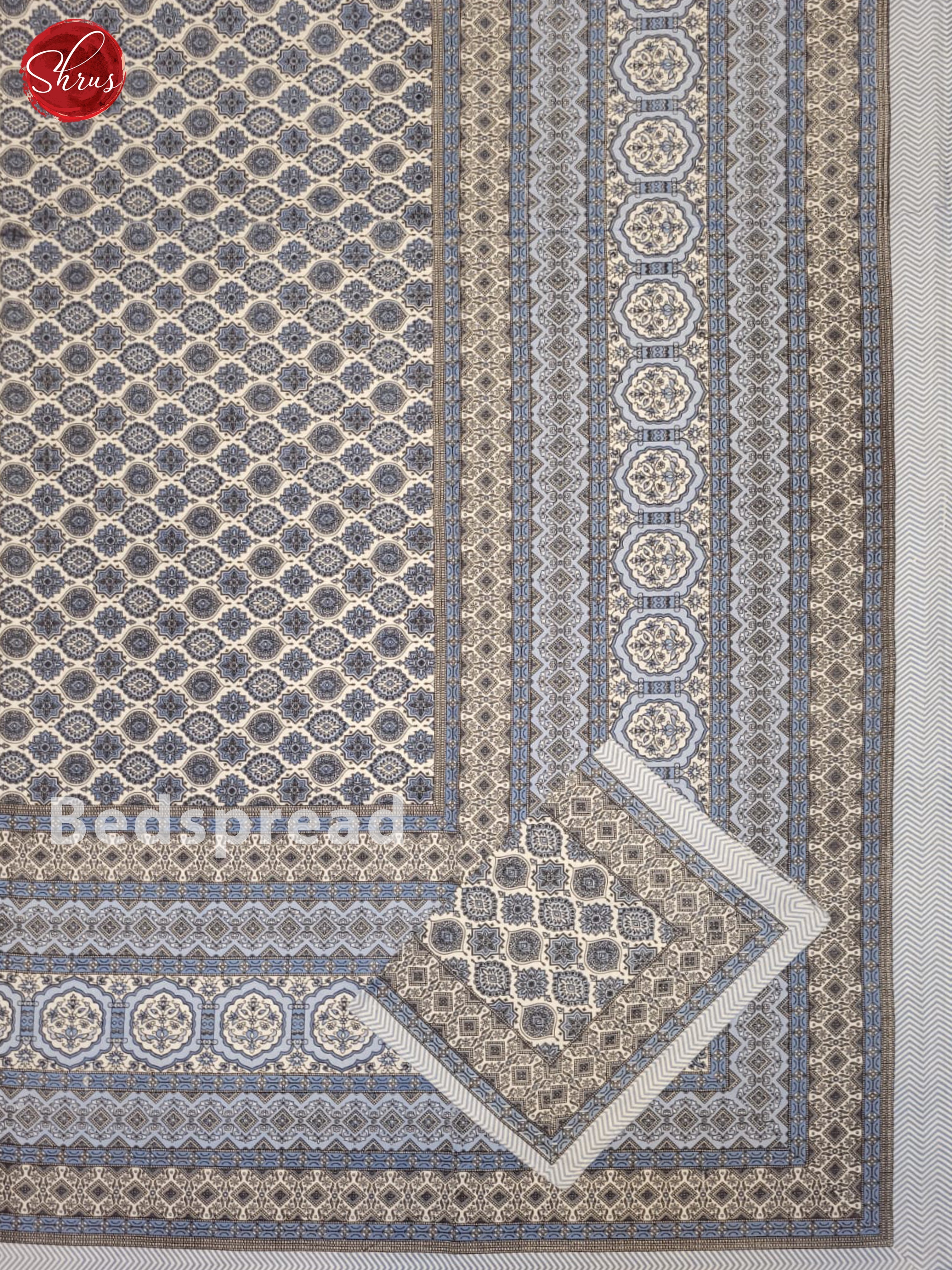 Cream & Blue- Jaipuri Printed Double Bed Spread
