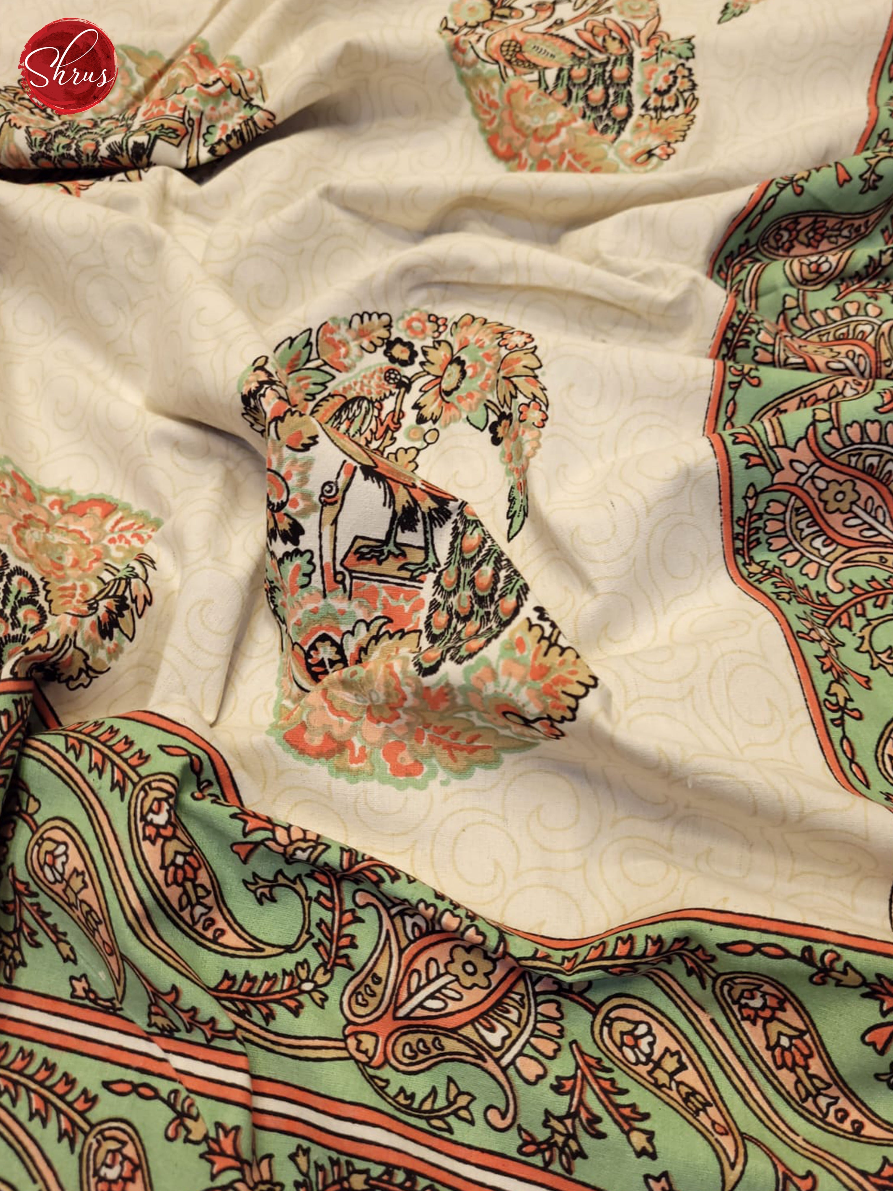Cream & Green - Jaipuri Printed Double Bed Spread
