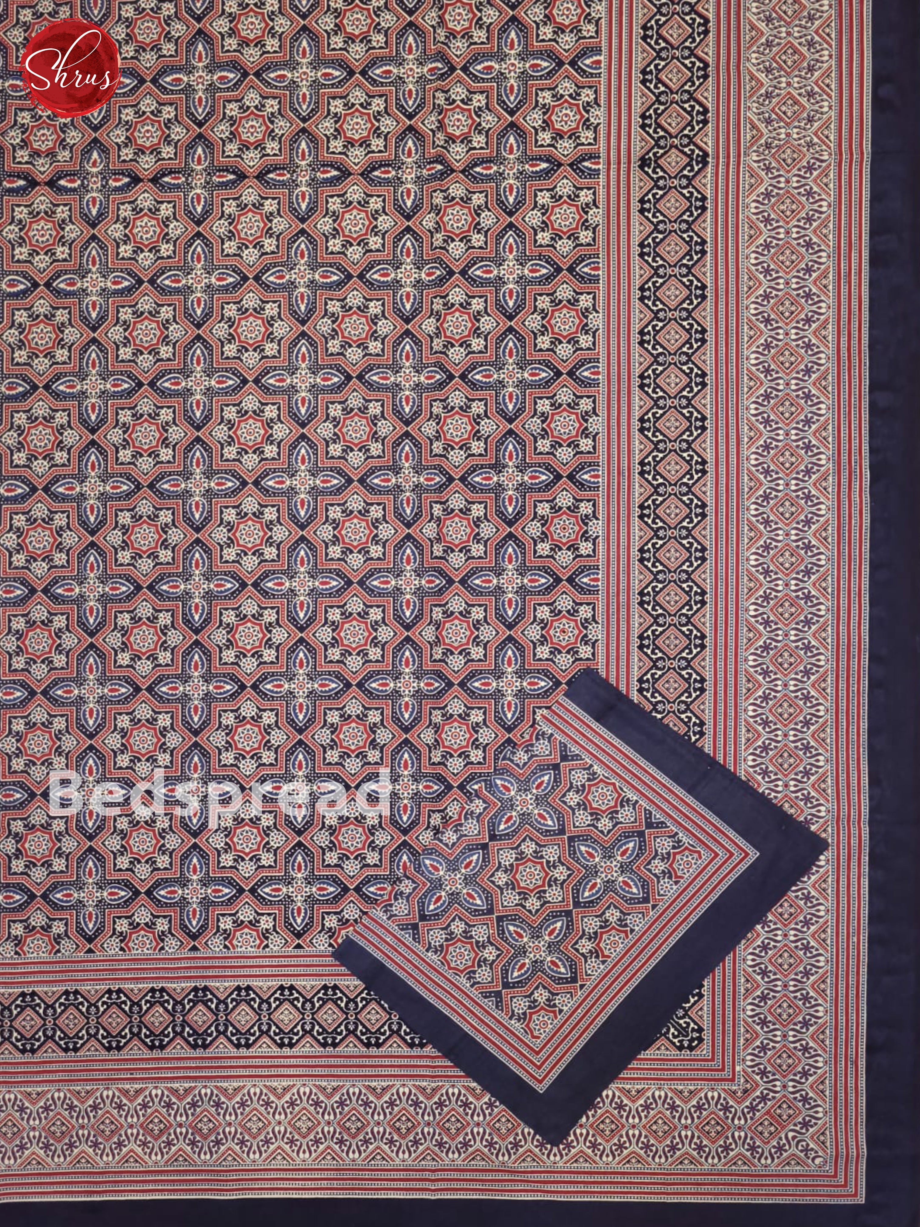 Blue & Red- Jaipuri Printed Double Bed Spread