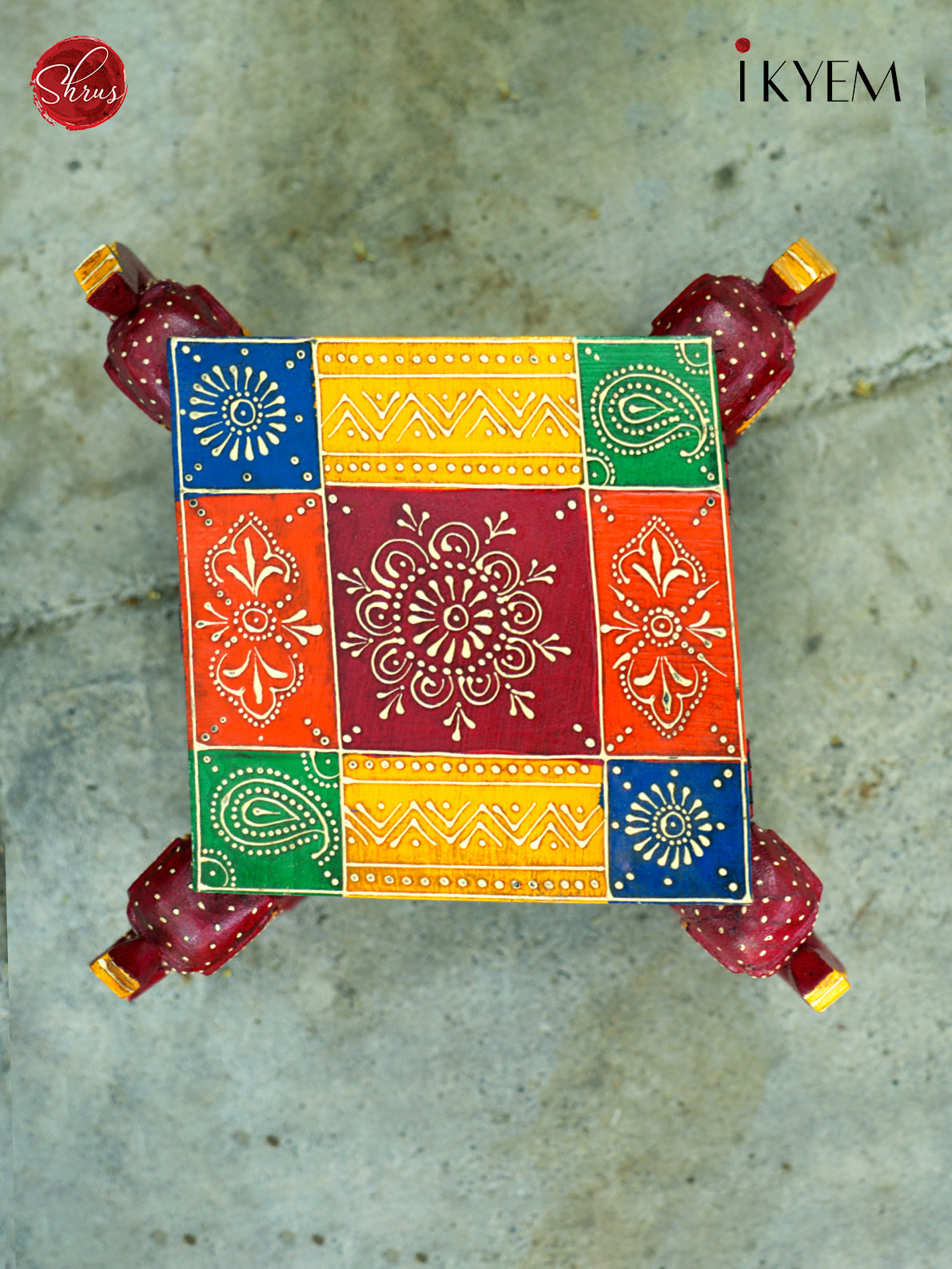 Organize in style with our Handpainted Wooden Square Storage Box, supported by sturdy elephant legs. This unique piece combines functionality with artistic flair, featuring vibrant, handcrafted designs. Perfect for adding a touch of whimsy and elegance to any room