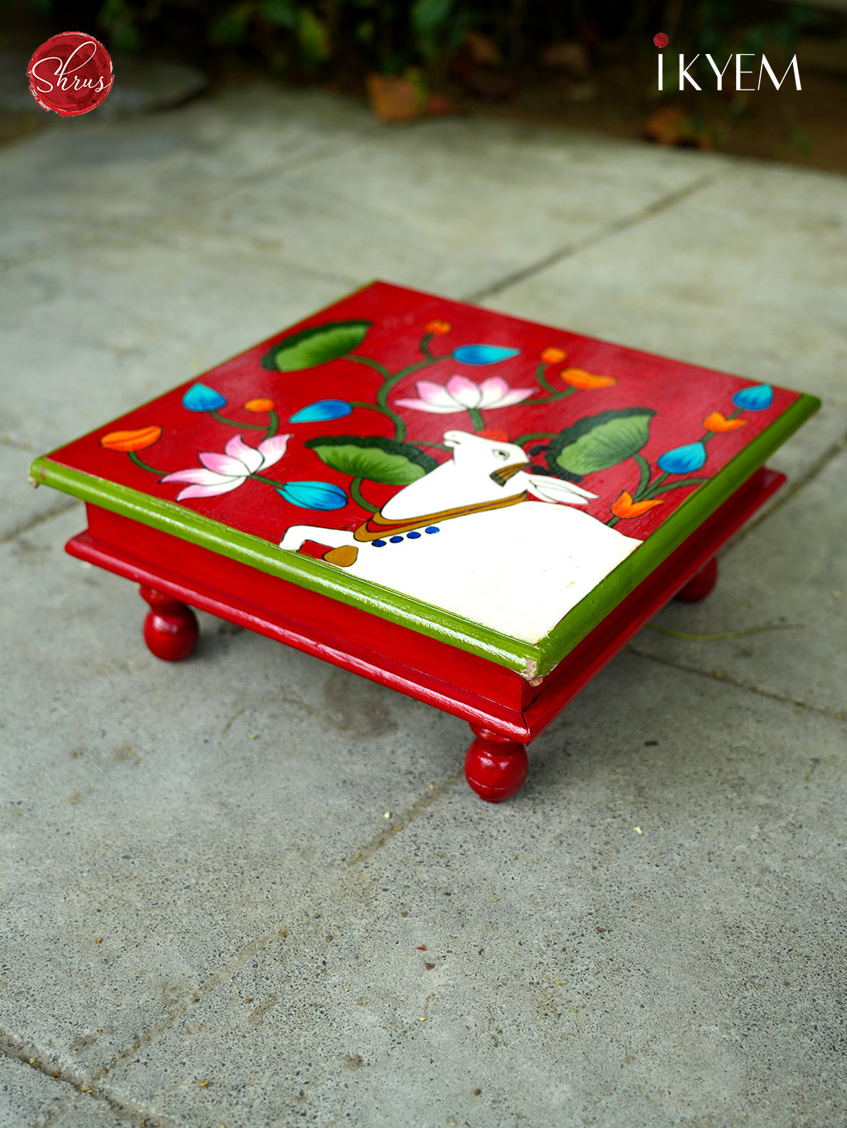 Elevate your home decor with our Hand painted Wooden Square Chowki This piece is a unique blend of artistry and functionality, adding a touch of elegance to any space. Bring charm and style to your home with our exquisite creation