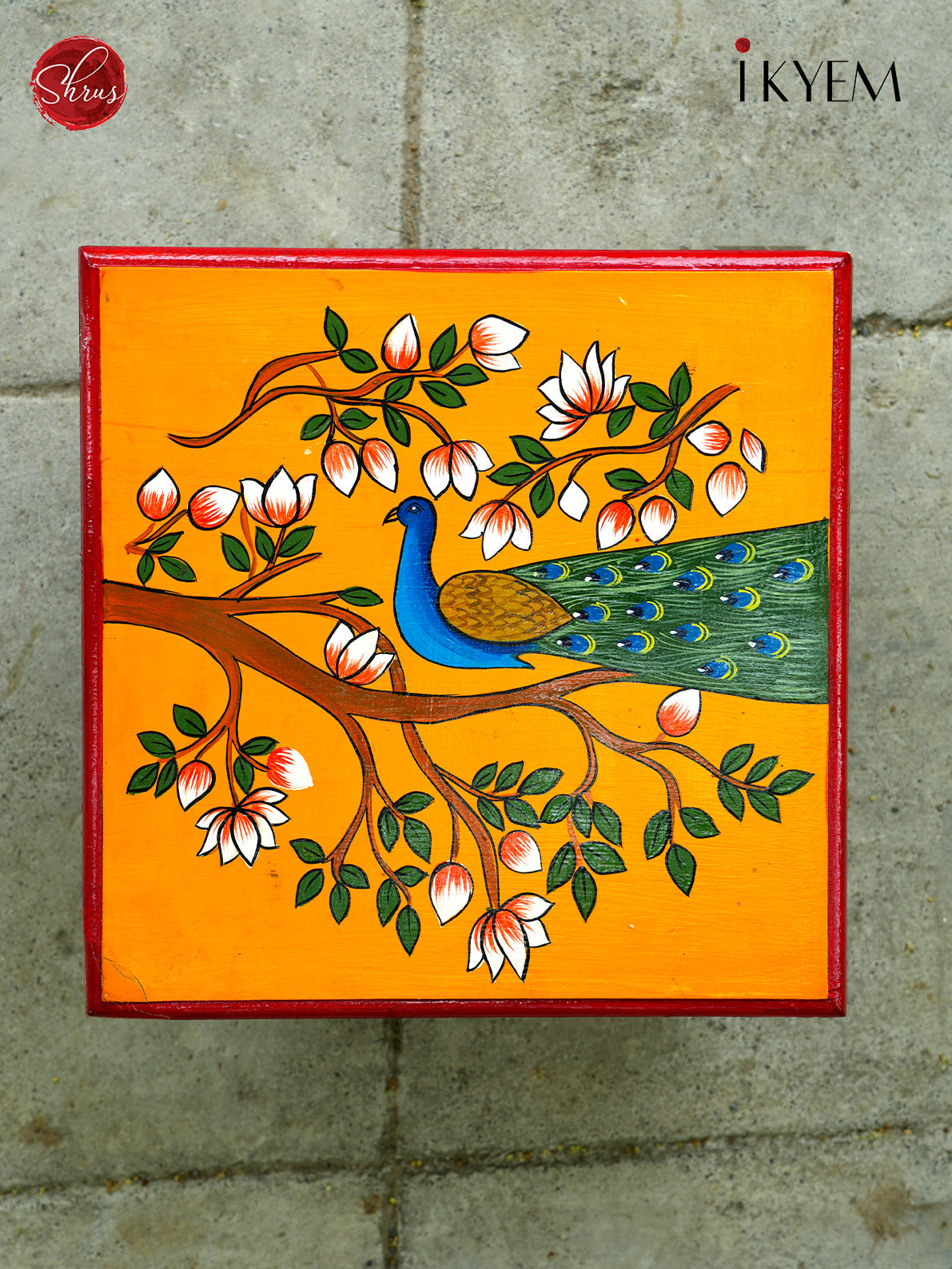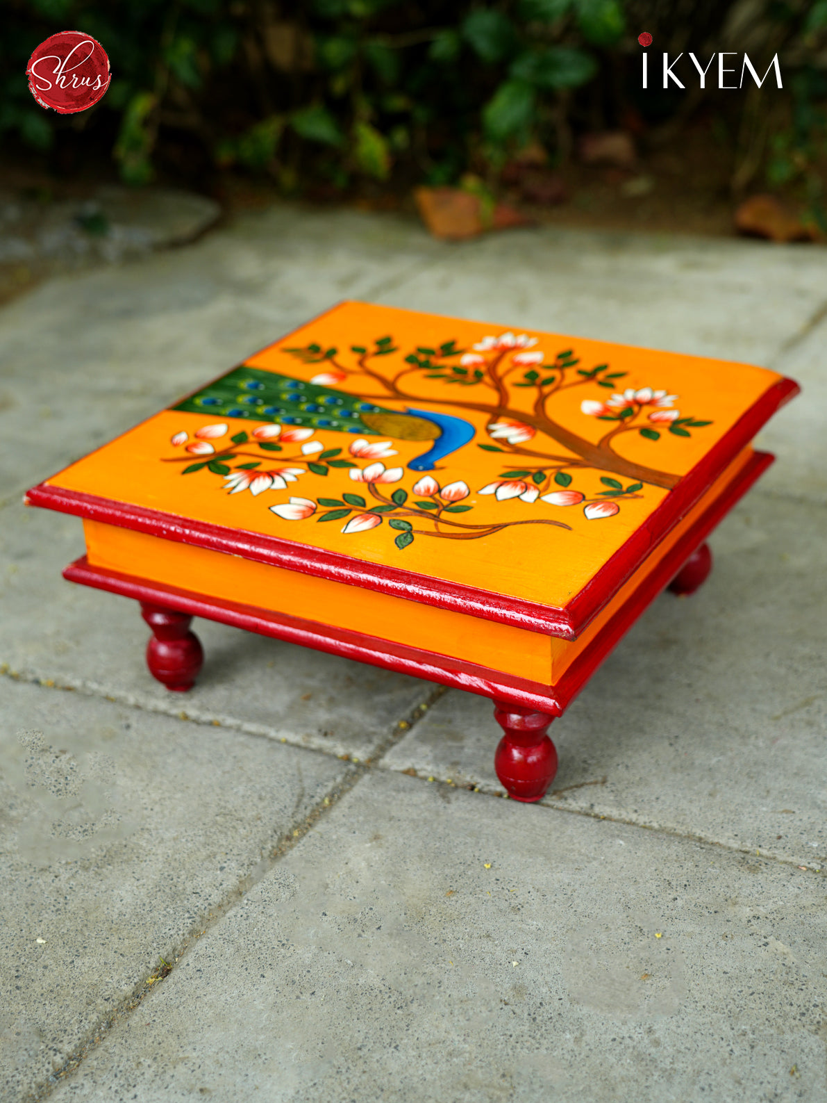 Elevate your home decor with our Hand painted Wooden Square Chowki This piece is a unique blend of artistry and functionality, adding a touch of elegance to any space. Bring charm and style to your home with our exquisite creation
