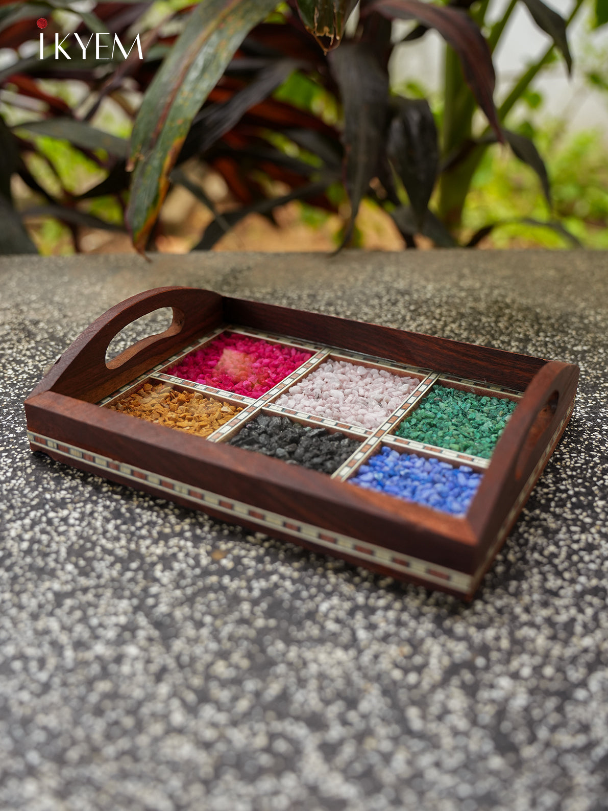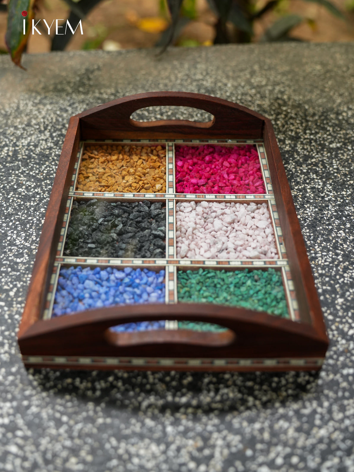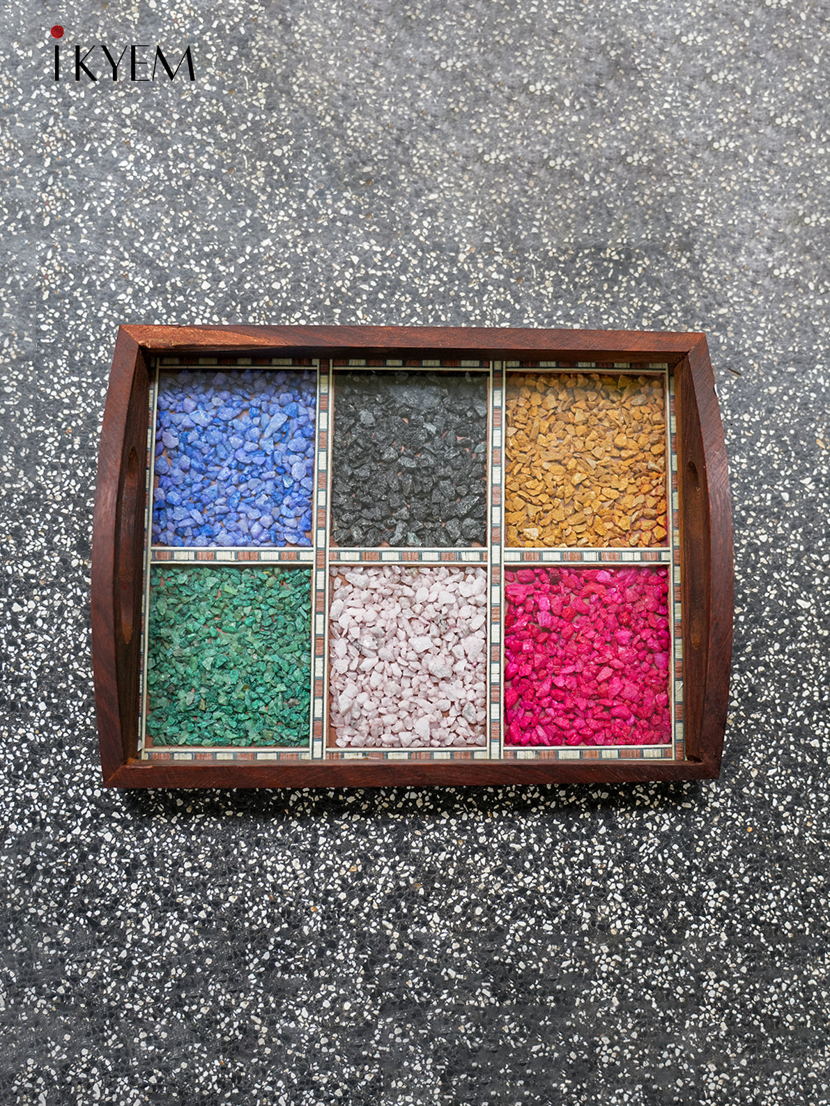 Elegant wooden tray, beautifully adorned with vibrant, colorful pebbles. This stunning piece adds a touch of nature and color to any space, perfect for home or office décor. Crafted with care, it's an exquisite blend of rustic charm and artistic flair