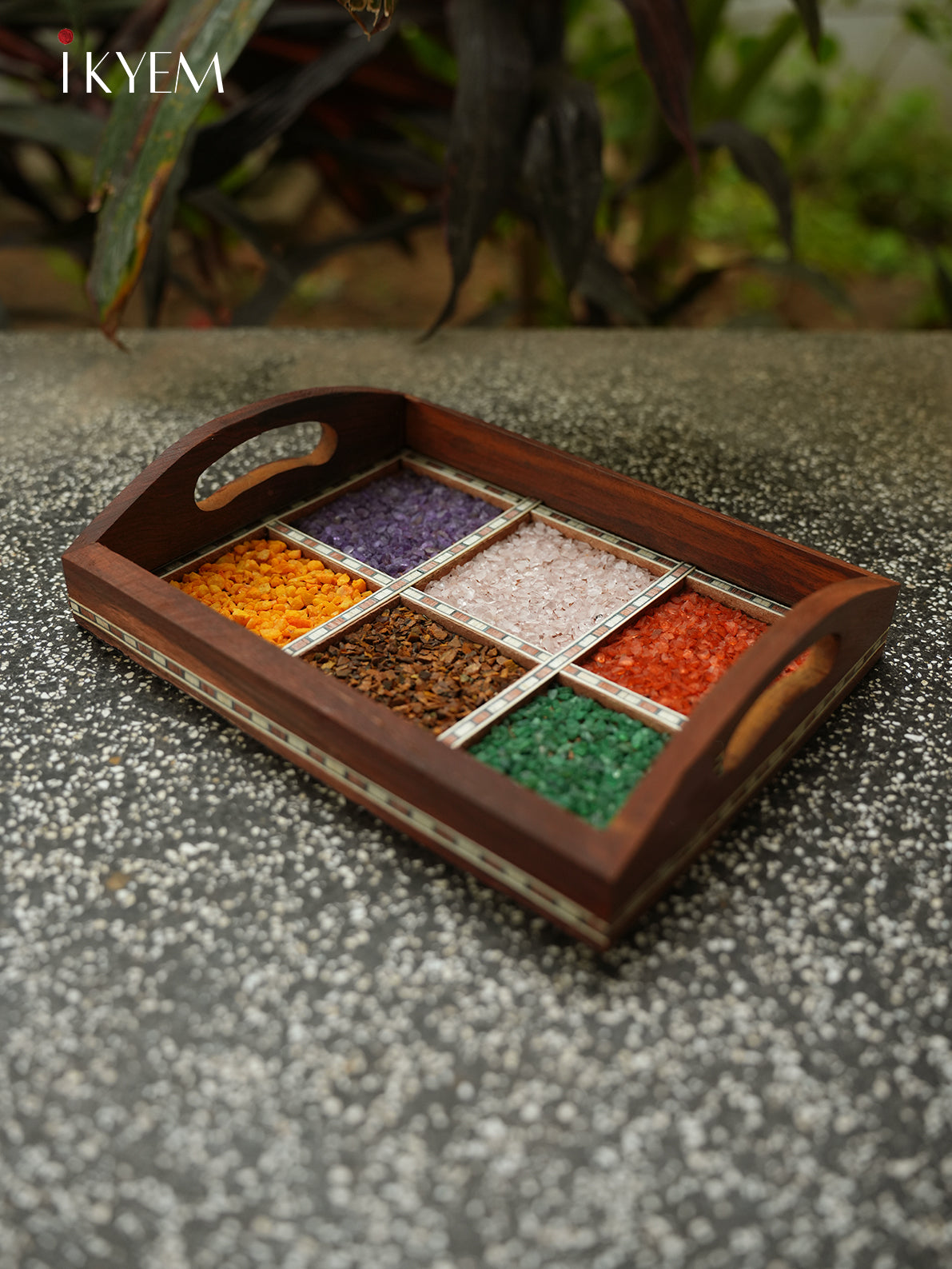 Elegant wooden tray, beautifully adorned with vibrant, colorful pebbles. This stunning piece adds a touch of nature and color to any space, perfect for home or office décor. Crafted with care, it's an exquisite blend of rustic charm and artistic flair