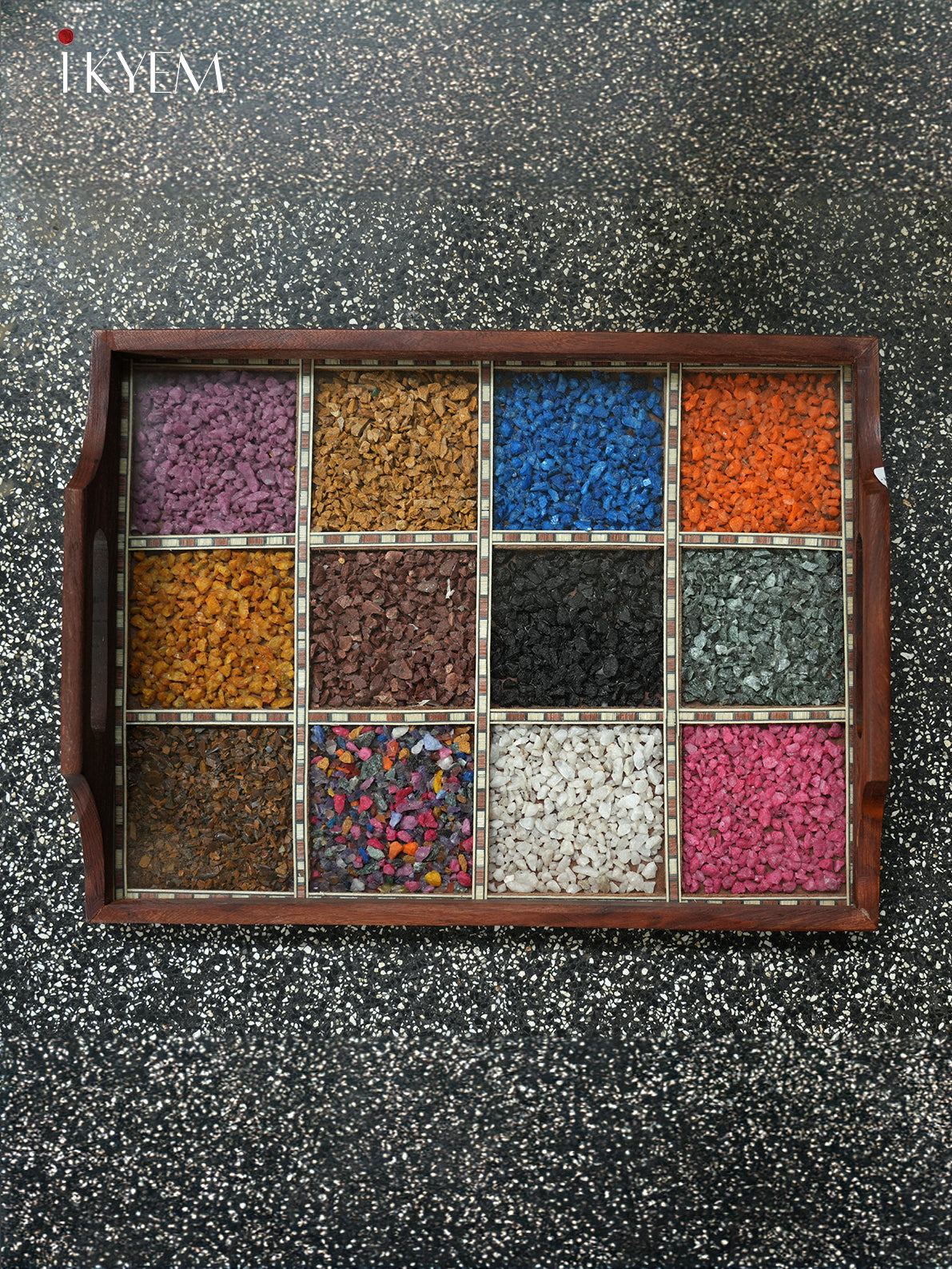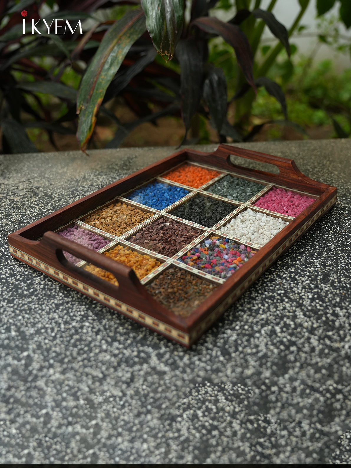 Pretty wooden tray, beautifully adorned with vibrant, hand-selected pebbles. This stunning piece adds a touch of nature and color to any space, perfect for home or office décor. Crafted with care, it's an exquisite blend of rustic charm and artistic flair