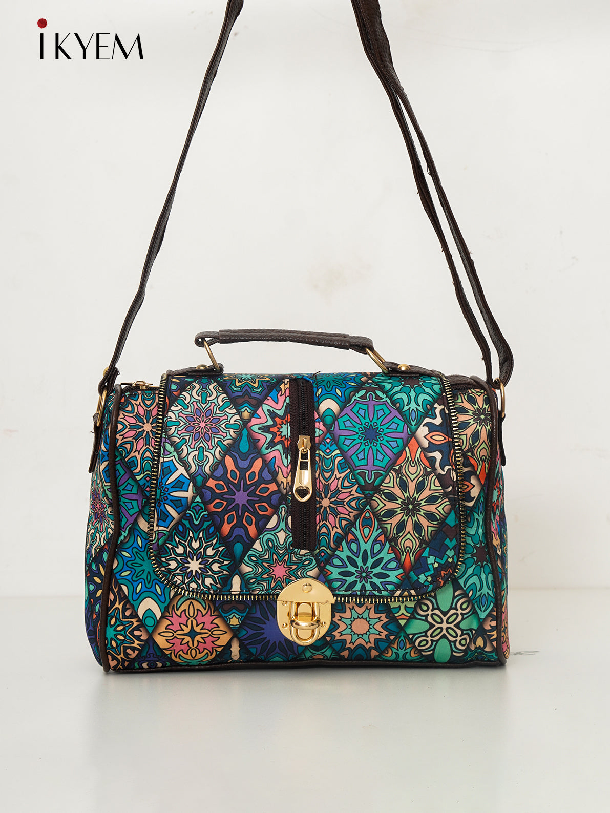 Pretty Blue  Ajrakh Handbags, designed for the modern woman on the go. These vibrant bags, adorned with eye-catching floral patterns, effortlessly transition from a chic handbag to a convenient sling bag, adapting to your needs and occasions.