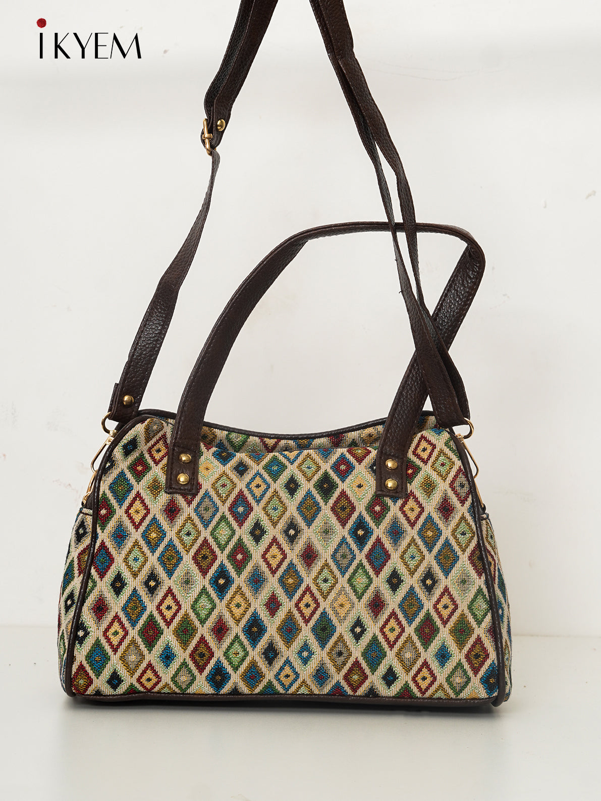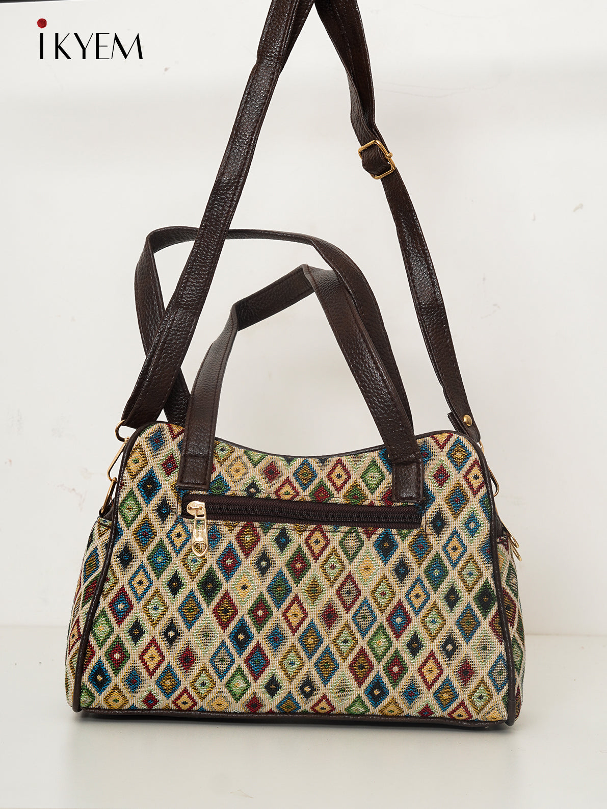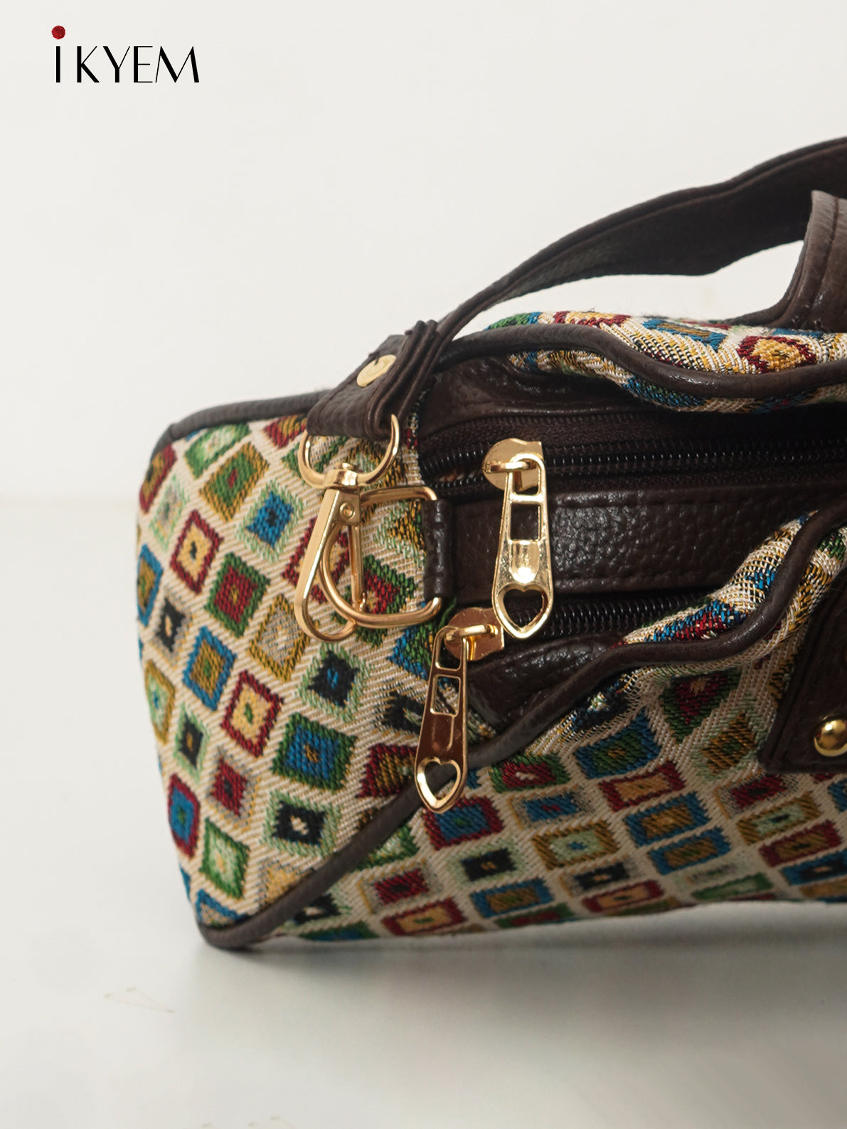 Pretty Cream & Brown Ajrakh Handbags, designed for the modern woman on the go. These vibrant bags, adorned with eye-catching floral patterns, effortlessly transition from a chic handbag to a convenient sling bag, adapting to your needs and occasions. Perfect for adding a pop of color to any outfit