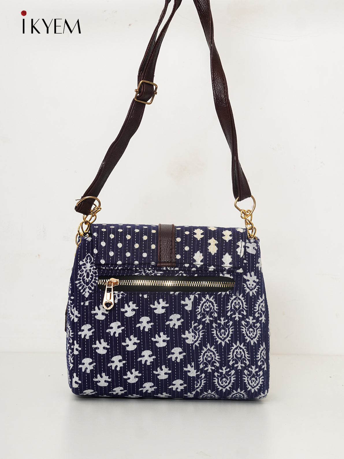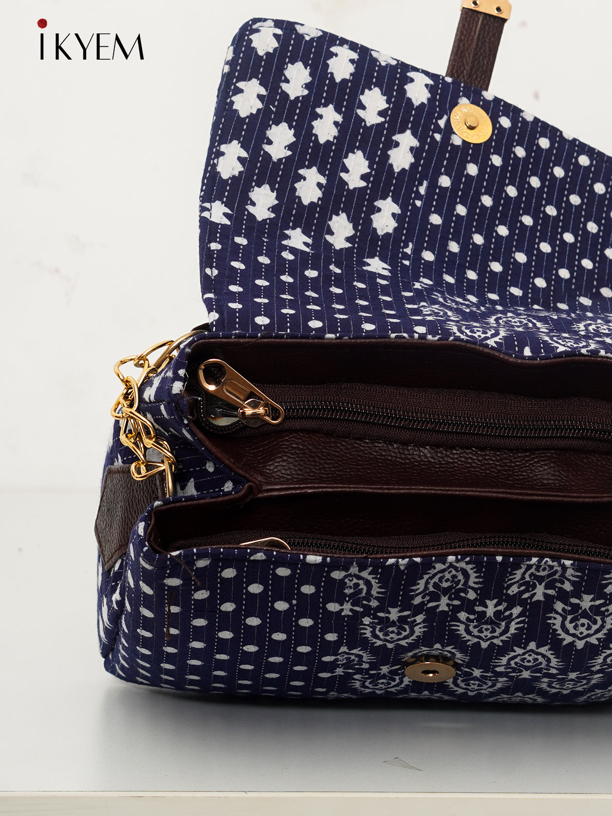 Pretty Blue Ajrakh Handbags, designed for the modern woman on the go. These vibrant bags, adorned with eye-catching floral patterns, effortlessly transition from a chic handbag to a convenient sling bag, adapting to your needs and occasions. Perfect for adding a pop of color to any outfit