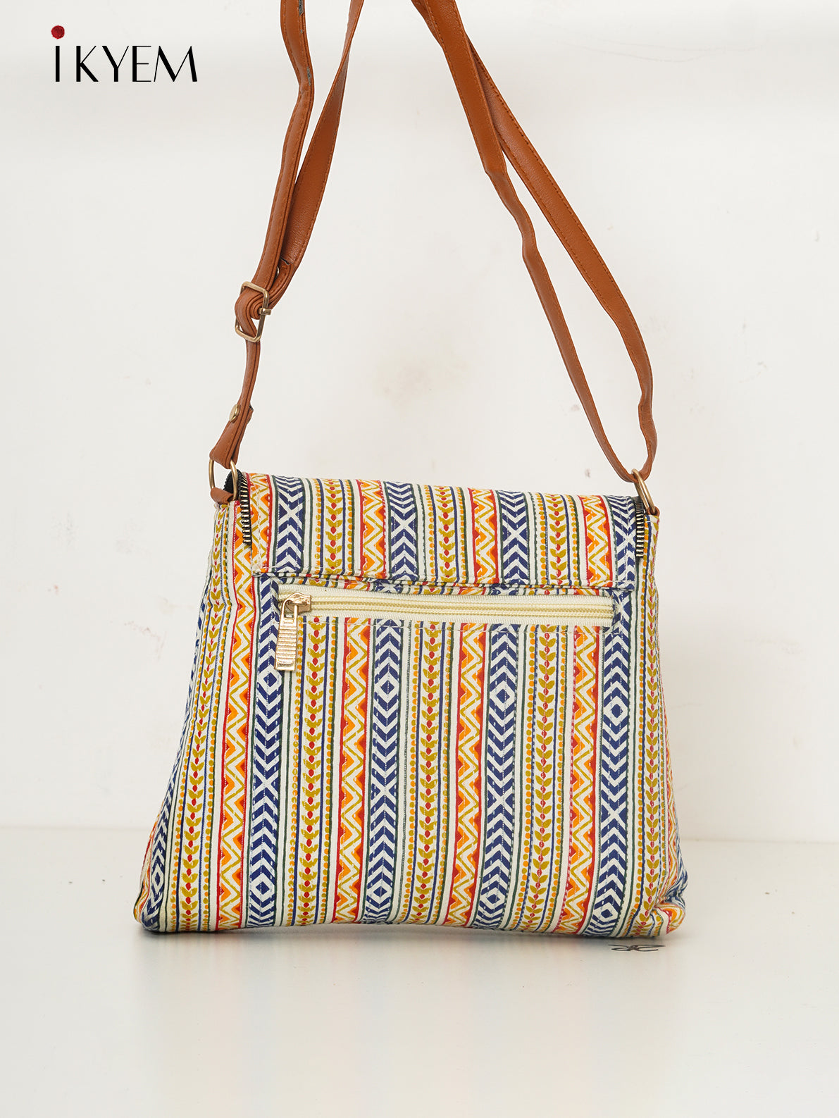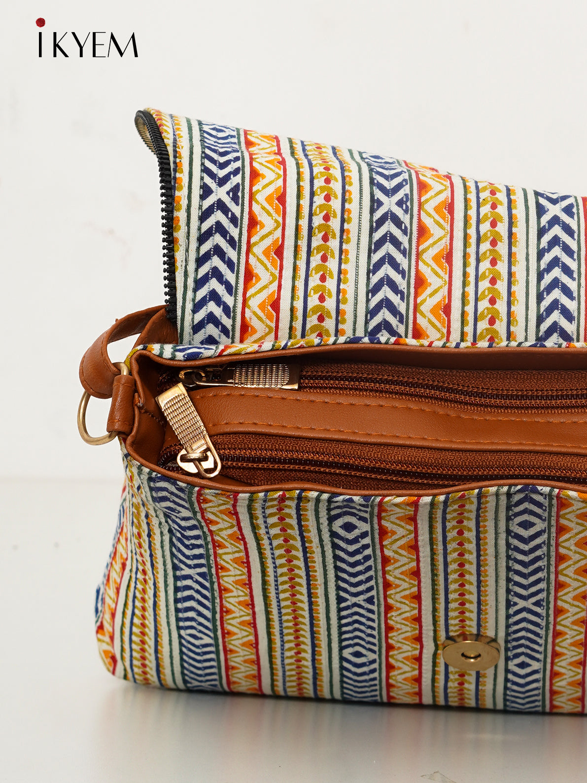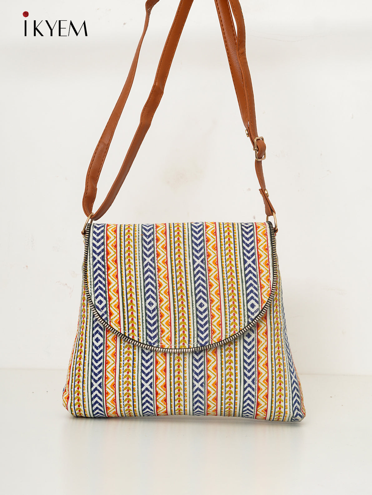 Elegant Cream & Blue Ajrakh Handbags, designed for the modern woman on the go. These vibrant bags, adorned with eye-catching floral patterns, effortlessly transition from a chic handbag to a convenient sling bag, adapting to your needs and occasions. Perfect for adding a pop of color to any outfit
