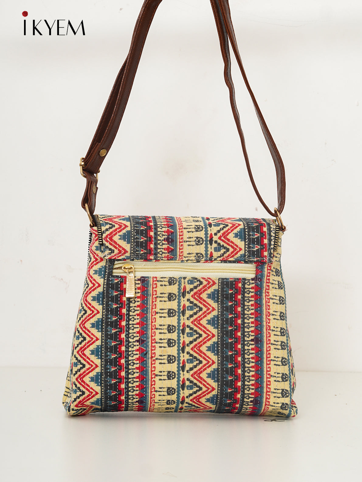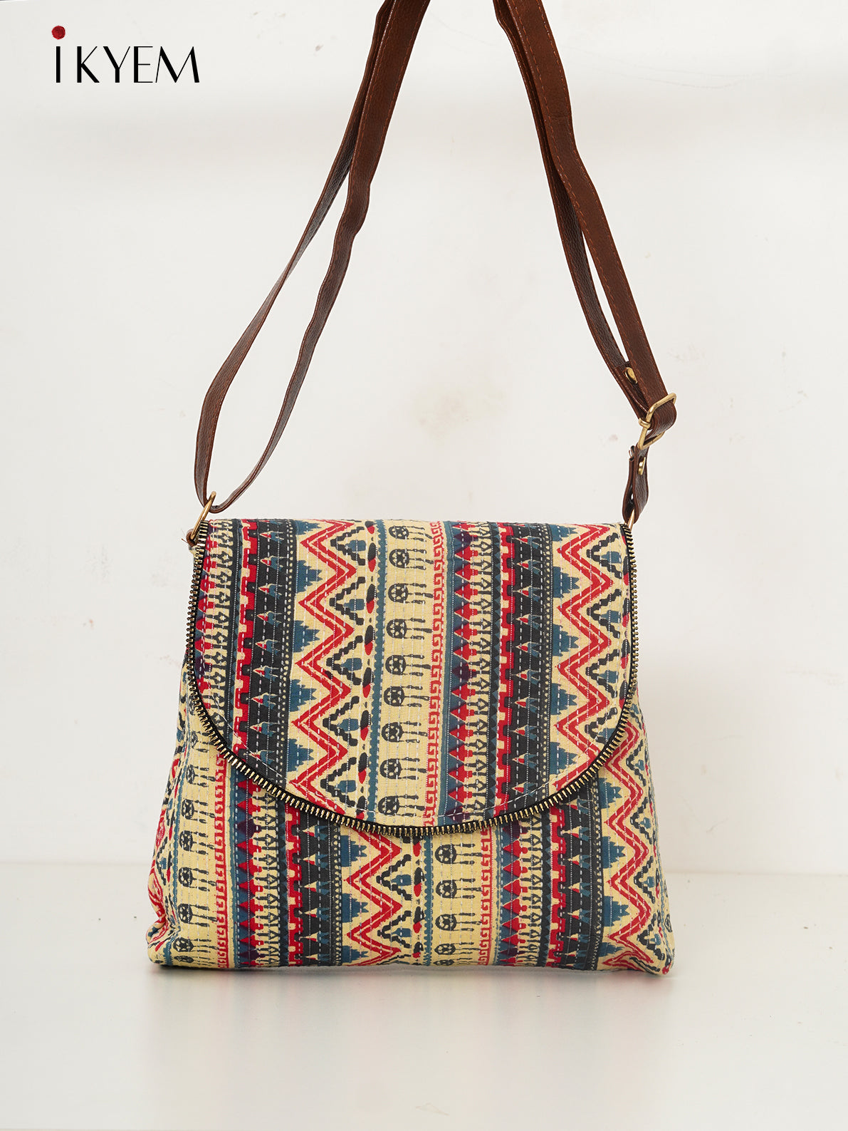 Pretty Cream & Brown Ajrakh Handbags, designed for the modern woman on the go. These vibrant bags, adorned with eye-catching floral patterns, effortlessly transition from a chic handbag to a convenient sling bag, adapting to your needs and occasions. Perfect for adding a pop of color to any outfit