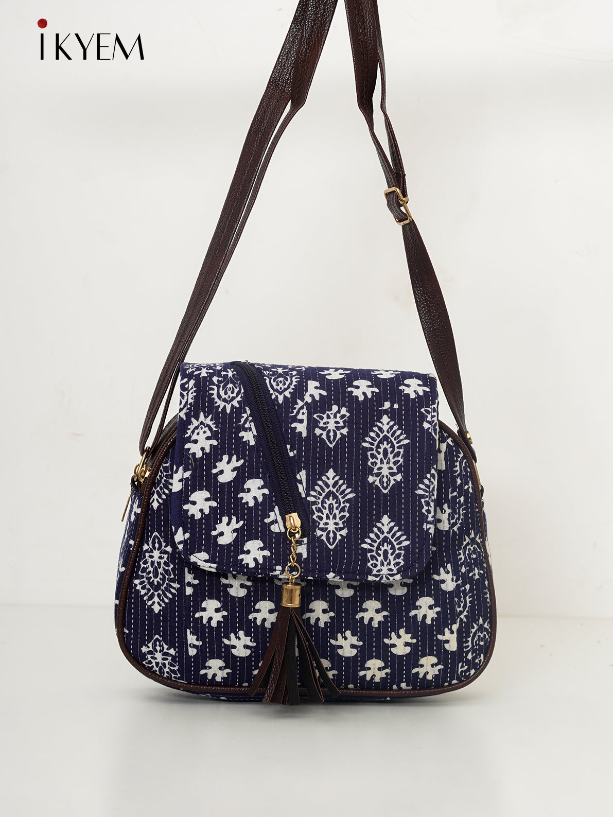 Beautiful Blue Ajrakh Handbags, designed for the modern woman on the go. These vibrant bags, adorned with eye-catching floral patterns, effortlessly transition from a chic handbag to a convenient sling bag, adapting to your needs and occasions. Perfect for adding a pop of color to any outfit