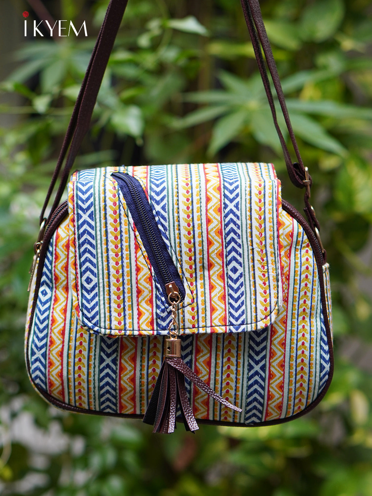 Very Pretty Cream & Brown Ajrakh Handbags, designed for the modern woman on the go. These vibrant bags, adorned with eye-catching floral patterns, effortlessly transition from a chic handbag to a convenient sling bag, adapting to your needs and occasions.