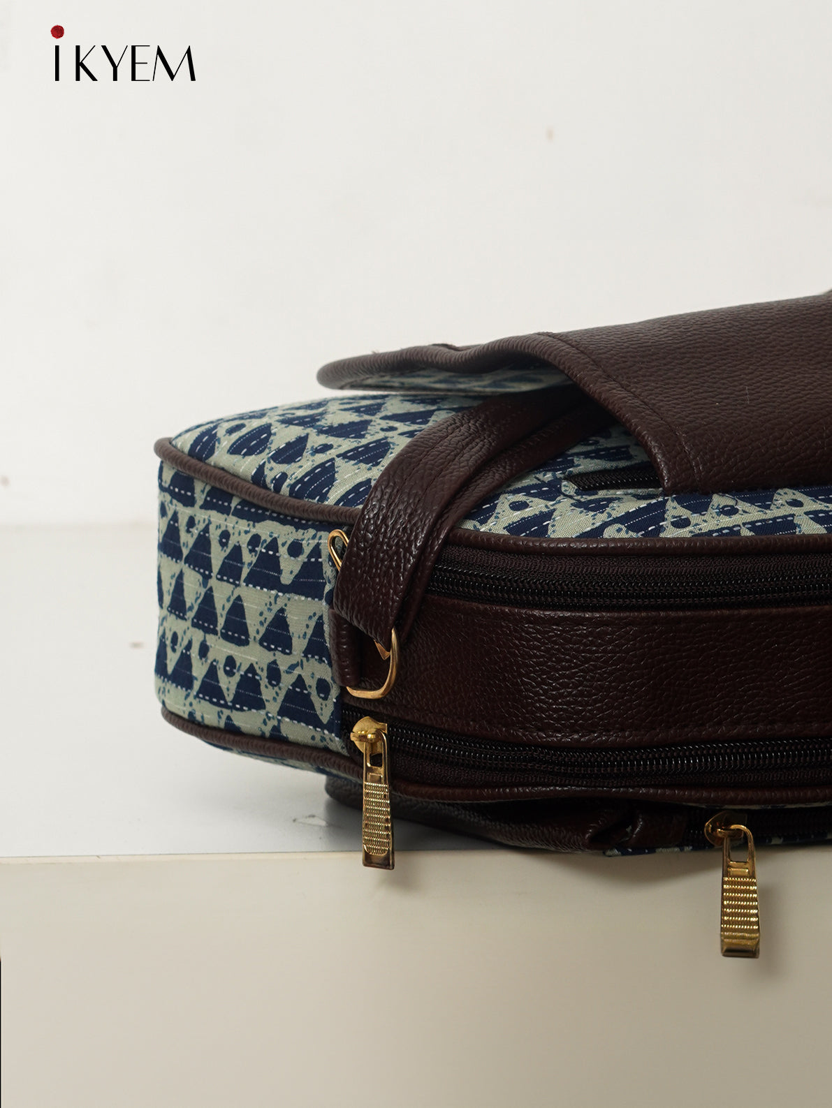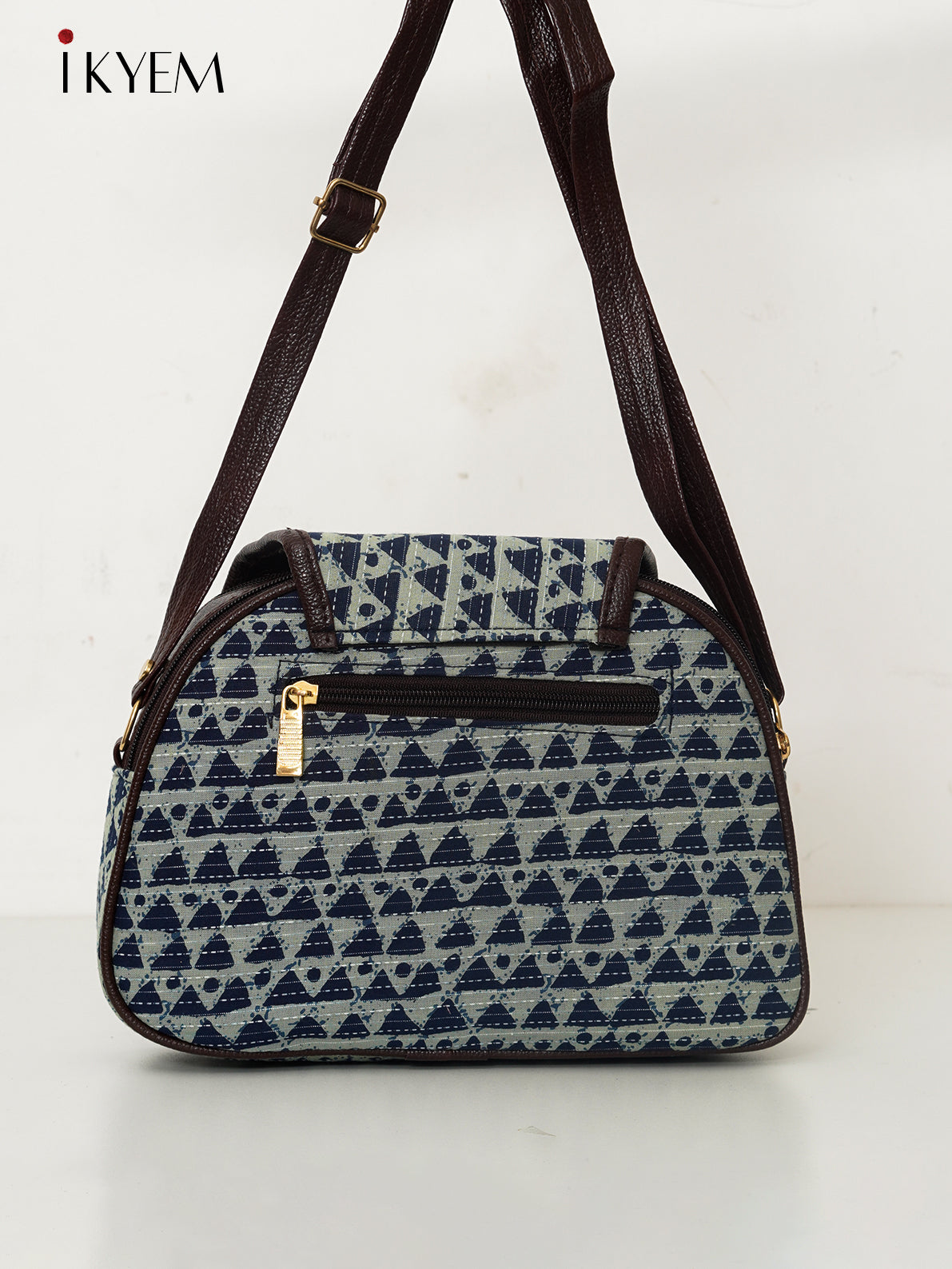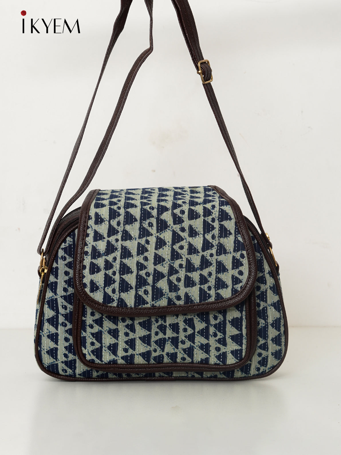 Elegant Blue  Ajrakh Handbags, designed for the modern woman on the go. These vibrant bags, adorned with eye-catching floral patterns, effortlessly transition from a chic handbag to a convenient sling bag, adapting to your needs and occasions.