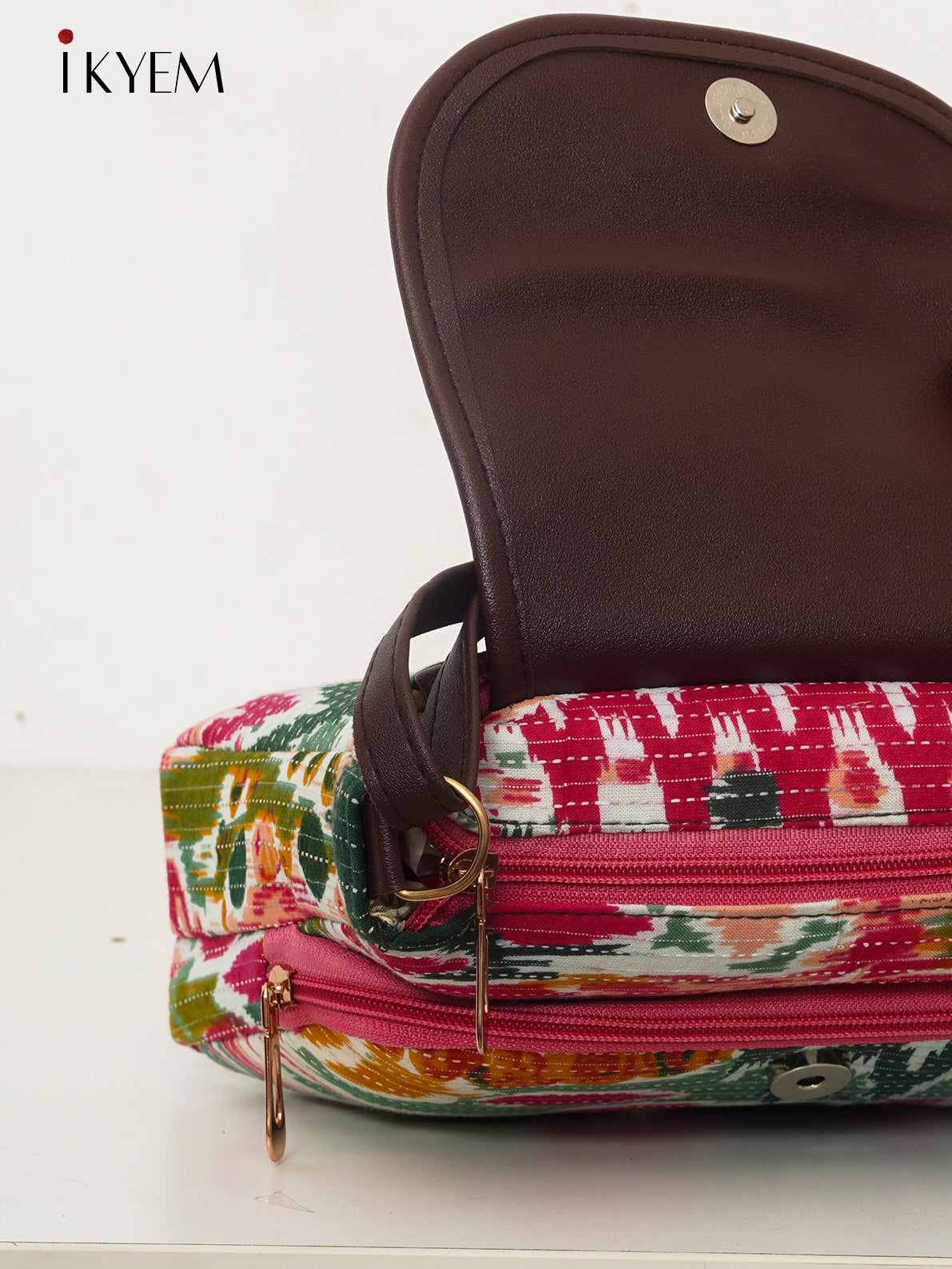 Pretty Pink & Brown Ajrakh Handbags, designed for the modern woman on the go. These vibrant bags, adorned with eye-catching floral patterns, effortlessly transition from a chic handbag to a convenient sling bag, adapting to your needs and occasions. Perfect for adding a pop of color to any outfit, these versatile accessories are your ideal companion for daily errands, evening outings, or weekend adventures, ensuring you stay fashionable and organized wherever life takes you.
