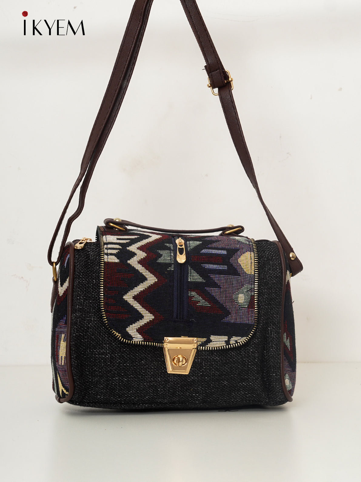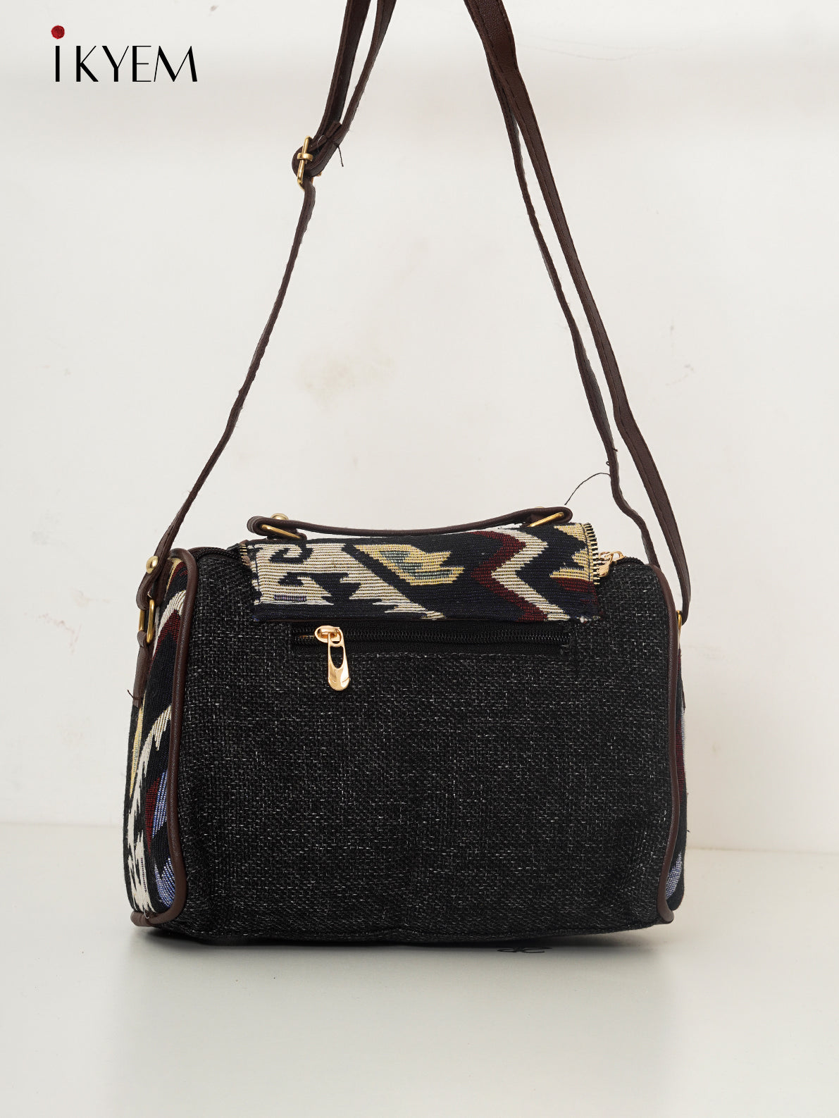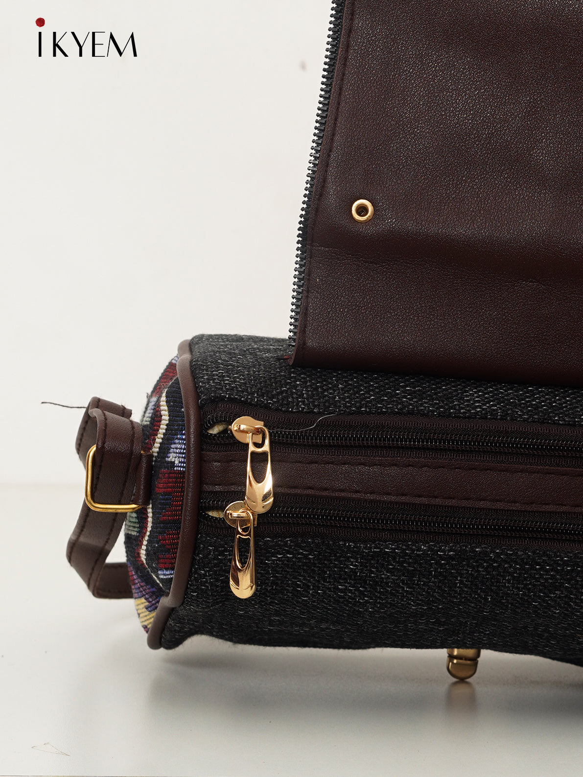 Elegant Brown & Black Ajrakh Handbags, designed for the modern woman on the go. These vibrant bags, adorned with eye-catching floral patterns, effortlessly transition from a chic handbag to a convenient sling bag, adapting to your needs and occasions.