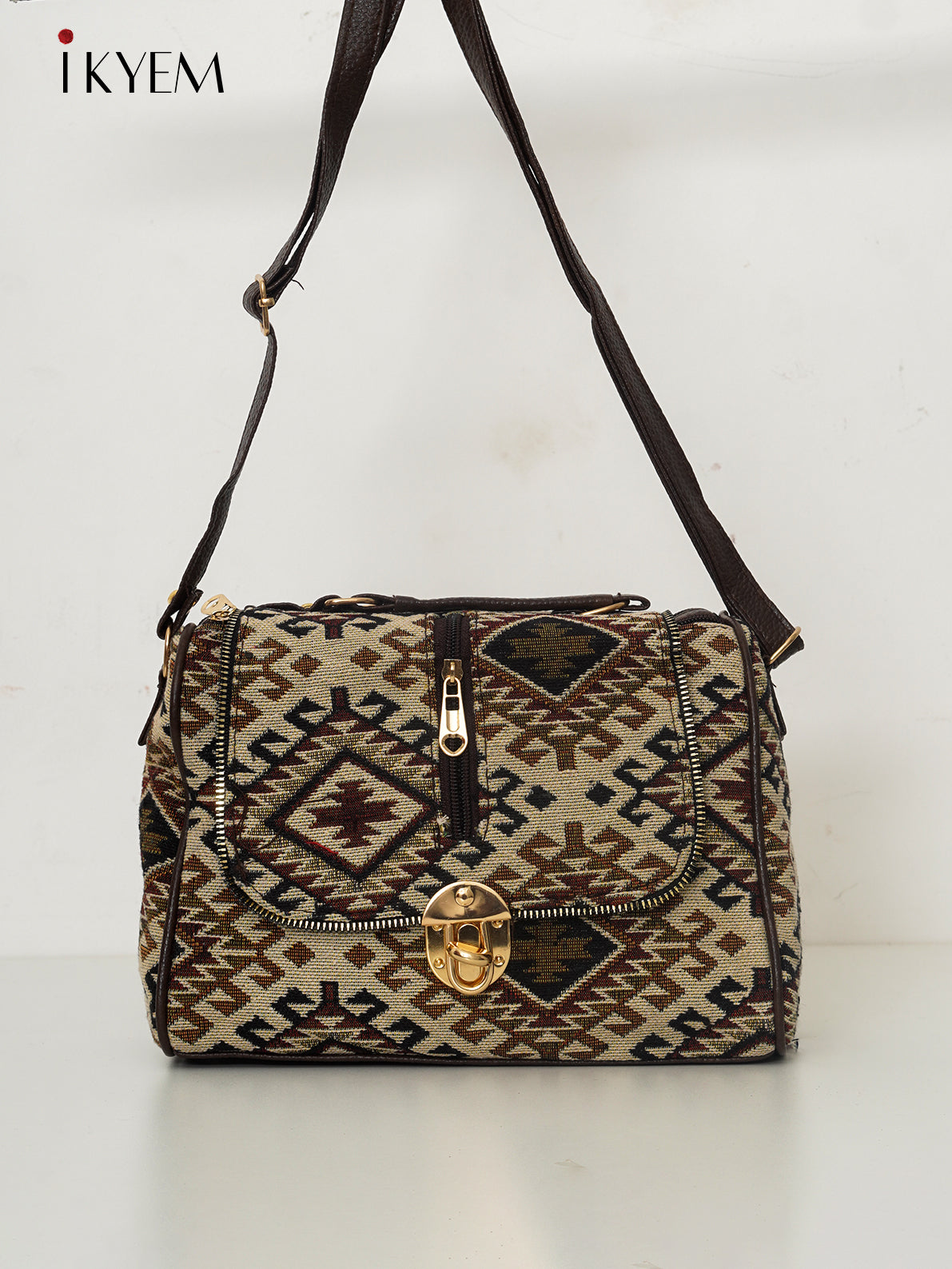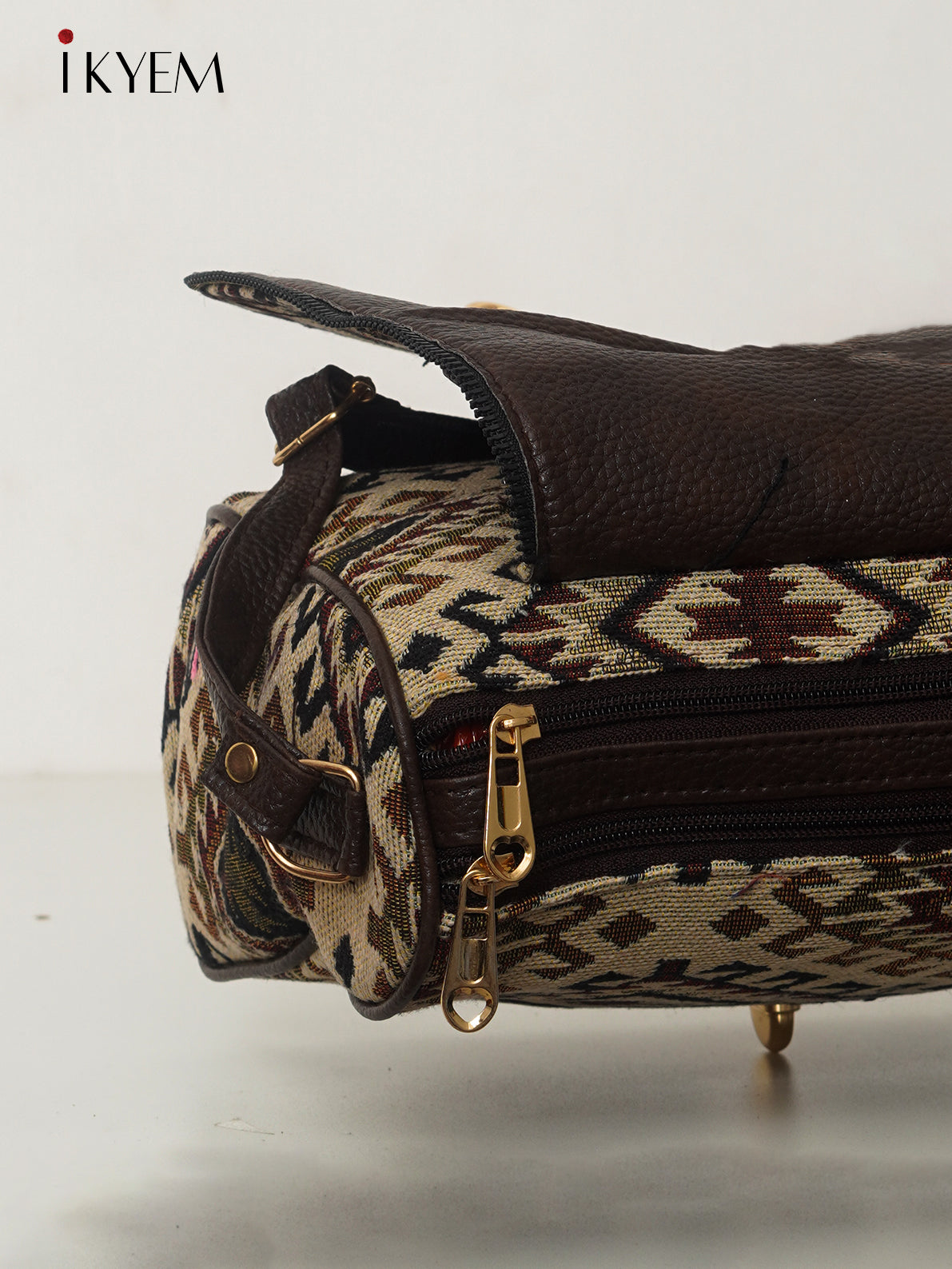 Pretty Beige & Brown Ajrakh Handbags, designed for the modern woman on the go. These vibrant bags, adorned with eye-catching floral patterns, effortlessly transition from a chic handbag to a convenient sling bag, adapting to your needs and occasions.