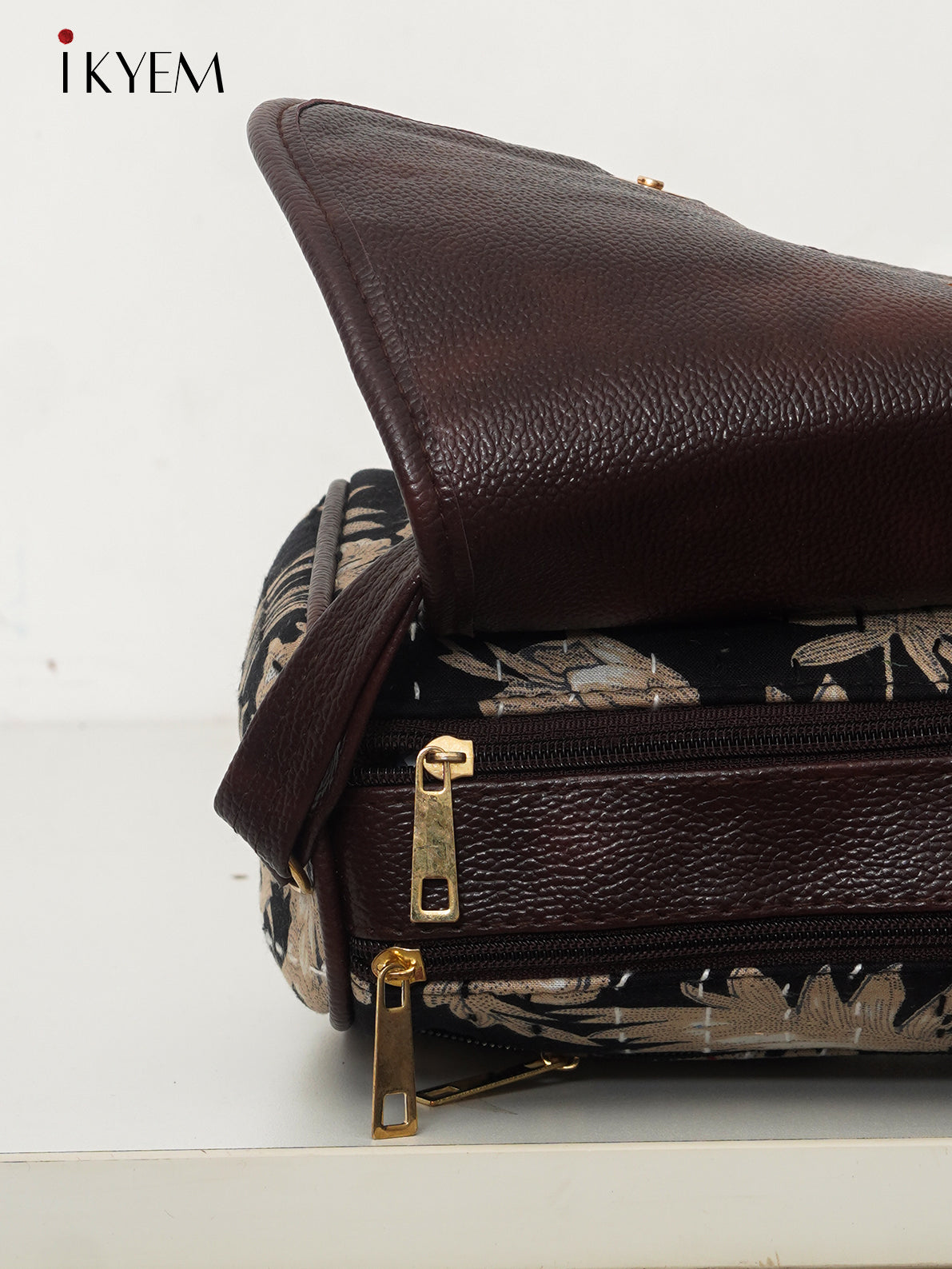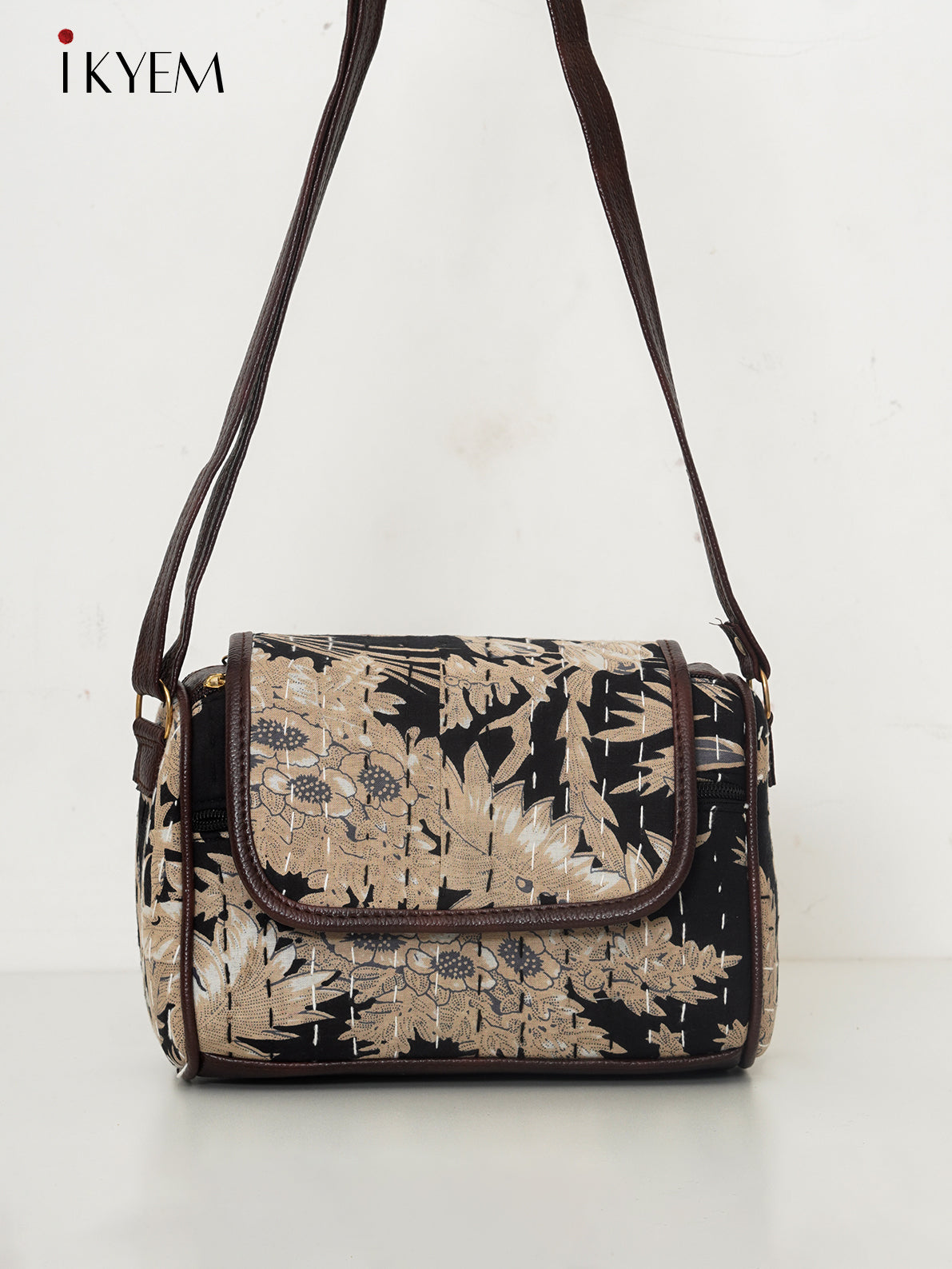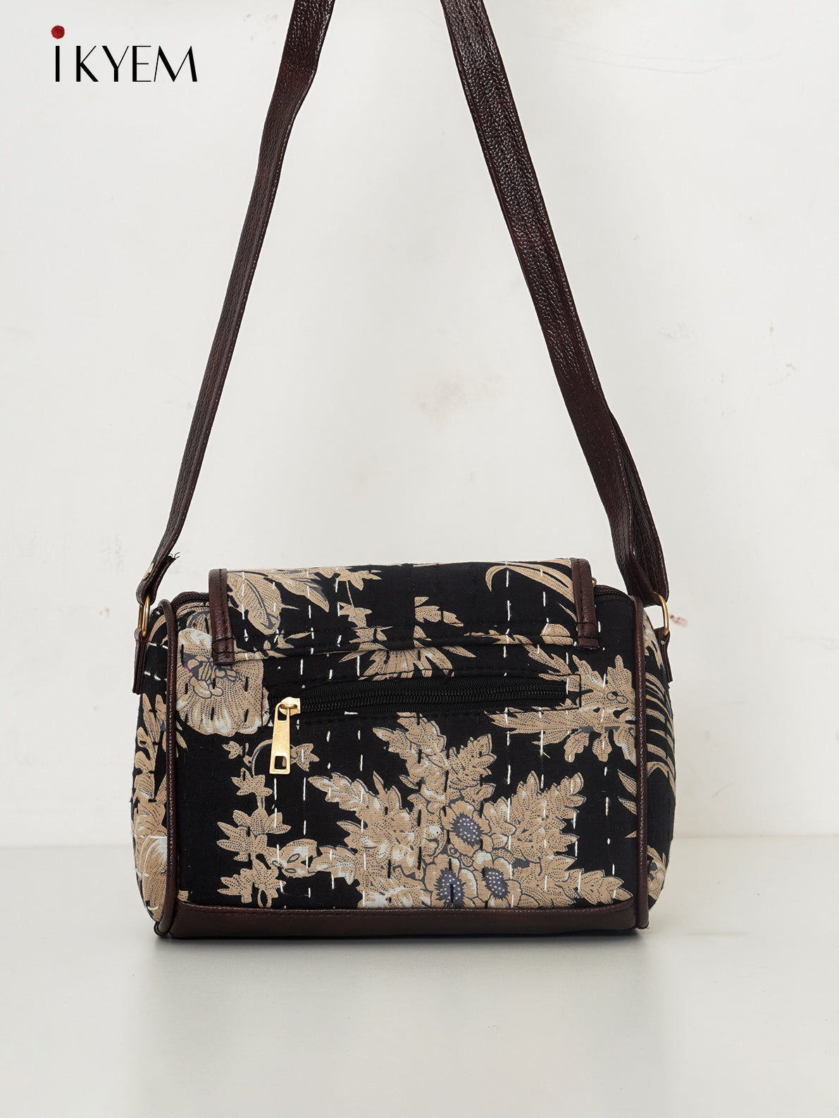 Elegant Black  Ajrakh Handbags, designed for the modern woman on the go. These vibrant bags, adorned with eye-catching floral patterns, effortlessly transition from a chic handbag to a convenient sling bag, adapting to your needs and occasions.