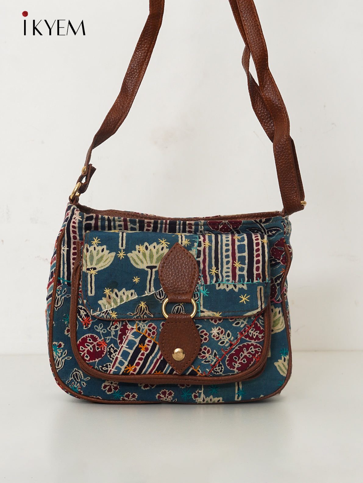 Pretty Blue & Brown Ajrakh Handbags, designed for the modern woman on the go. These vibrant bags, adorned with eye-catching floral patterns, effortlessly transition from a chic handbag to a convenient sling bag, adapting to your needs and occasions.