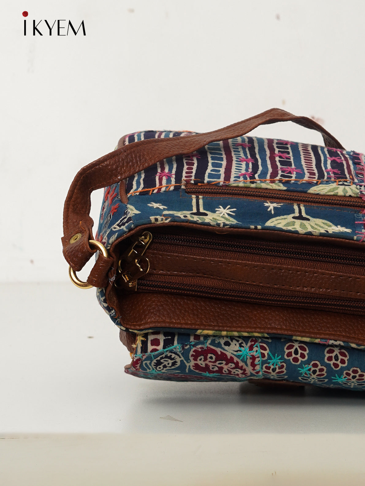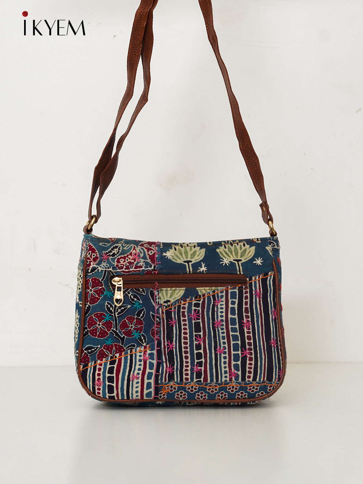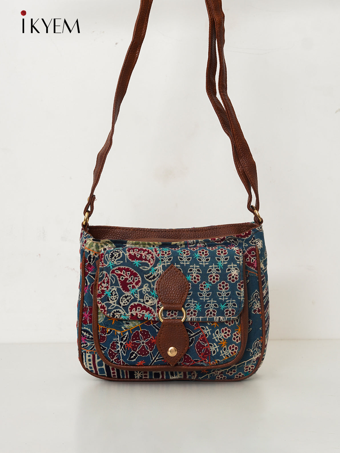 Elegant Blue & Brown  Ajrakh Handbags, designed for the modern woman on the go. These vibrant bags, adorned with eye-catching floral patterns, effortlessly transition from a chic handbag to a convenient sling bag, adapting to your needs and occasions.