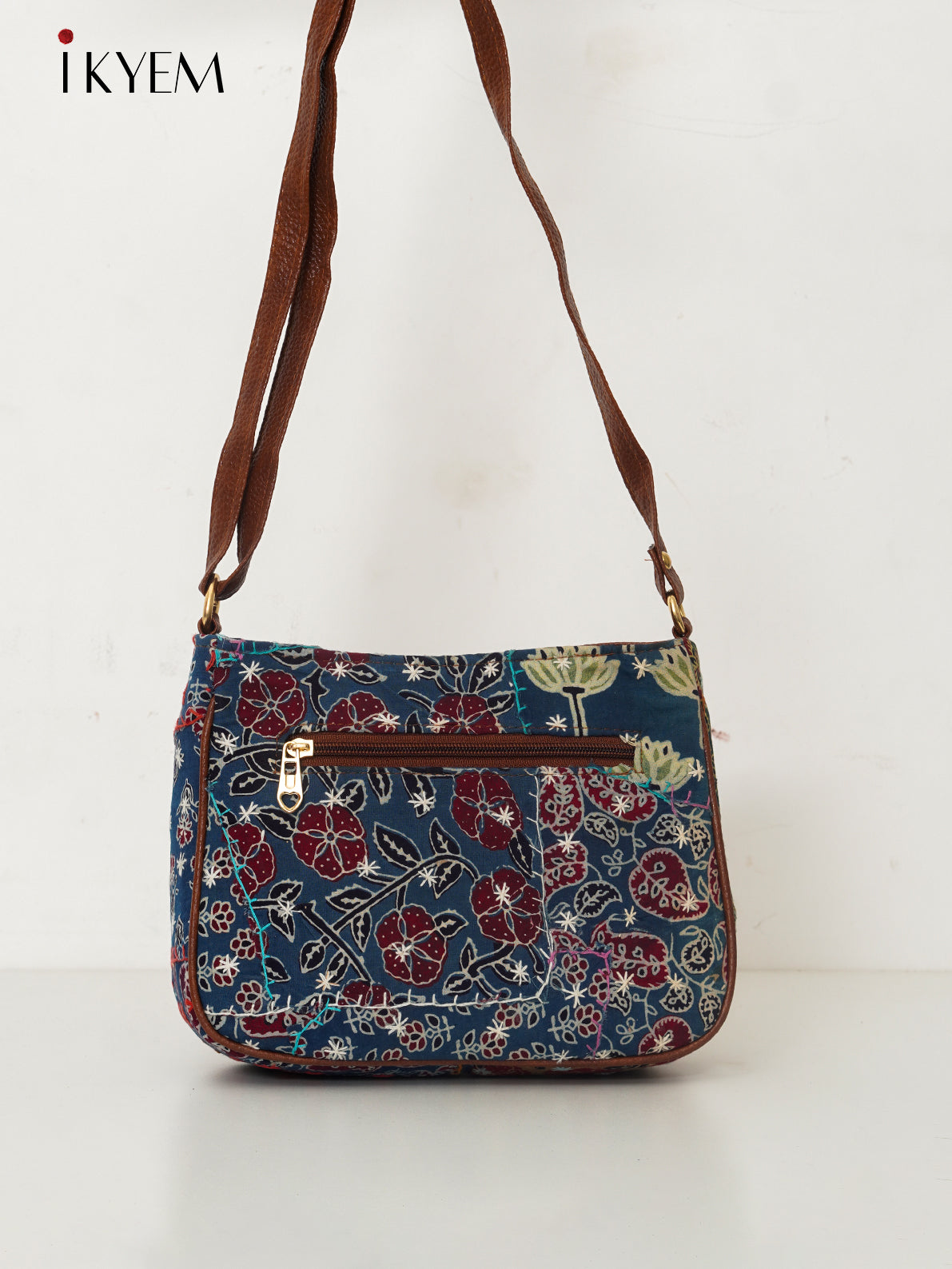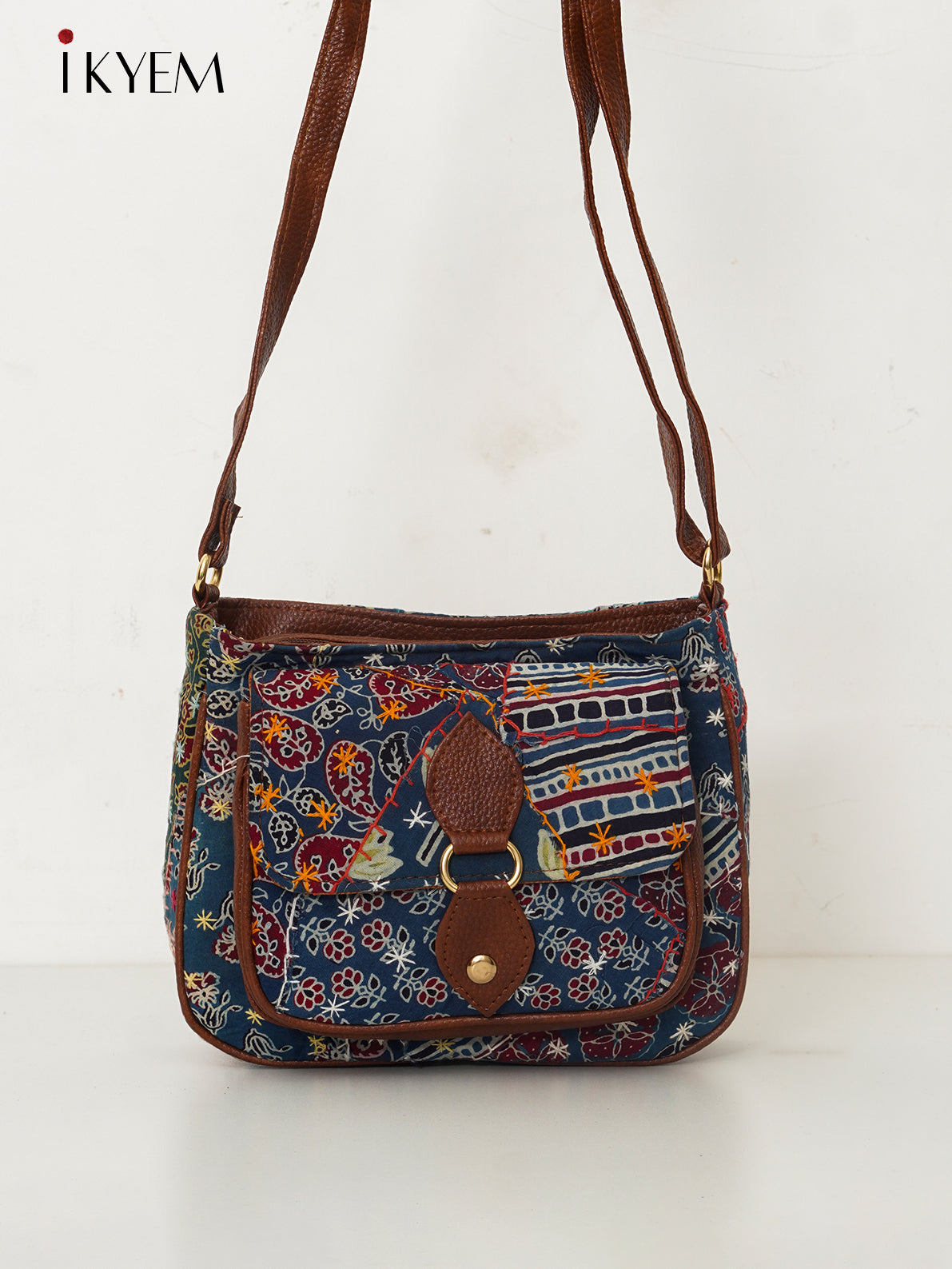 Pretty Blue Ajrakh Handbags, designed for the modern woman on the go. These vibrant bags, adorned with eye-catching floral patterns, effortlessly transition from a chic handbag to a convenient sling bag, adapting to your needs and occasions.