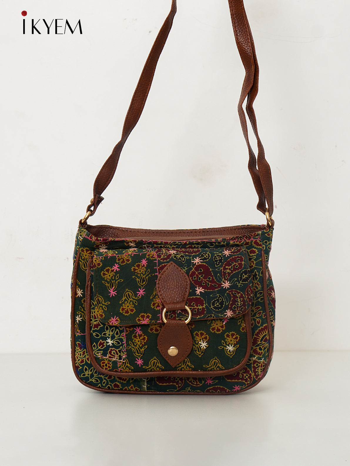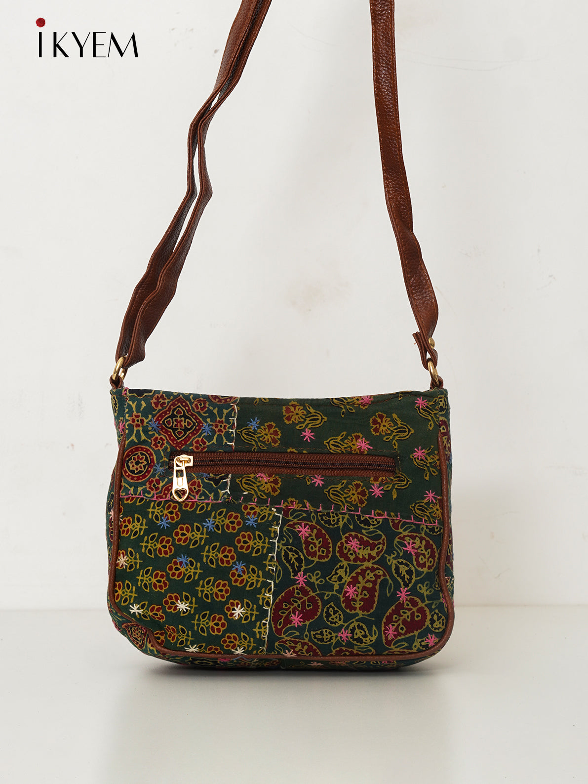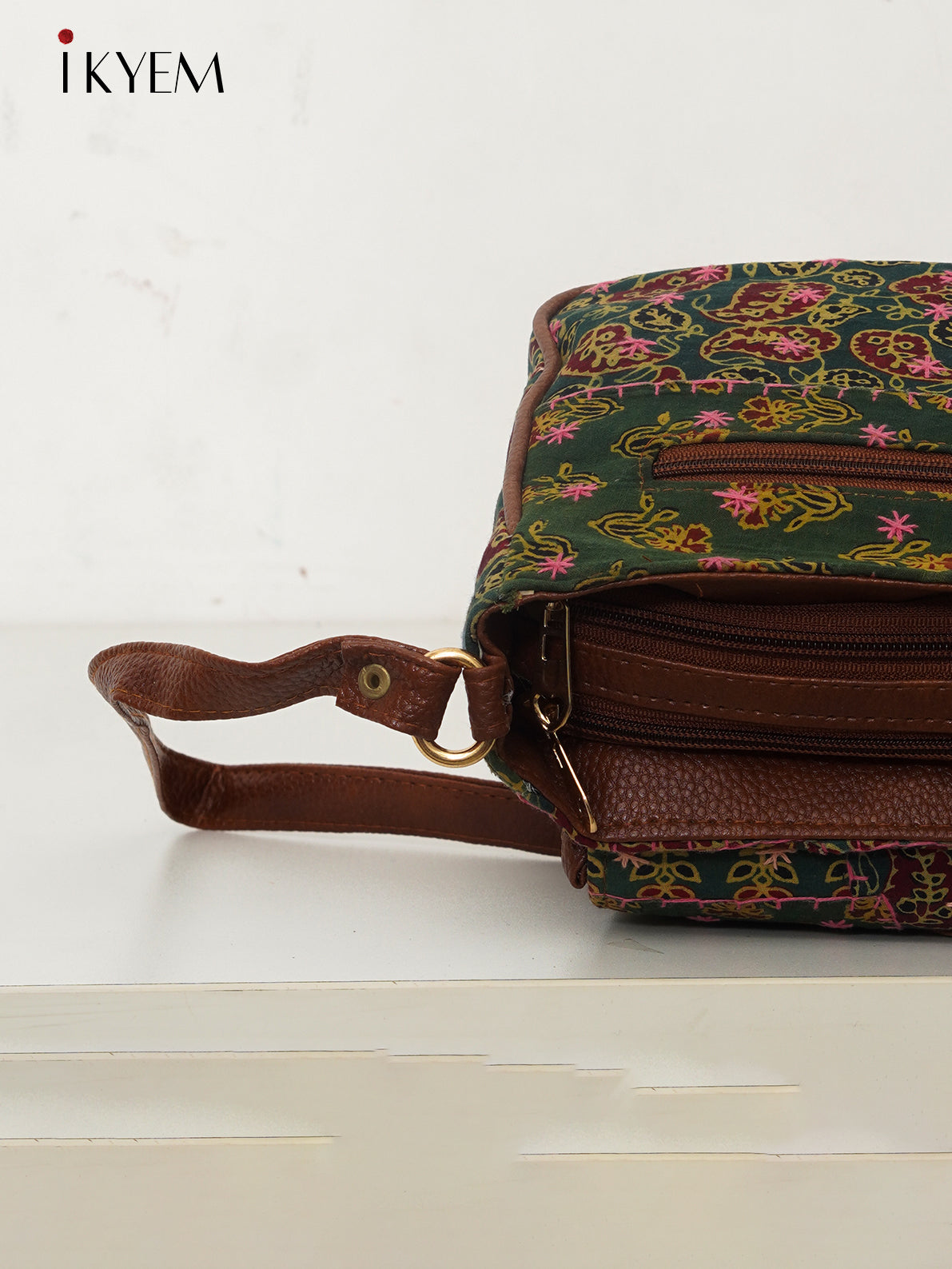 Elegant Green & Brown Ajrakh Handbags, designed for the modern woman on the go. These vibrant bags, adorned with eye-catching floral patterns, effortlessly transition from a chic handbag to a convenient sling bag, adapting to your needs and occasions.